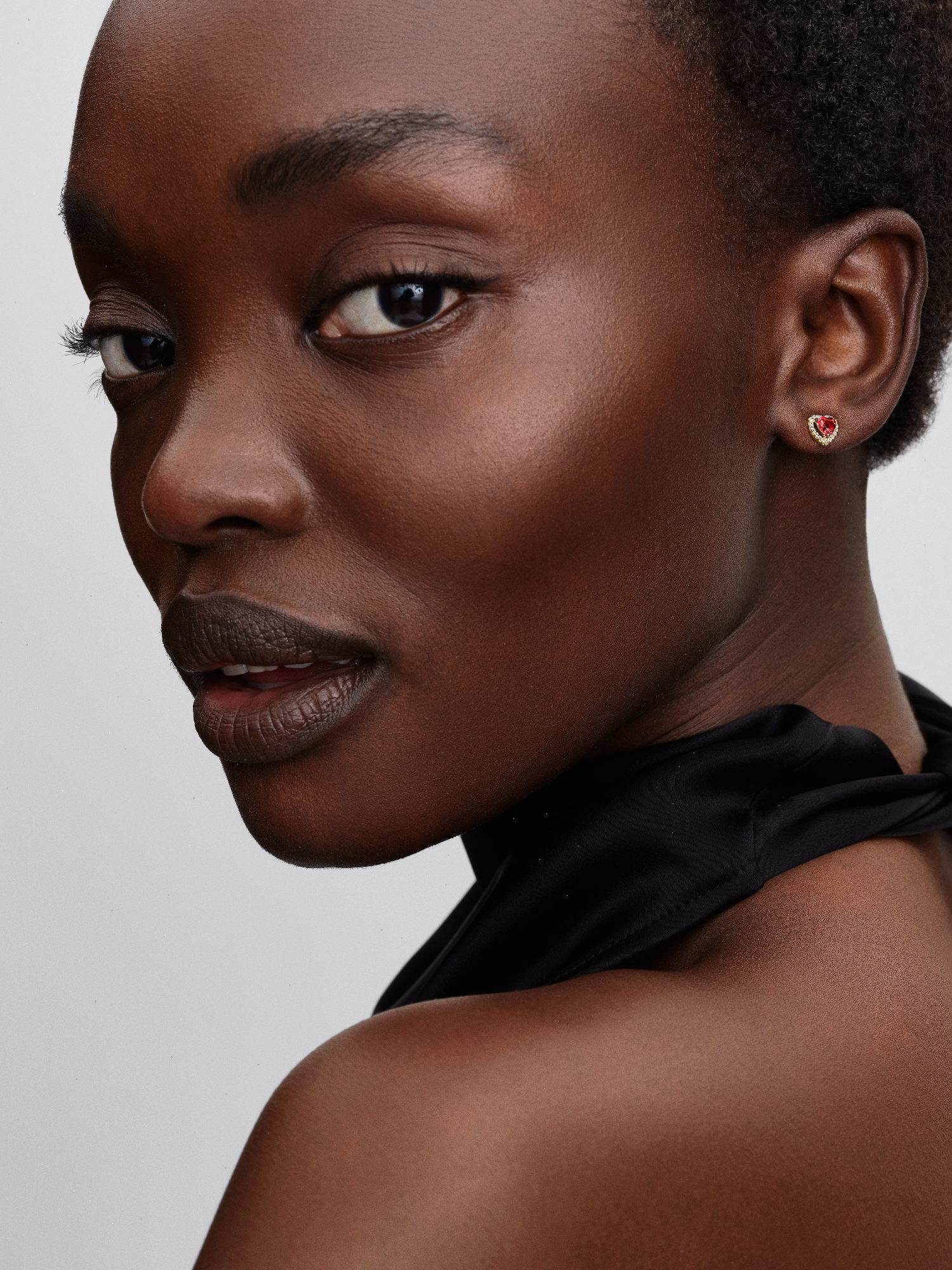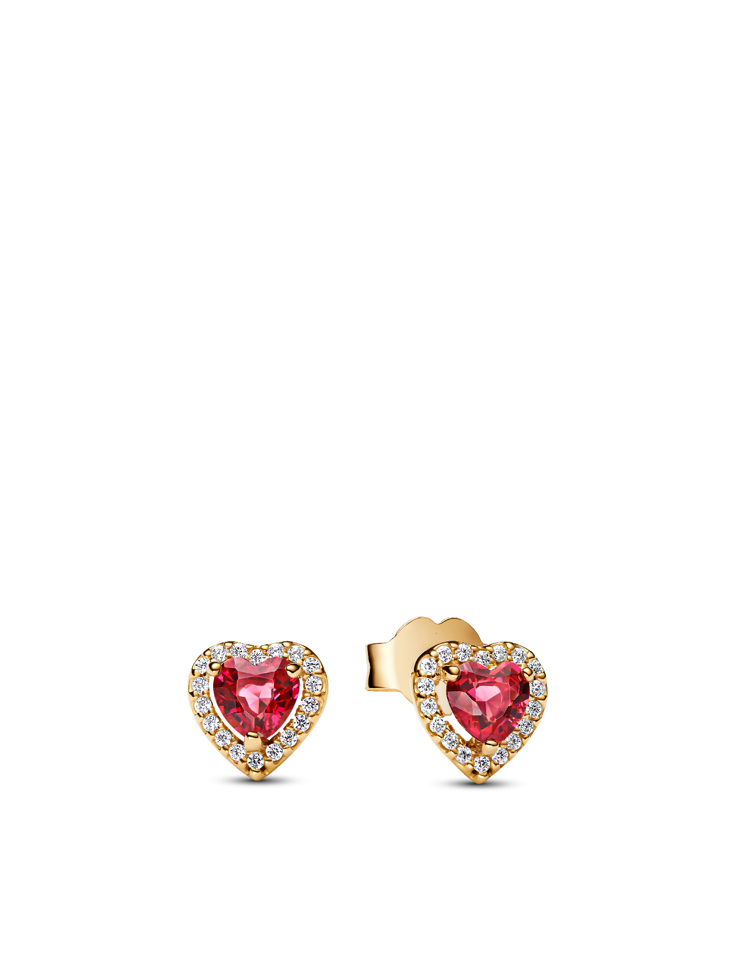 Make a statement with these 14k gold-plated studs from the Pandora Timeless collection. Featuring elevated red heart-shaped crystals and pavé frames, they’re a bold yet elegant twist on timeless sparkle.
