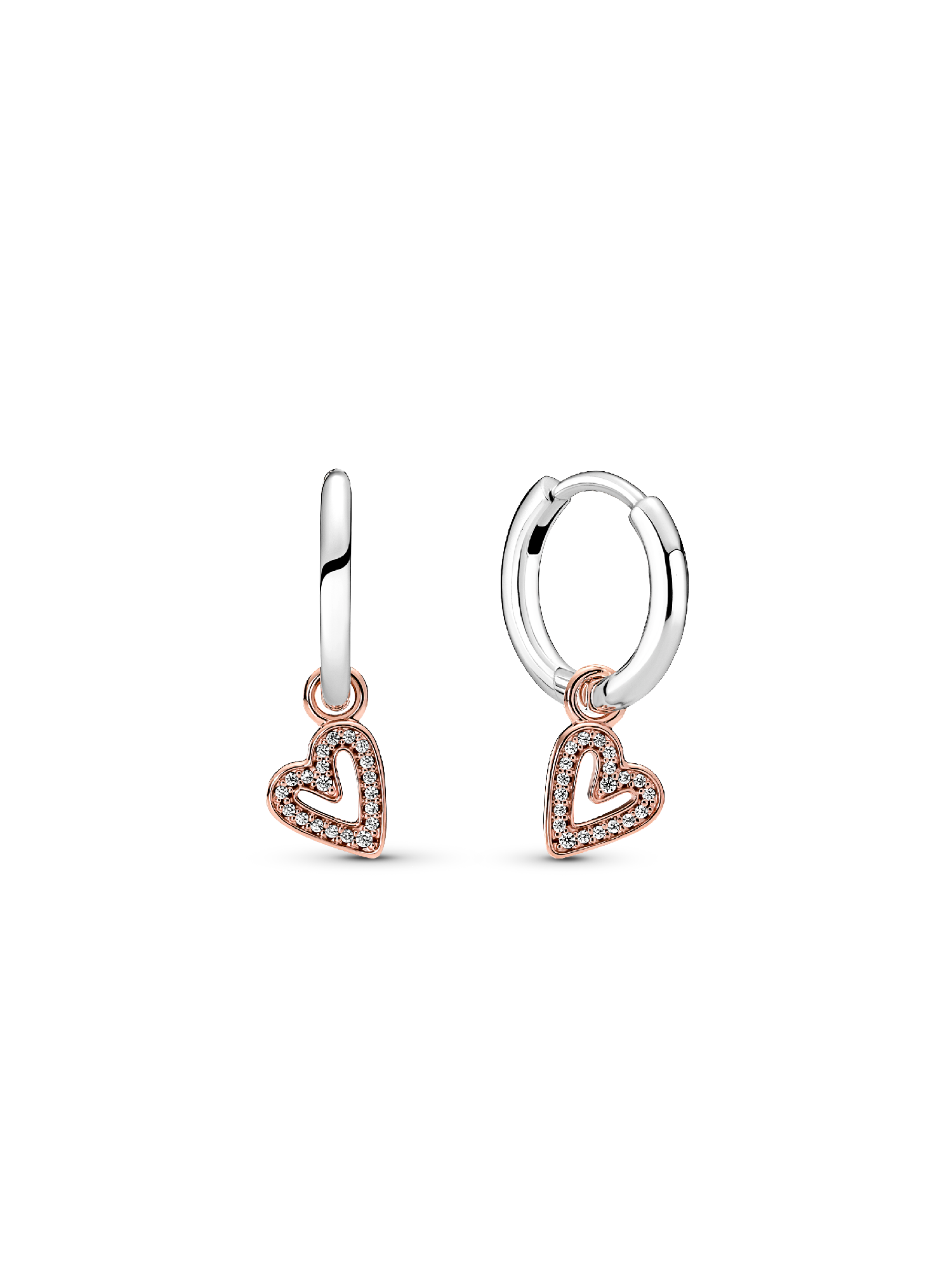 Add a little love to your earring styling with our Sparkling Freehand Heart Hoop Earrings. Each earring holds a freehand heart set with clear cubic zirconia, a symbol of perfectly imperfect love. Featuring sterling silver hoops and 14k rose gold-plated hearts, these special earrings are eye-catching and heart-melting in equal measure.