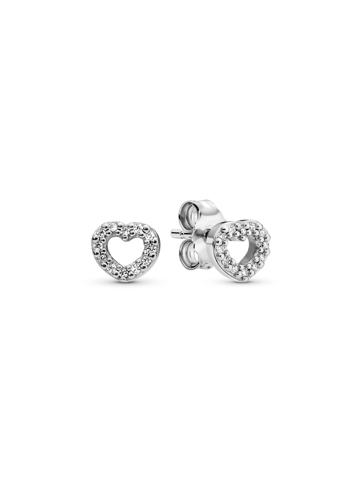 A heart doesn't have to be big to be filled with love. Our dainty earring studs are cast from sterling silver, one of our three signature metals. The open heart design is carefully set by hand with cubic zirconia for subtle sparkle as they catch the light. Wear them traditionally, as a pair, or individually as part of a curated earring stack.