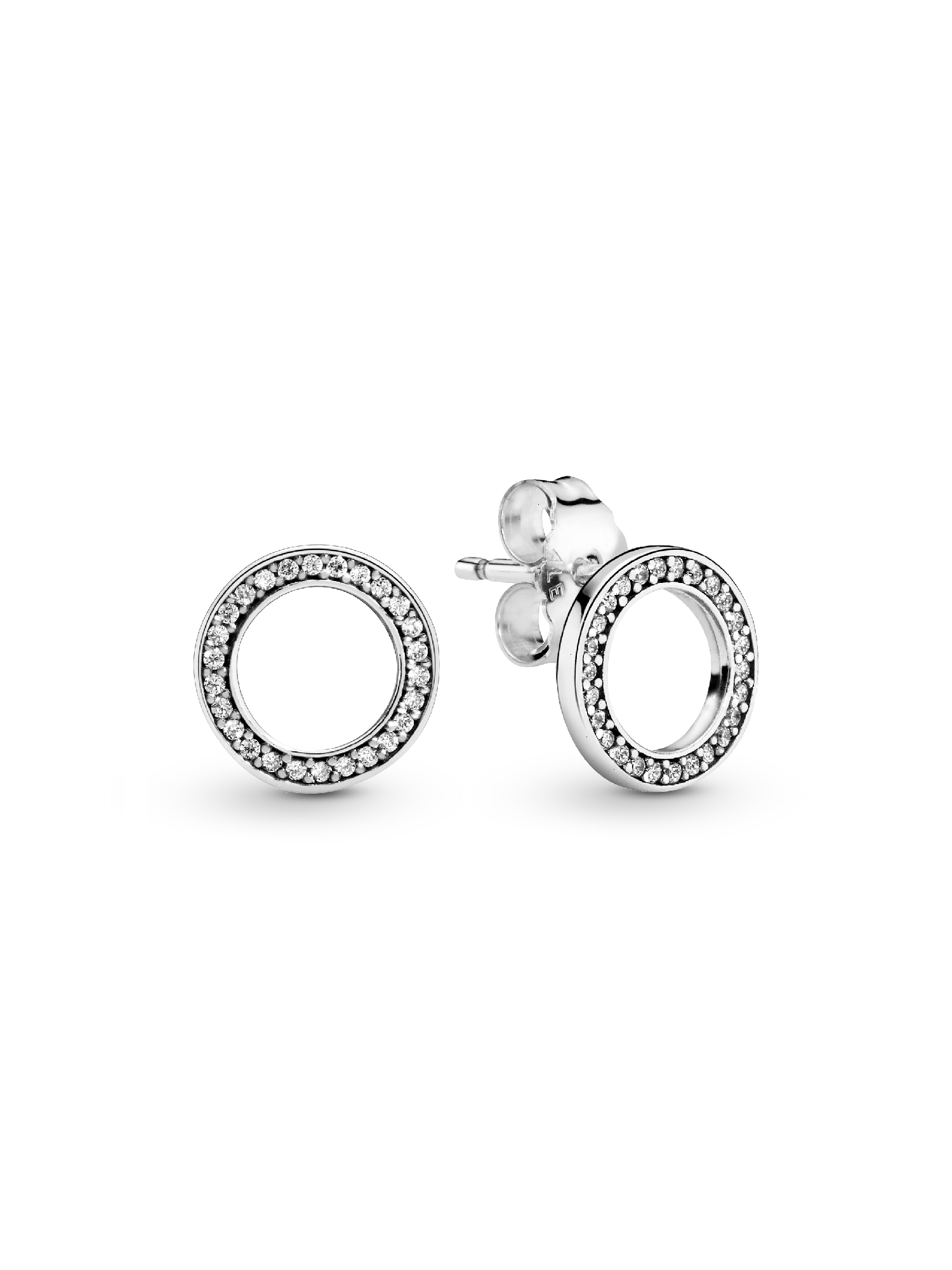 Jewelry trends come and go, but the circle remains an enduring symbol of style – and an emblem of forever. This pair of stud earrings is cast in sterling silver and set with cubic zirconia for a subtly sparkling finish. Wear individually to add a graphic touch to earring stacks or style as a pair for a cool take on everyday earrings. Who said geometry was boring?