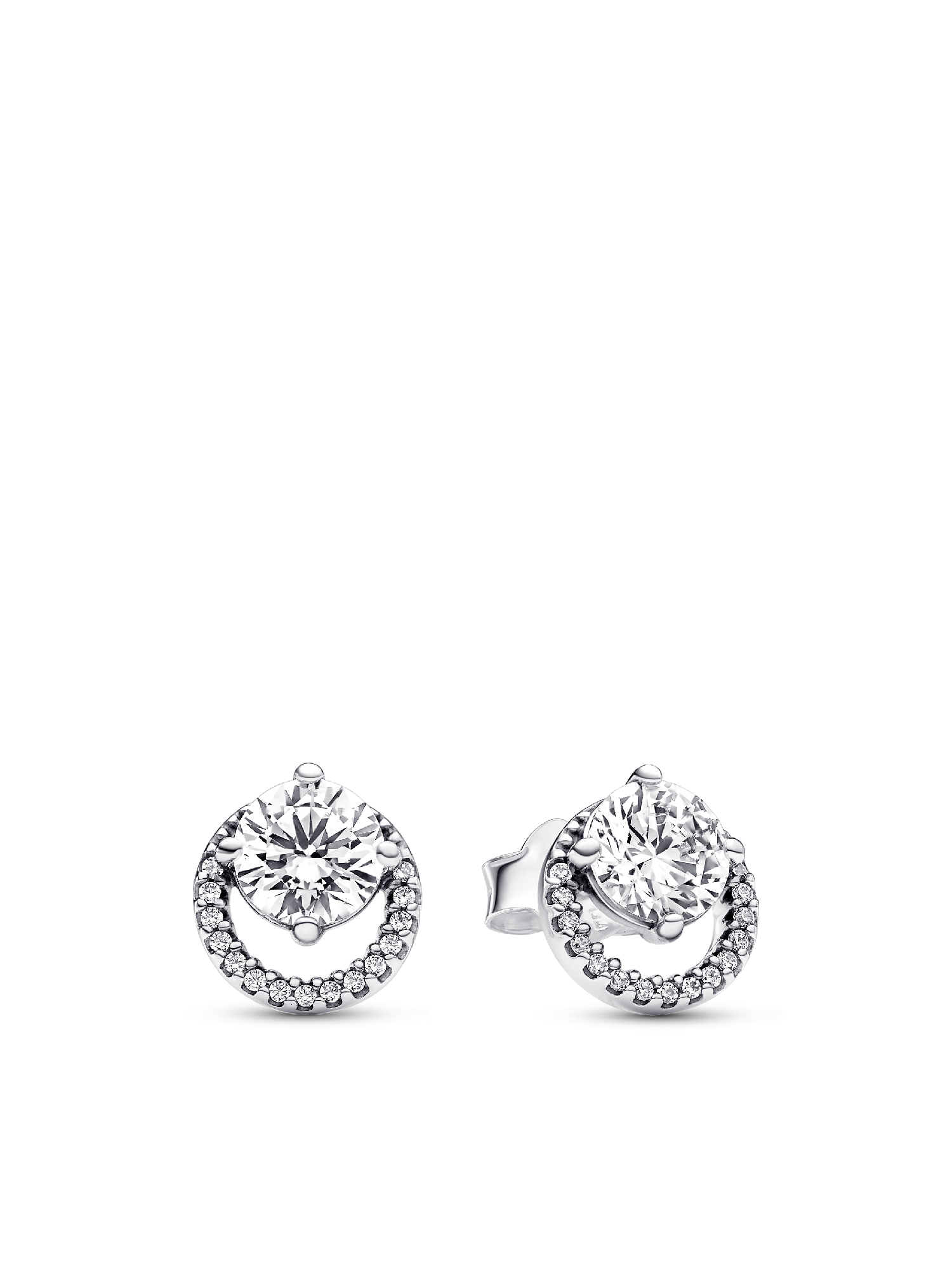 Bring on the shine with our Sparkling Round Halo Stud Earrings. Crafted from sterling silver, these stud earrings feature an off-center round brilliant-cut cubic zirconia surrounded by an eye-catching pavé halo. With 30 sparkling cubic zirconia, these earrings capture the everlasting symbolism of circles. The design, inspired by Pandora Timeless motifs, seamlessly blends classic beauty with giftable elegance. Elevate your style with this pair, perfect for any occasion.