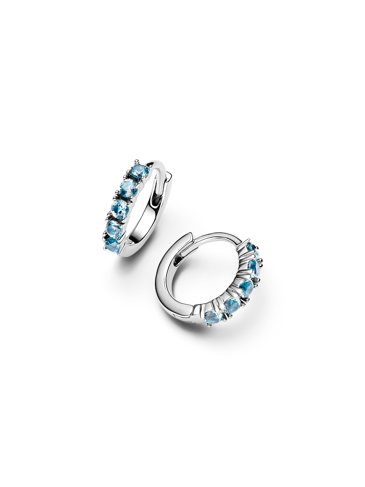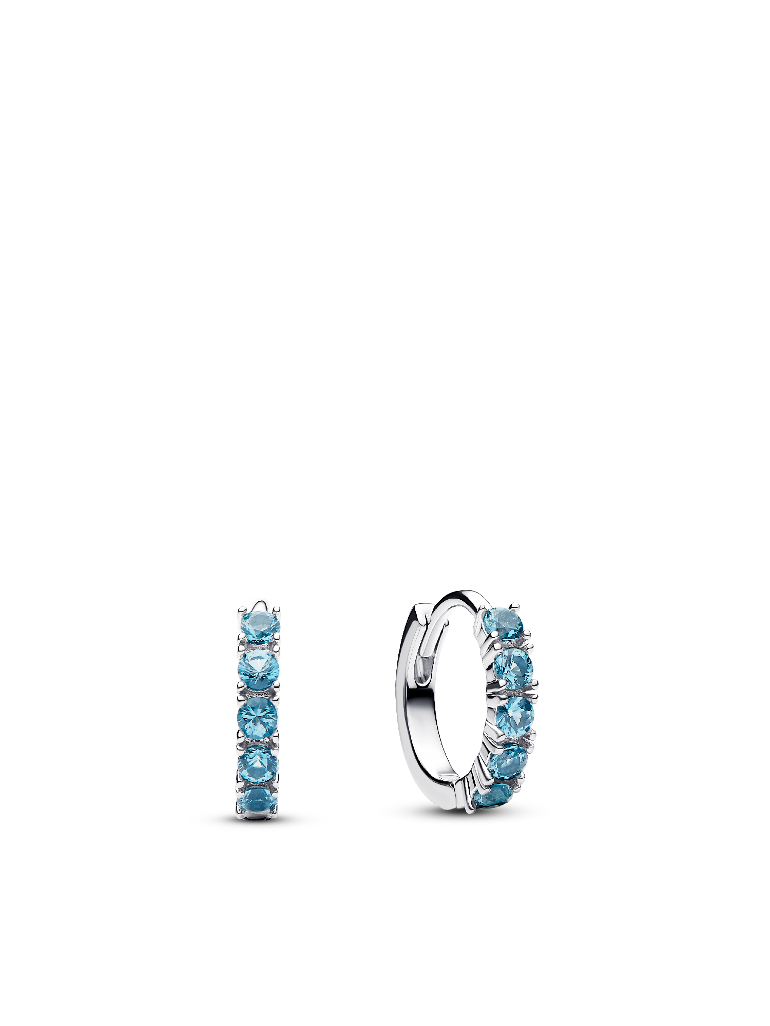 Add a pop of color to your look with these beautiful earrings, showcasing a row of aquamarine blue crystals in a delicate design.
