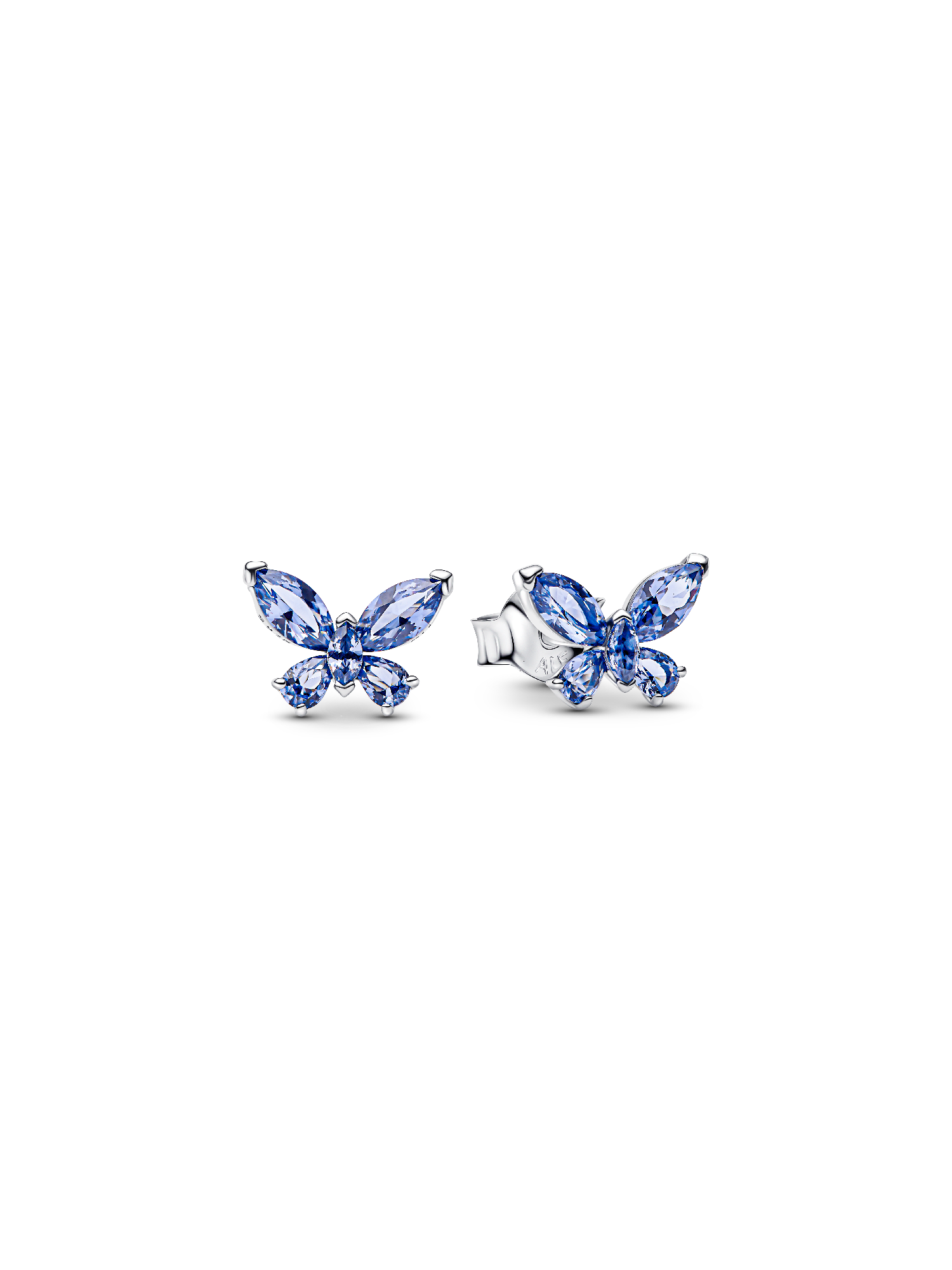 Let your imagination take flight. Our sterling silver butterfly stud earrings make a vibrant addition to your jewellery stack, with blue man-made crystals mimicking the appearance of a starry night’s sky.
