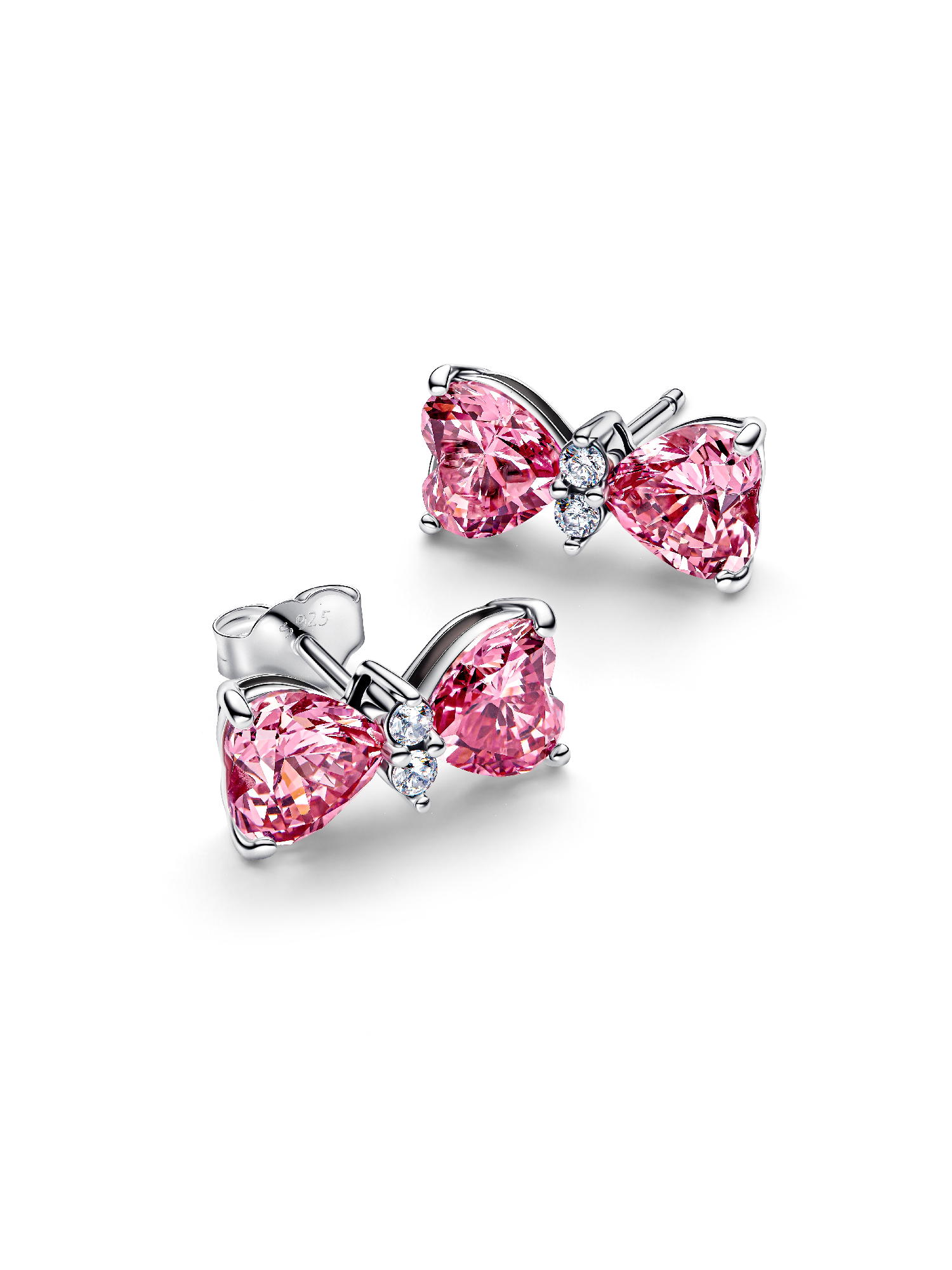 Some ties never come undone. Get wrapped up in our bow stud earrings, made of sterling silver and set with heart-shaped pink and clear cubic zirconia for a delicate symbol of grace.