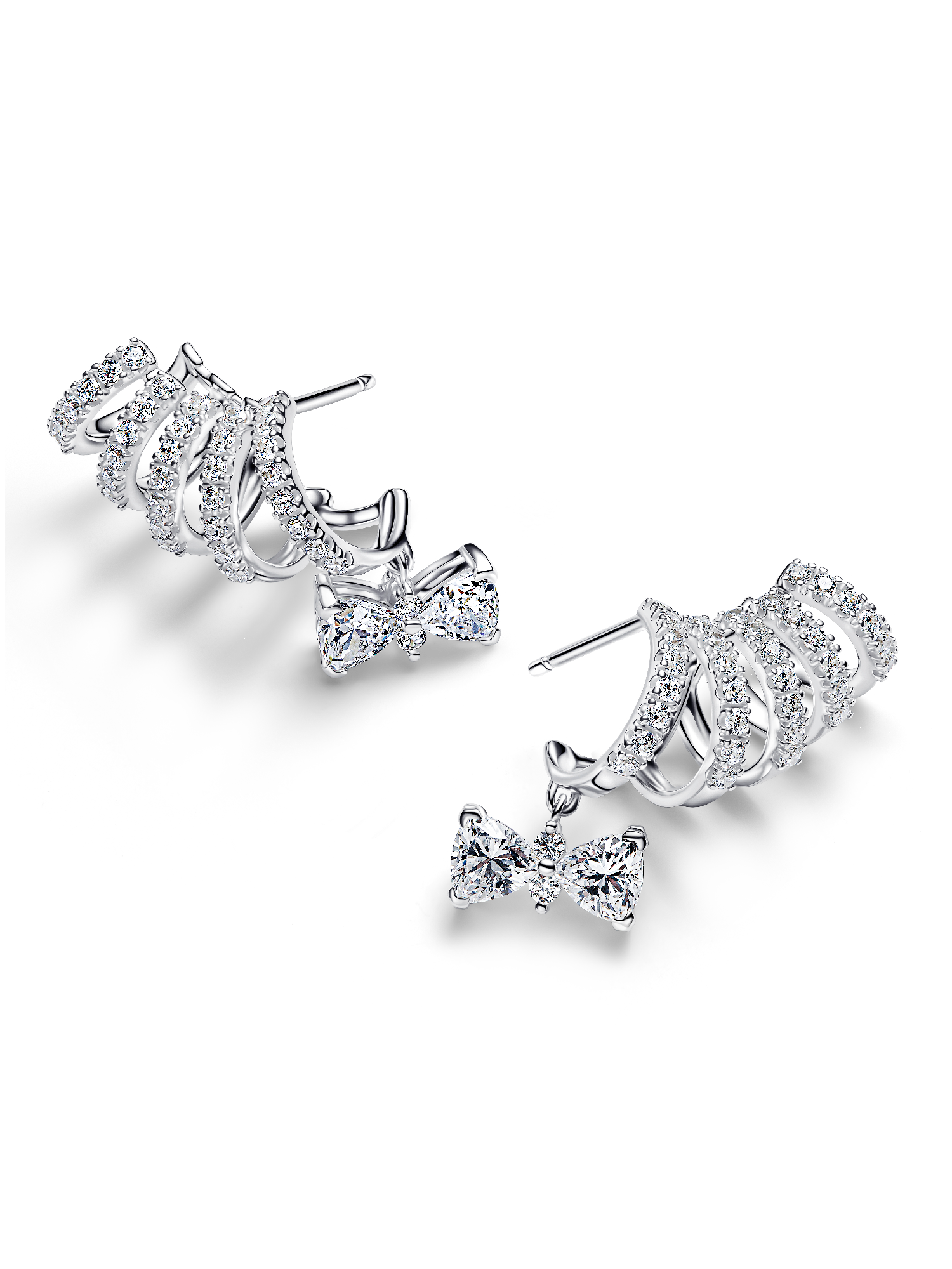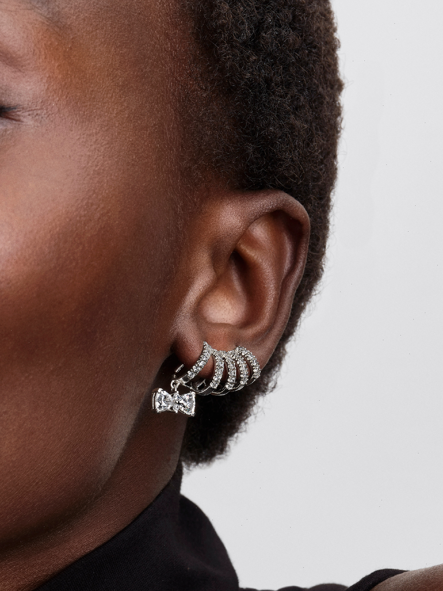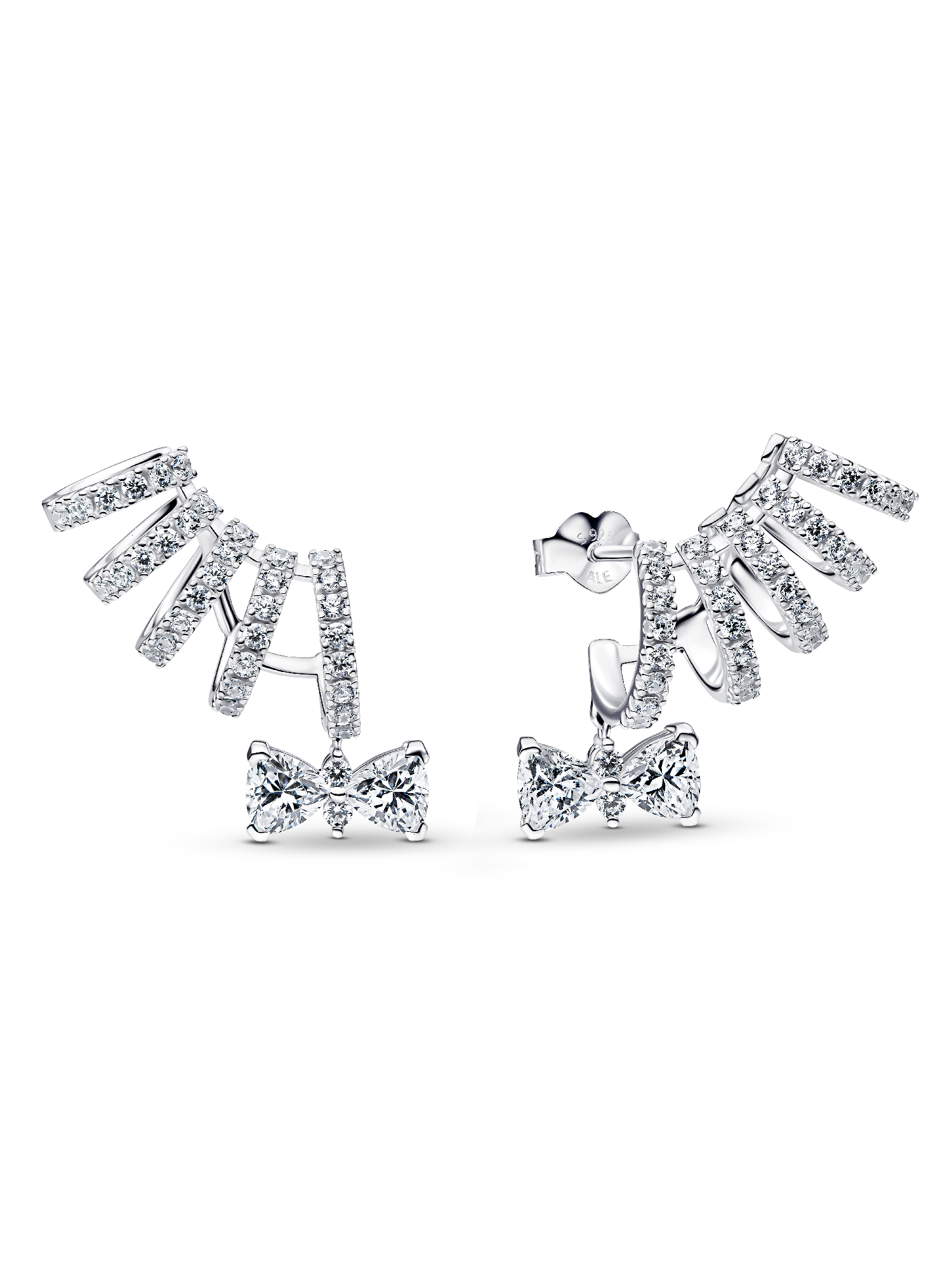 Crafted in sterling silver, these Bridgerton-inspired earrings feature dangling bows set with stones. Five curled lines climb up your ear, capturing the elegance of high society with a modern twist. Cue the swoons.