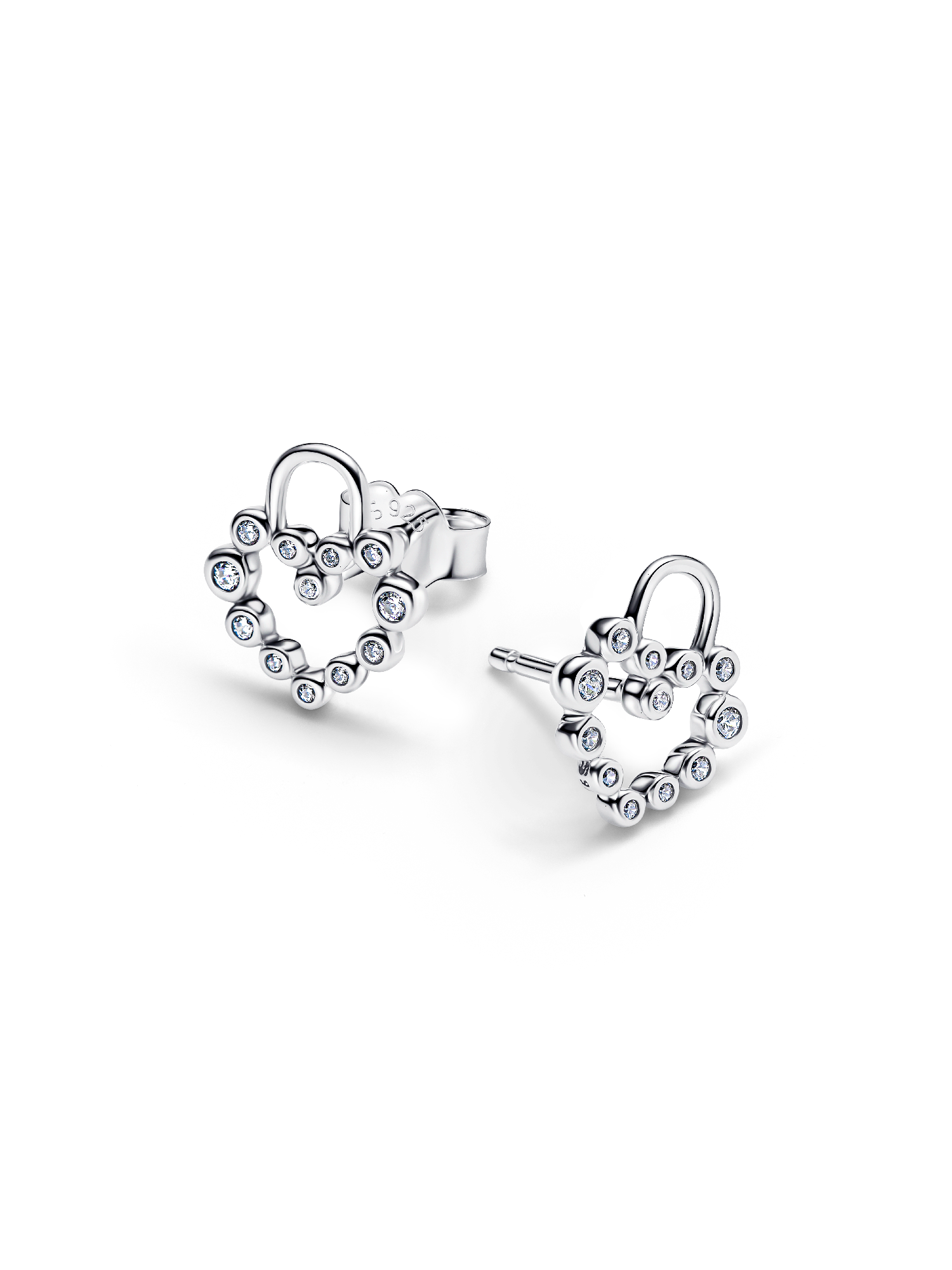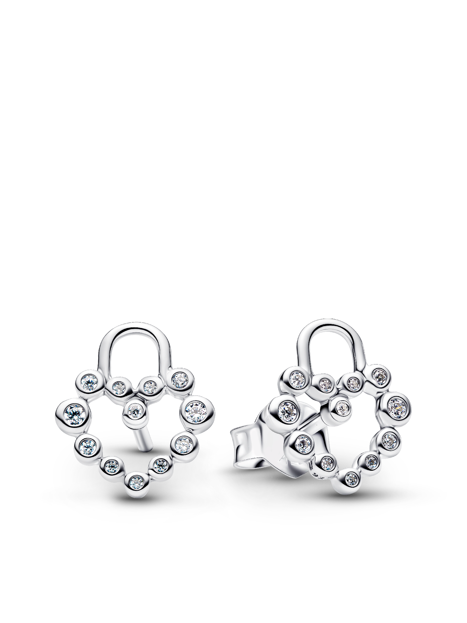Sparkling stones form a heart on these sterling silver earrings, designed to resemble a padlock. Because love really is the key to everything.