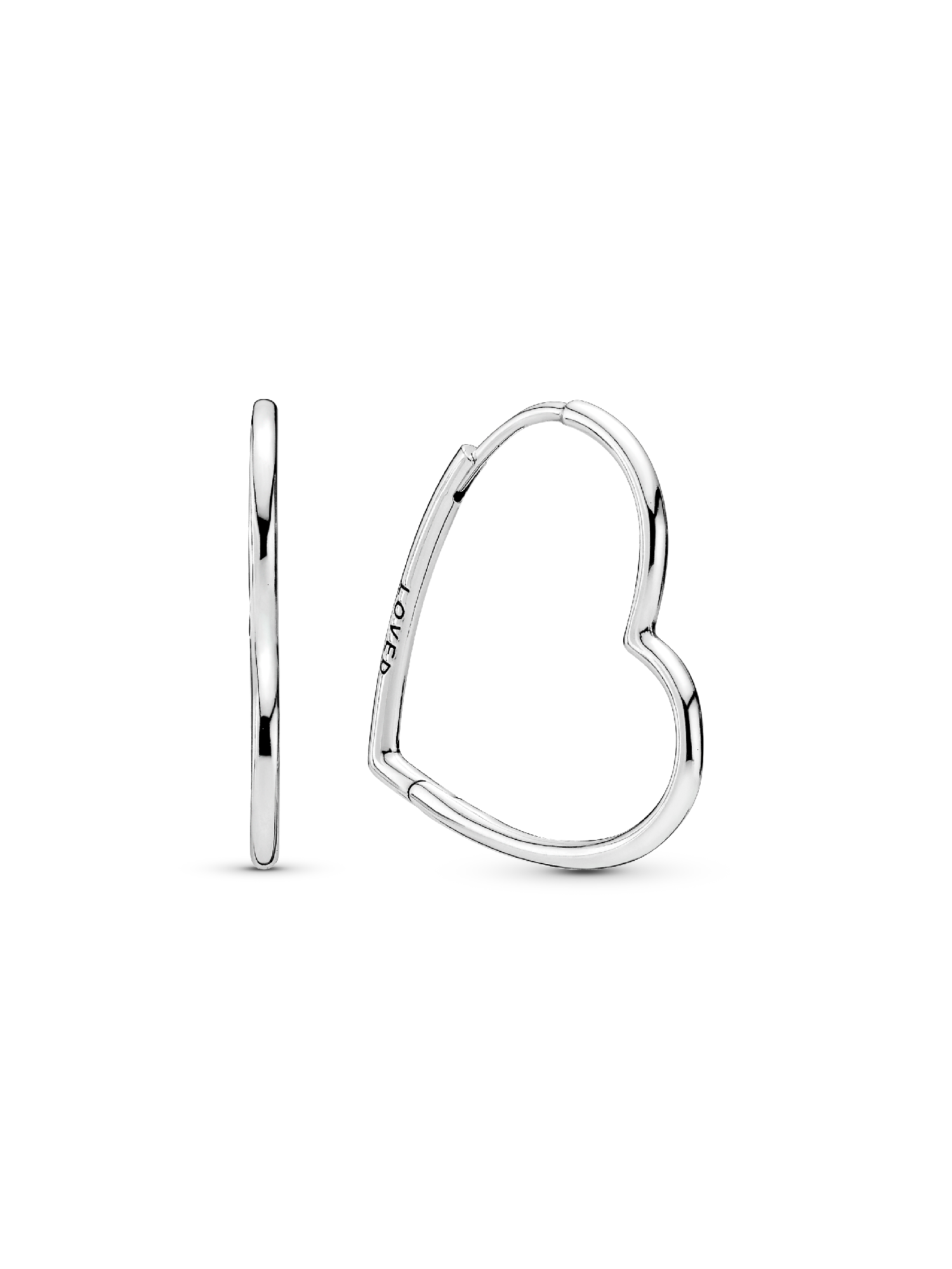 Carry love with you wherever you go with these heart earrings. Reworking the classic hoop into a modern shape representing love, our asymmetrical heart-shaped earrings make for the perfect statement piece showing the perfectly imperfect nature of love. The earrings are hand-finished in sterling silver that's been polished to a high shine. Wear them solo or as part of a personal earring stack. Please note this item is only compatible with Pandora ME jewelry and will not fit our other collections.