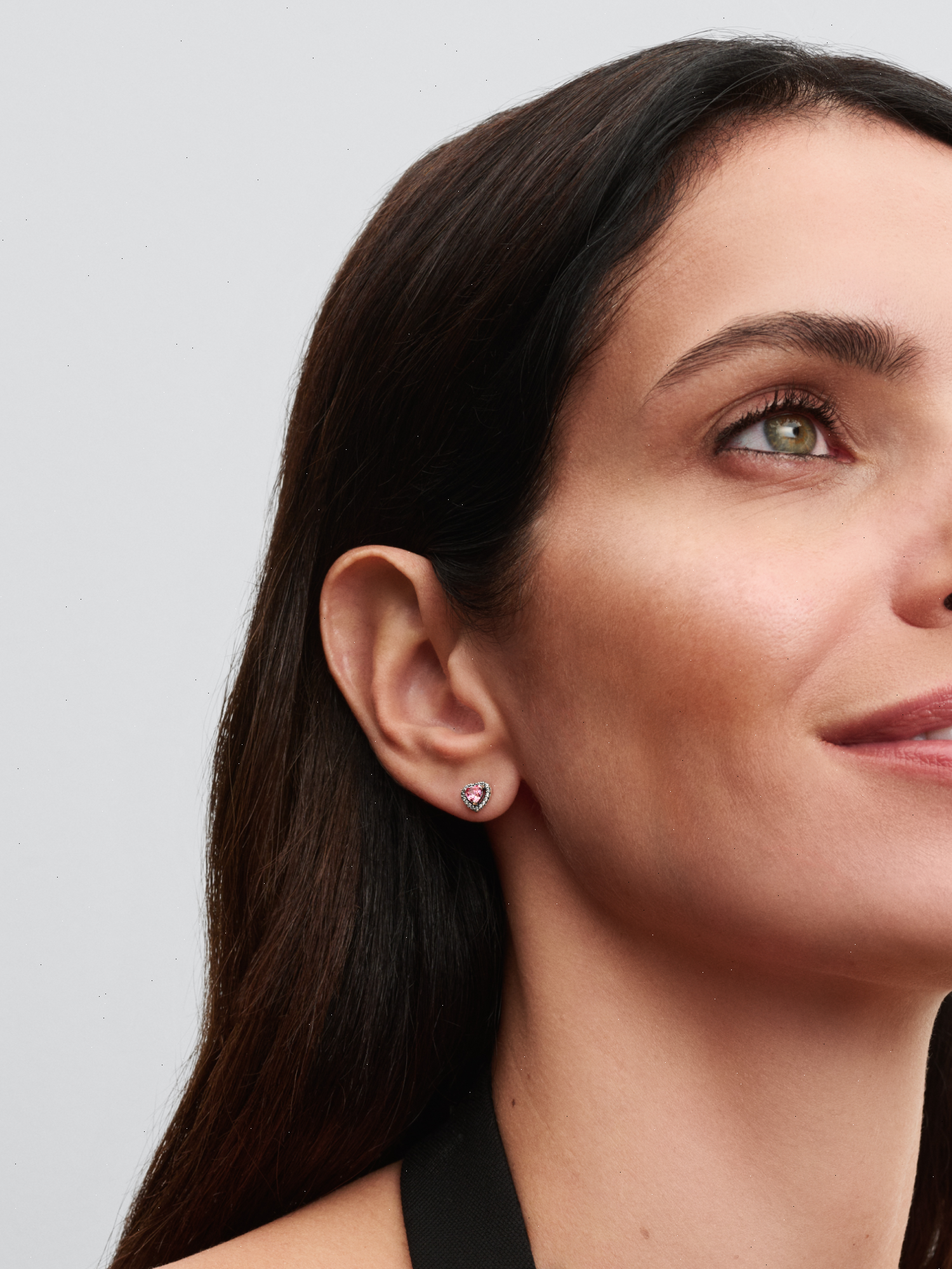 Embrace a dash of cool-toned color with the Elevated Pink Heart Stud Earrings. Made of sterling silver, these earrings feature raised heart-shaped pink stones surrounded by sparkling pavé. Inspired by feelings of love and gratitude, this ring embodies all the warm and shining feelings that come from the heart. Gift it to someone you hold close, or add it to your own collection for days when you need a pop of pink –or a reminder to share the love.