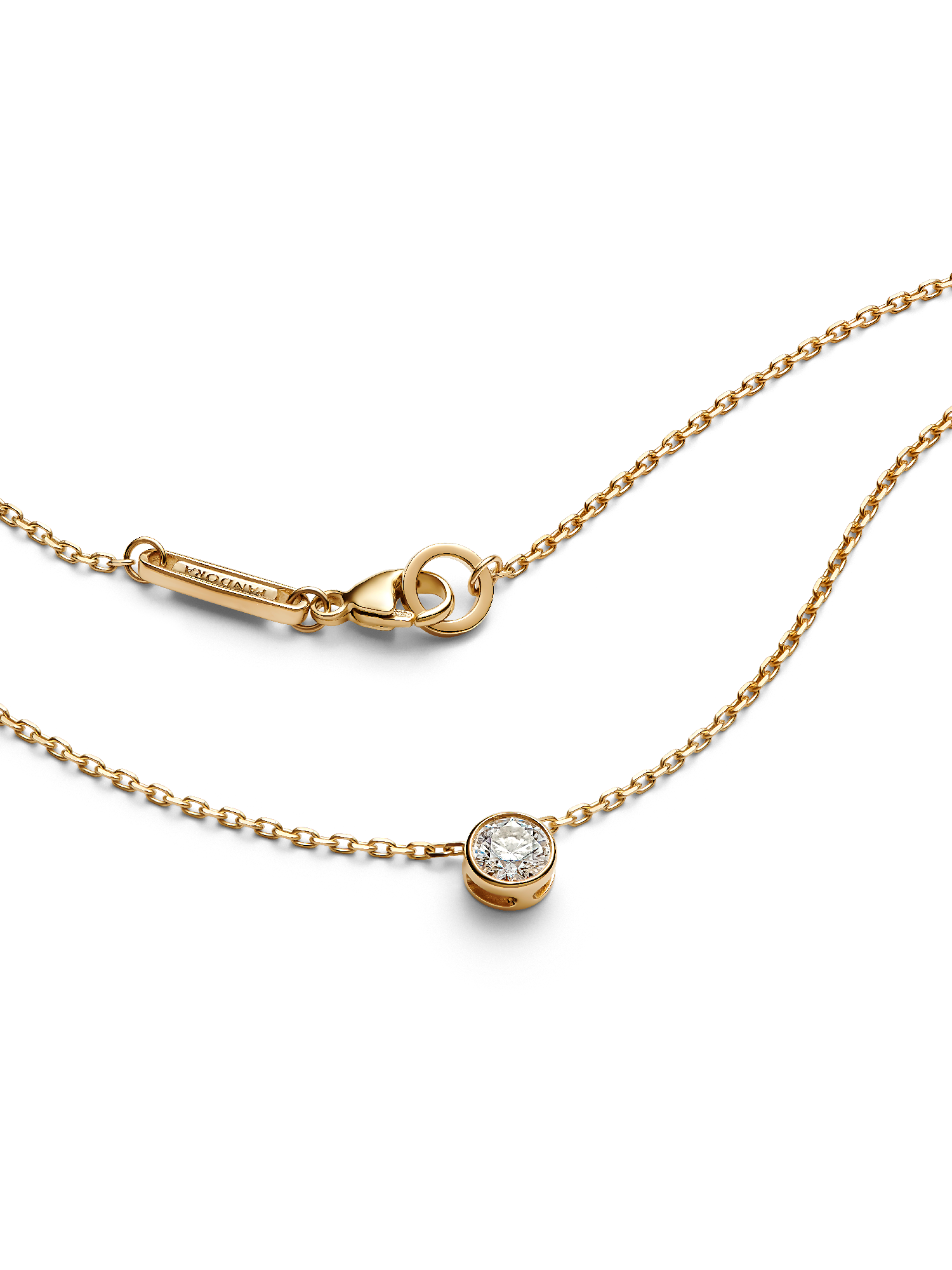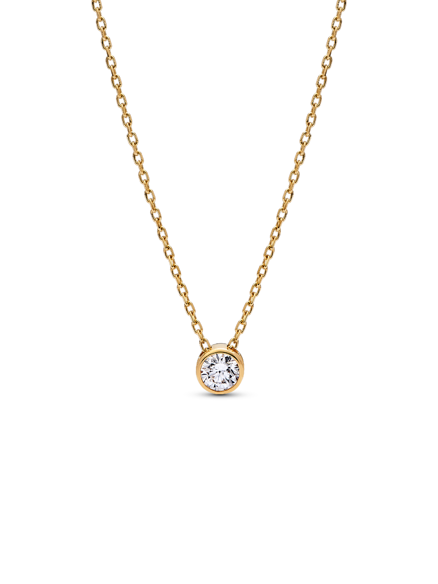 Meet your new essential necklace. The Pandora Era Bezel 14k Gold Lab-grown Diamond Pendant Necklace features a 0.25 carat lab-grown diamond pendant in a 14k gold bezel setting with a sleek, contemporary aesthetic. Cut-outs on the back and sides of the bezel setting let in the light for ultimate sparkle. The pendant moves freely along a 14k gold diamond-cut cable chain, adjustable to two lengths. A classic that brilliantly rises above time, it's the perfect elevated staple for your everyday looks. Each Pandora Lab-grown diamond is treated with a post-growth color enhancement called annealing.