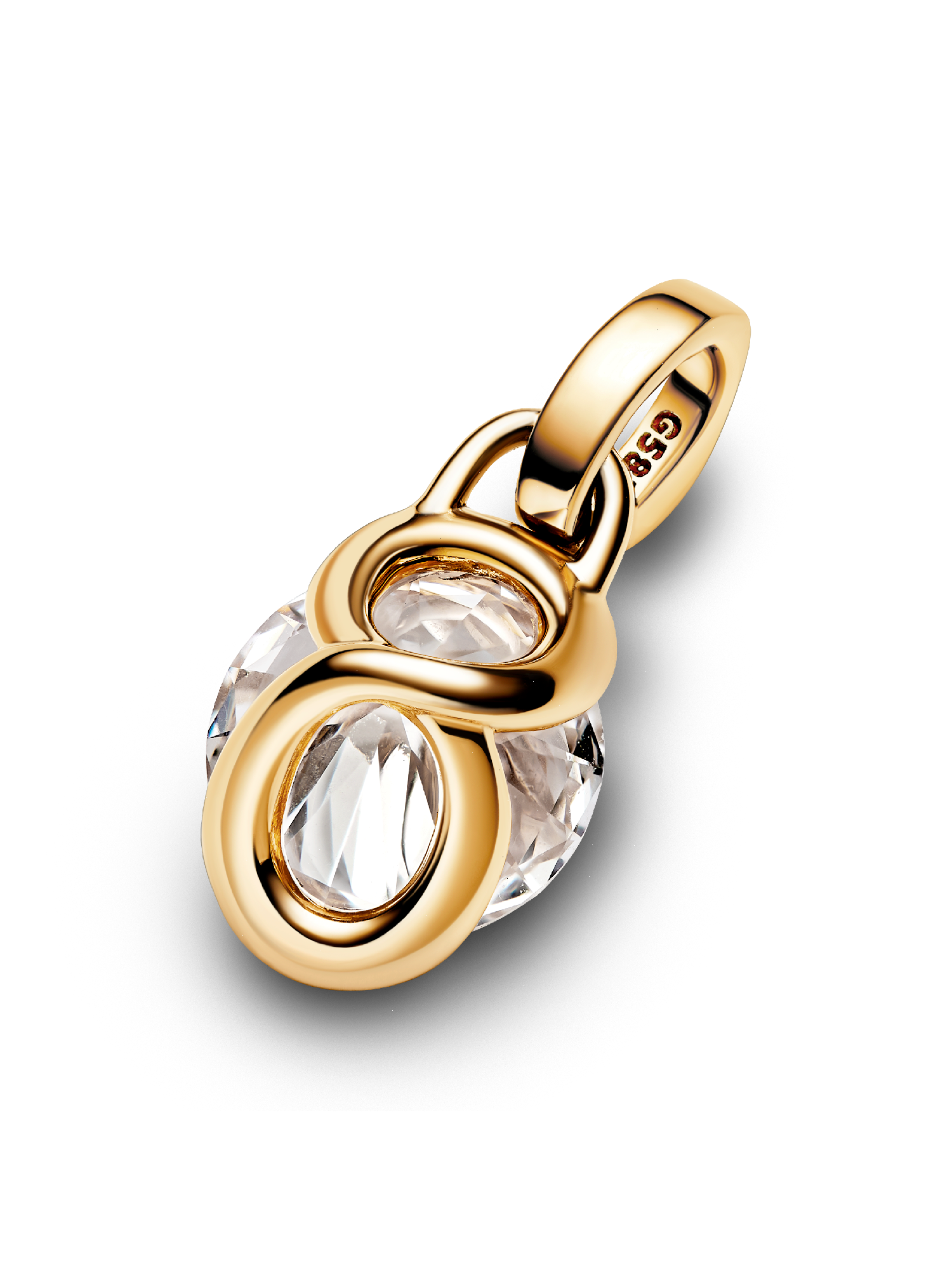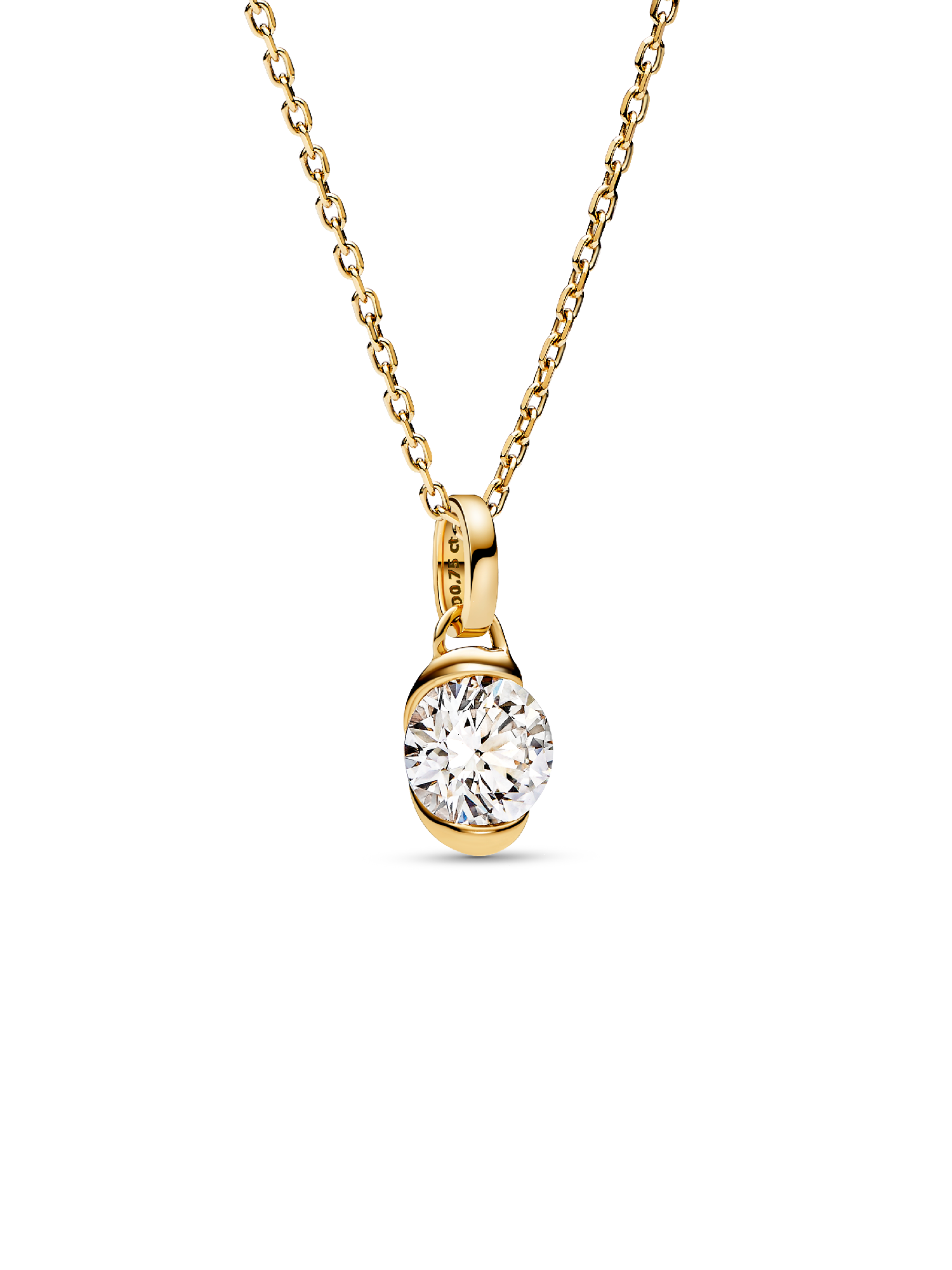 Embrace endless possibilities with the Pandora Talisman 14k Gold Lab-grown Diamond Infinity Pendant. This 14k gold pendant features a 0.75 carat lab-grown diamond in a unique setting inspired by the infinity symbol. From the front, two crescent-shaped prongs framing the lab-grown diamond - turn it around to reveal an openwork infinity loop motif forming the setting behind the stone. Wear it as a talisman to symbolize infinity in its many senses: eternal love, limitless potential, all the possibilities life has to offer... Each Pandora Lab-grown diamond is treated with a post-growth color enhancement called annealing.