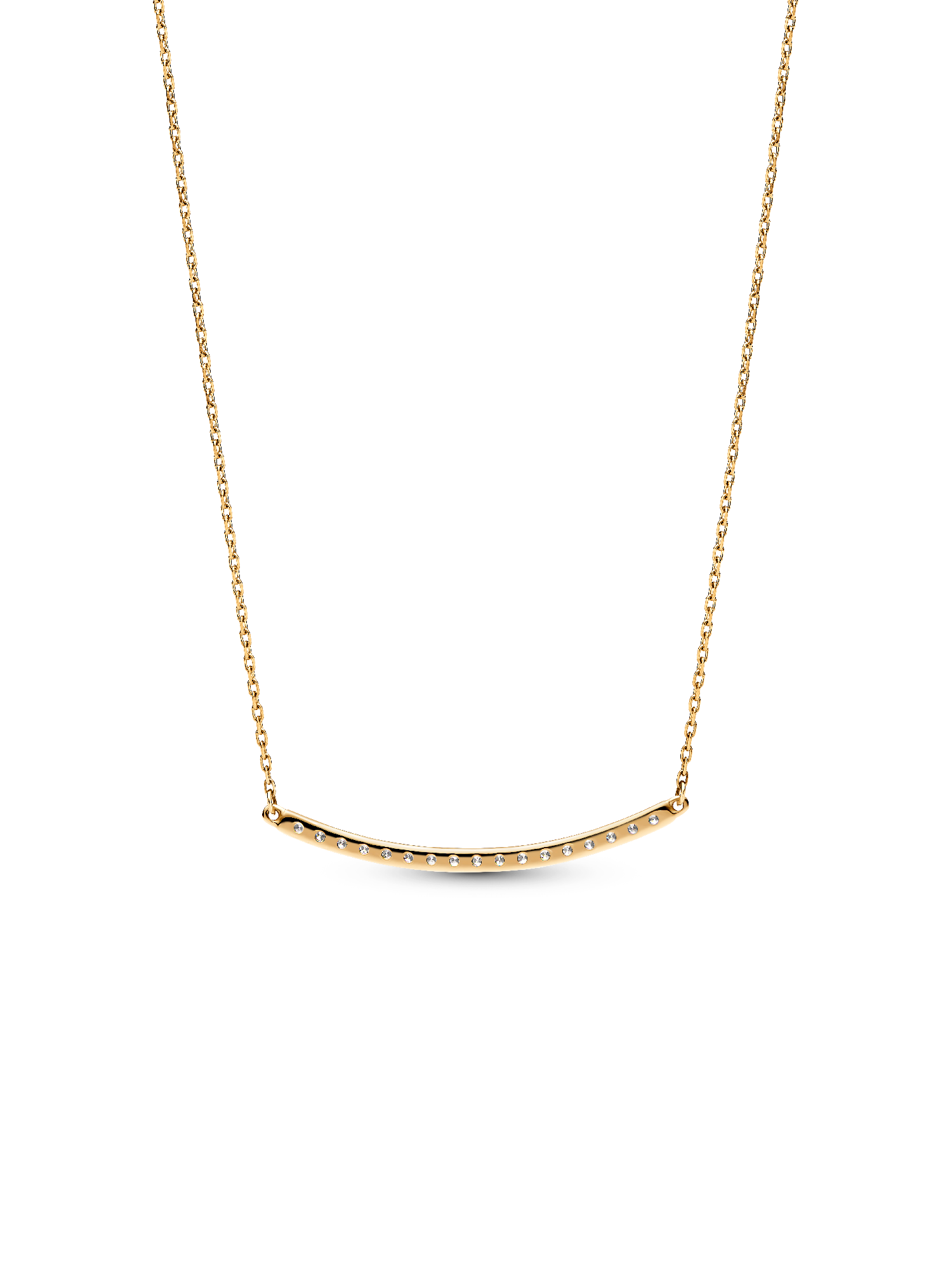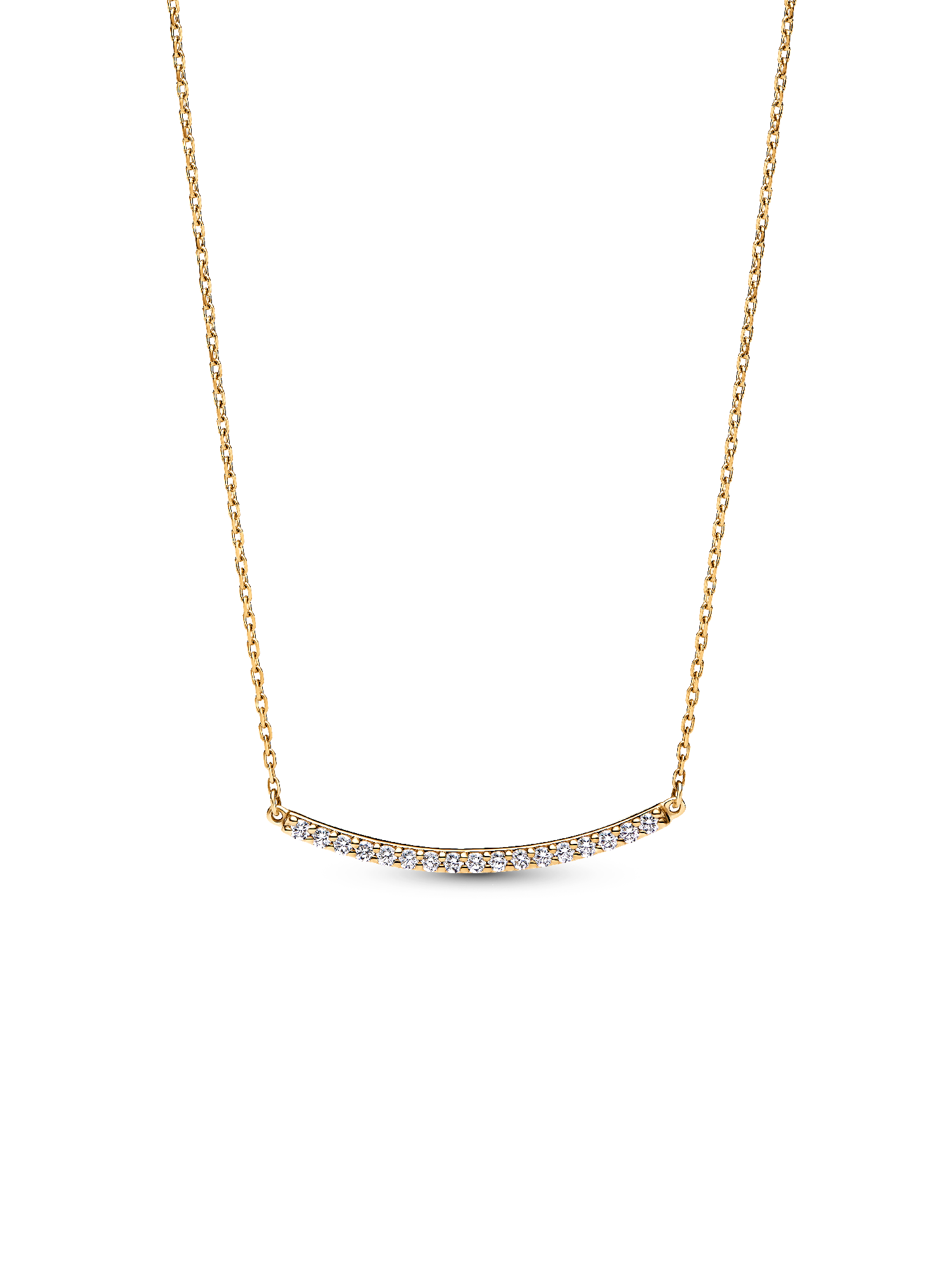 Meet your new never-take-me-off necklace. Prong-set with 17 lab-grown diamonds, this 14k gold necklace is designed with a bar shape that radiates light from all angles. The prong setting embraces the lab-grown diamond on a diagonal, allowing as much light to reflect through it as possible, so your jewelry sparkles all the brighter. Add it to your stacks for a touch of brilliance, or wear it solo as a shining statement. To ensure our rigorous standards of quality in color and clarity, each lab-grown diamond has undergone an additional high heat and pressure treatment prior to cutting and polishing.