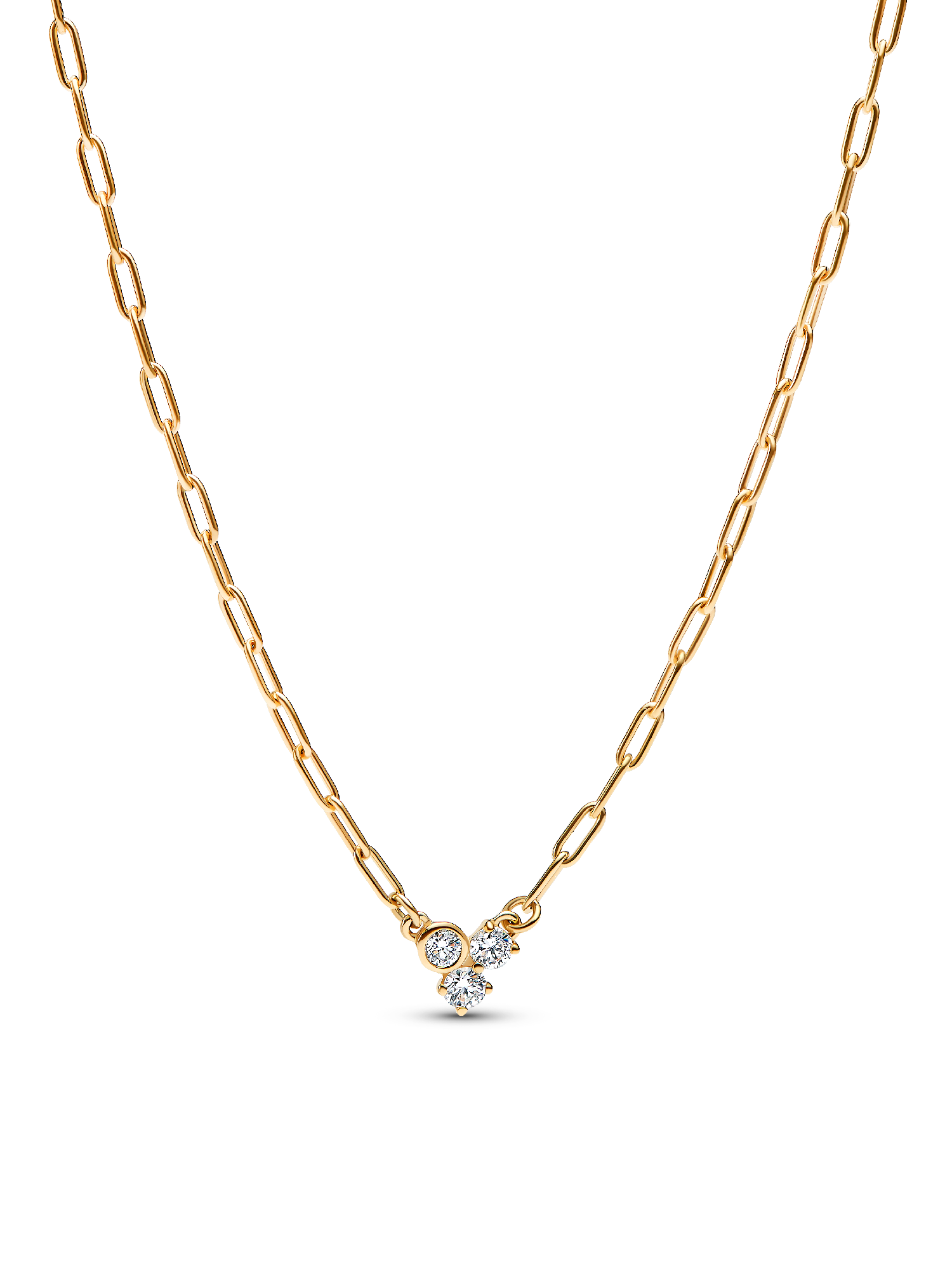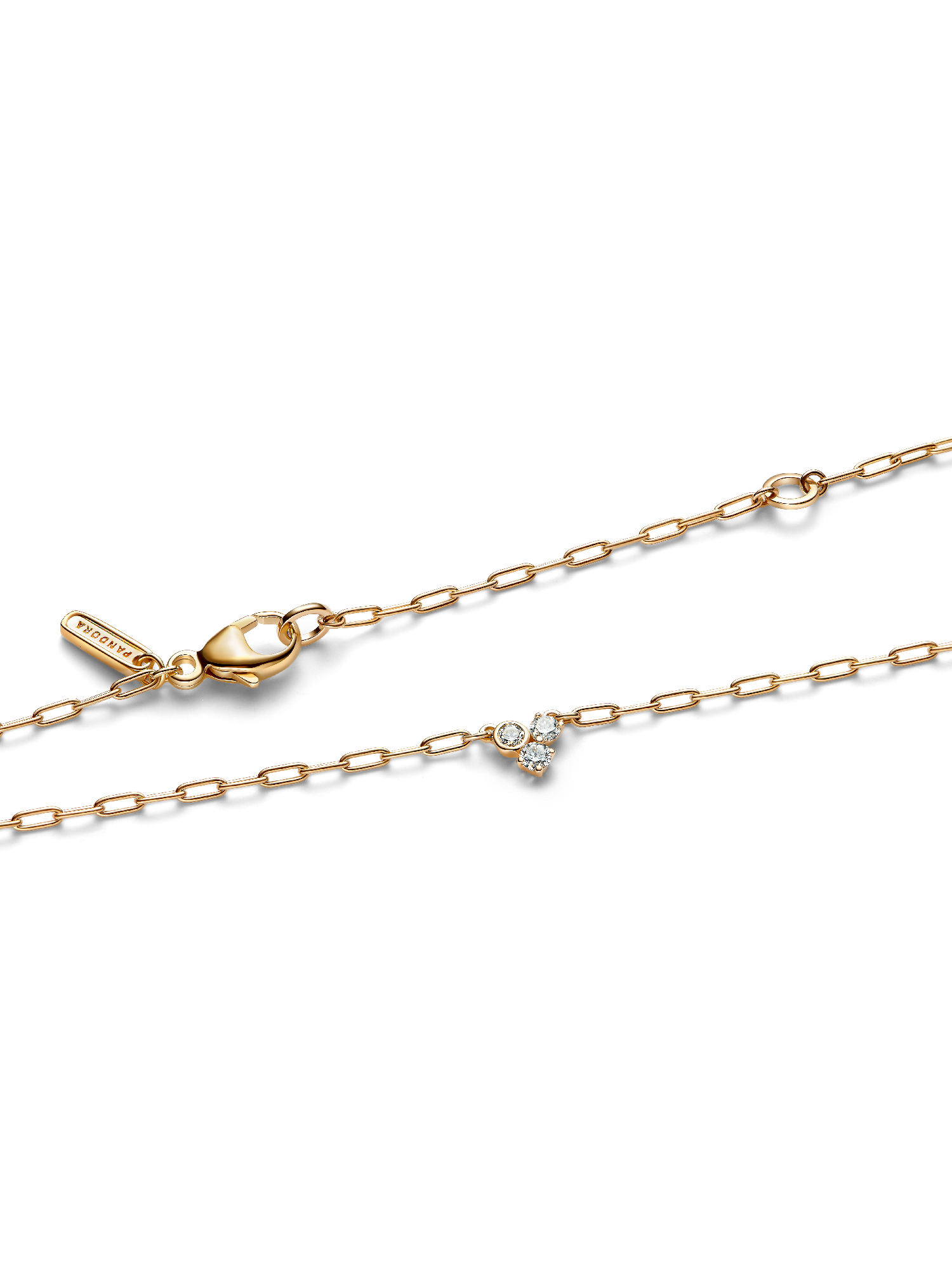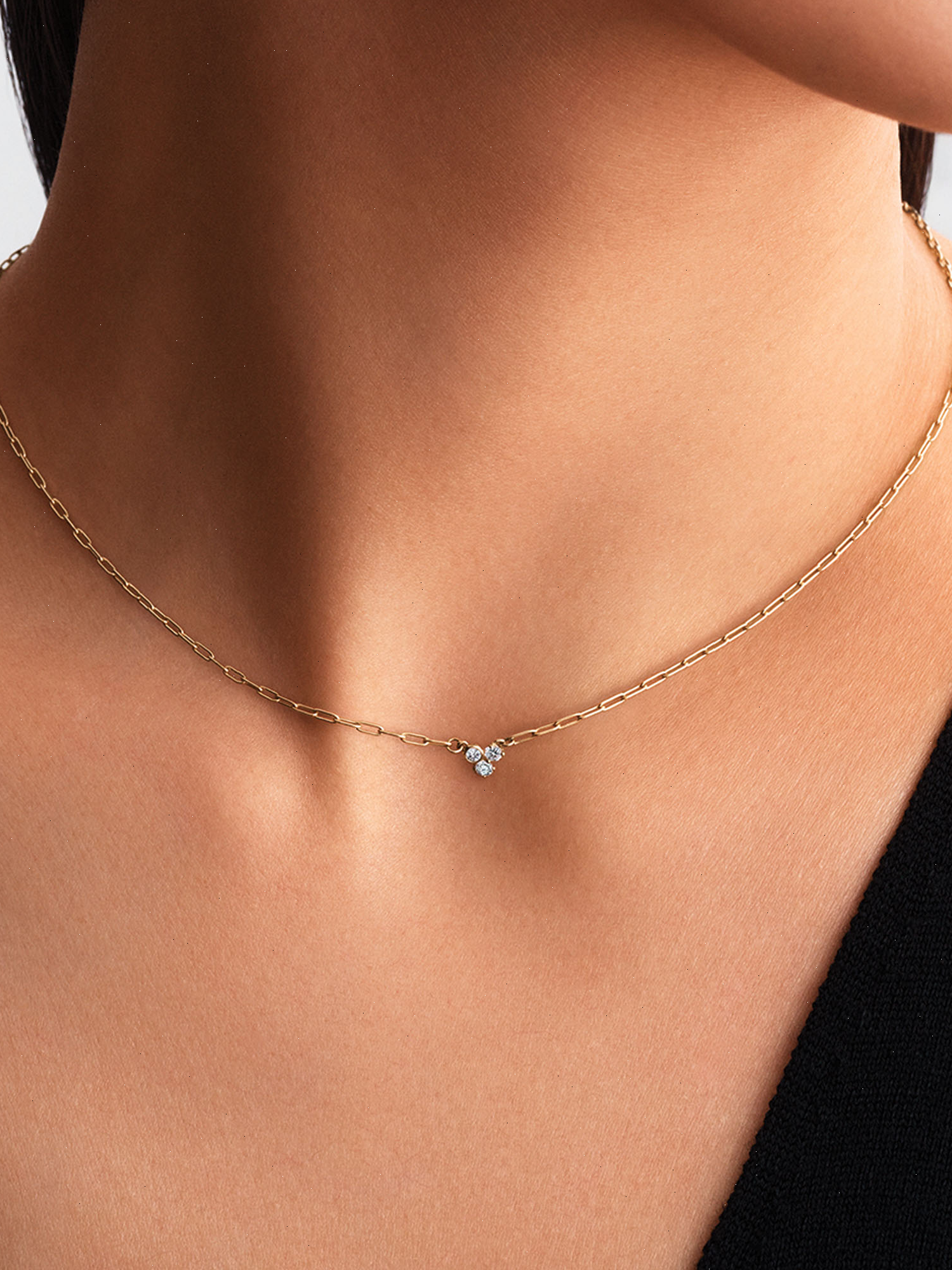 Elevate your everyday look with this refined necklace, featuring a trio of lab-grown diamonds. Crafted from solid 14k gold, this adjustable piece is versatile for layering or as a standalone accent. The delicate cluster showcases two prong-set and one bezel-set round brilliant-cut diamonds, perfect for adding a touch of elegance to your ensemble.