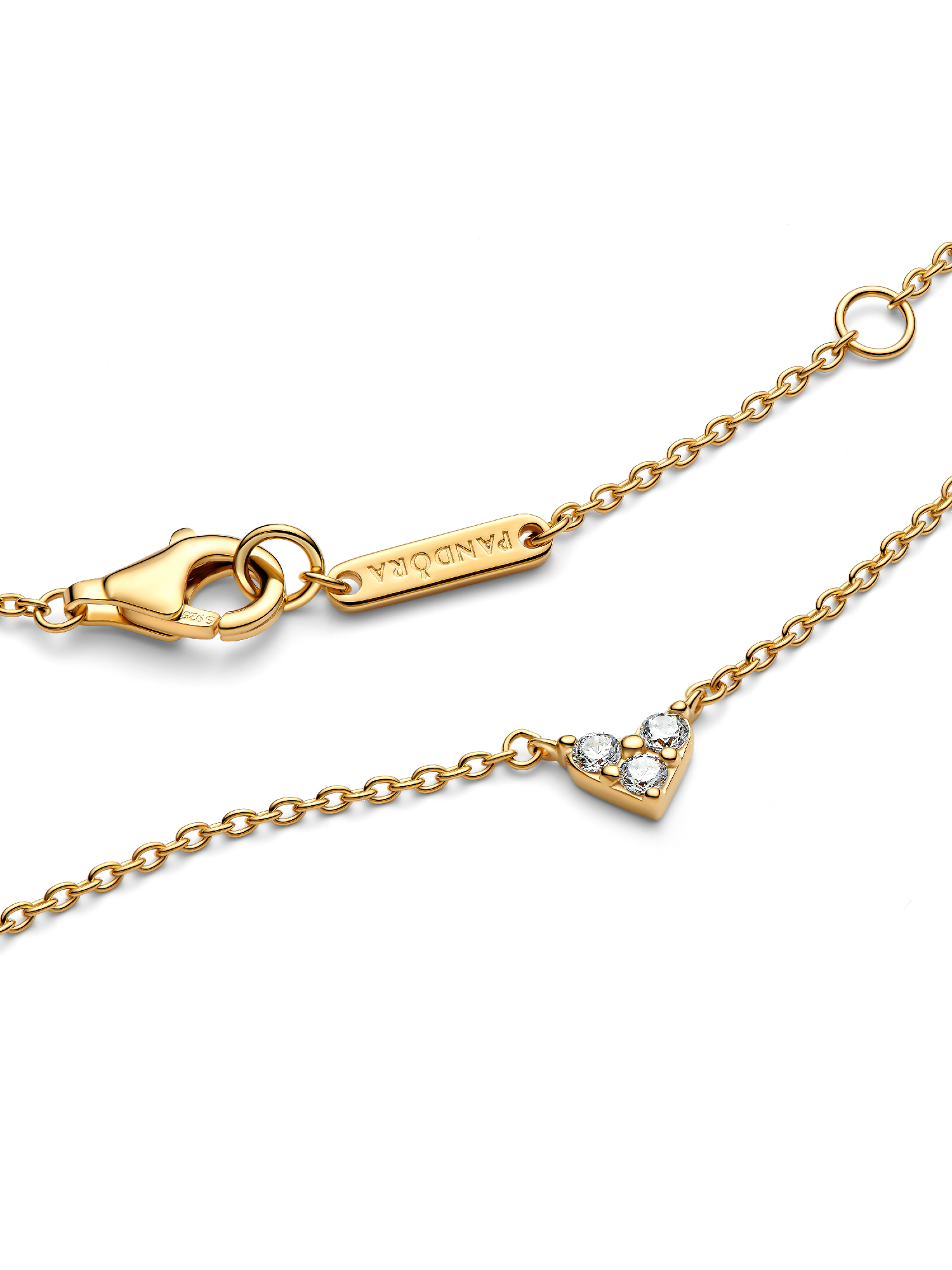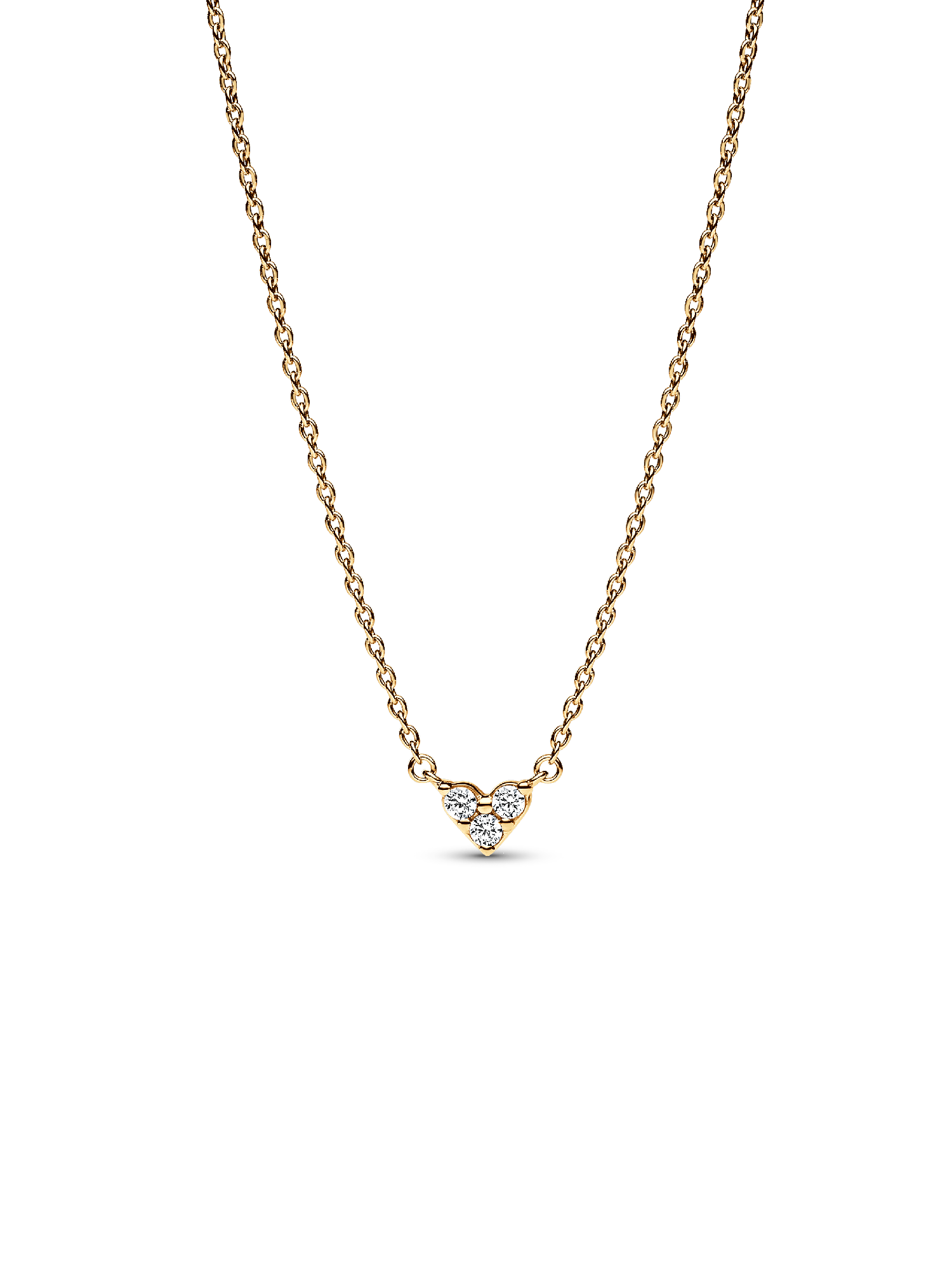 Wear a symbol of love with this triple stone heart necklace. The delicate, sparkling style takes its inspiration from everlasting love, while the design arranges three round brilliant-cut stones into an elegant and refined heart shape.
