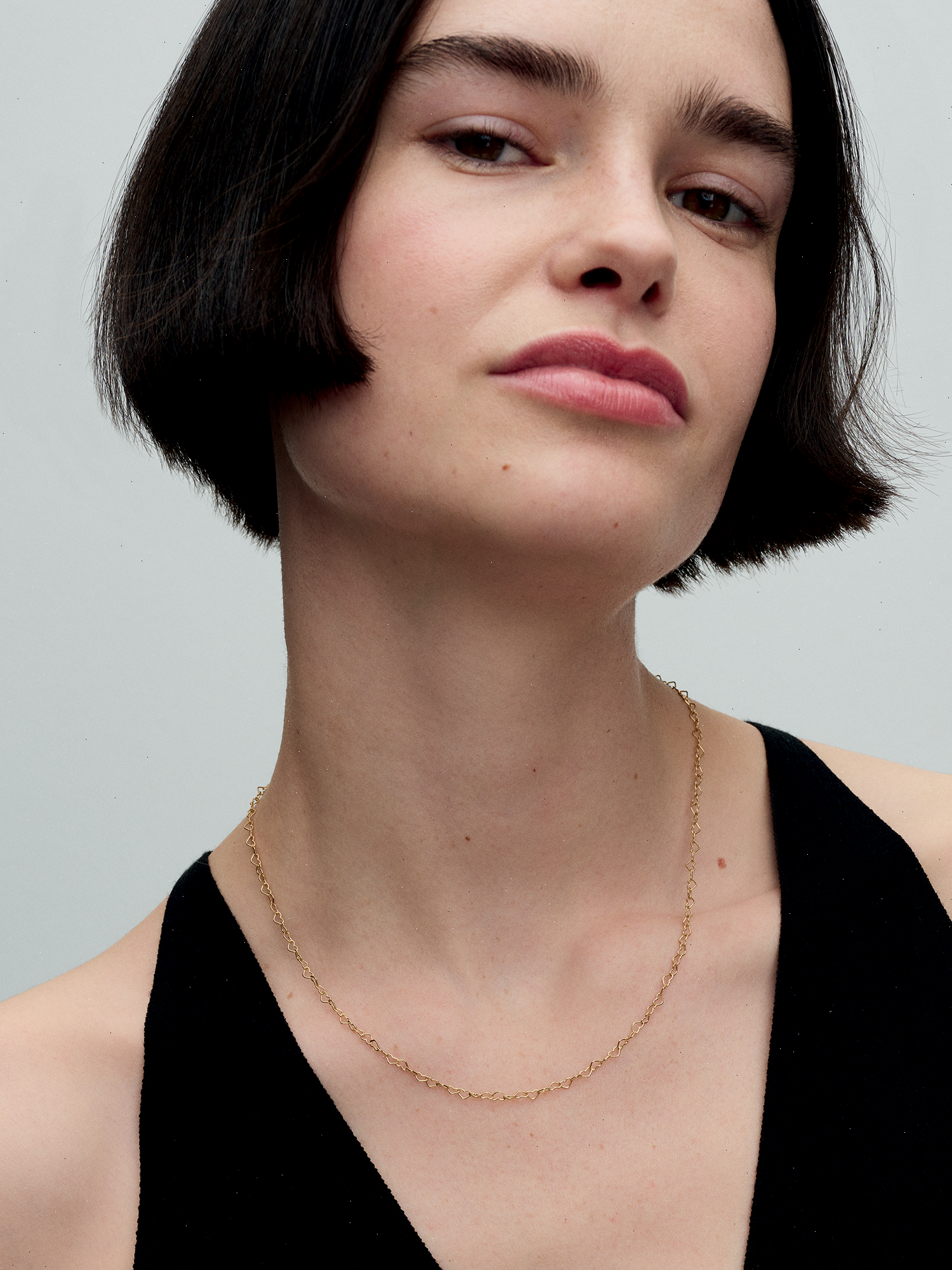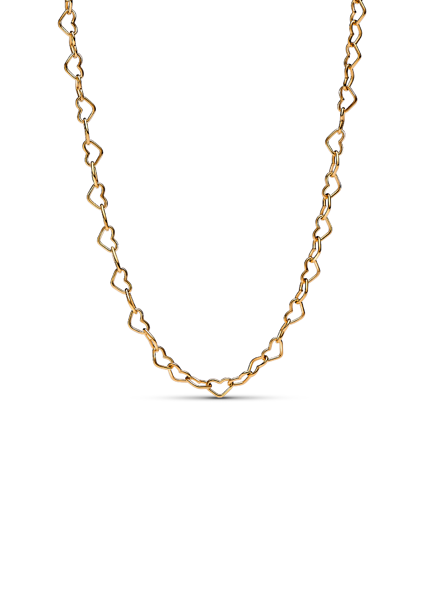 Go for delicate elegance when you choose the Linked Hearts Collier Necklace. Tiny 14k gold-plated linked hearts form an adjustable chain necklace. This design takes a classic shape and reinvents it in the form of a scaled-down, repeat pattern. Equal parts sweet and sophisticated, this sleek warm-toned heart necklace will become a core component of any jewelry collection. Wear it with a sweater for easy daytime style or layer it with cool-toned necklaces for a mixed-metal effect.