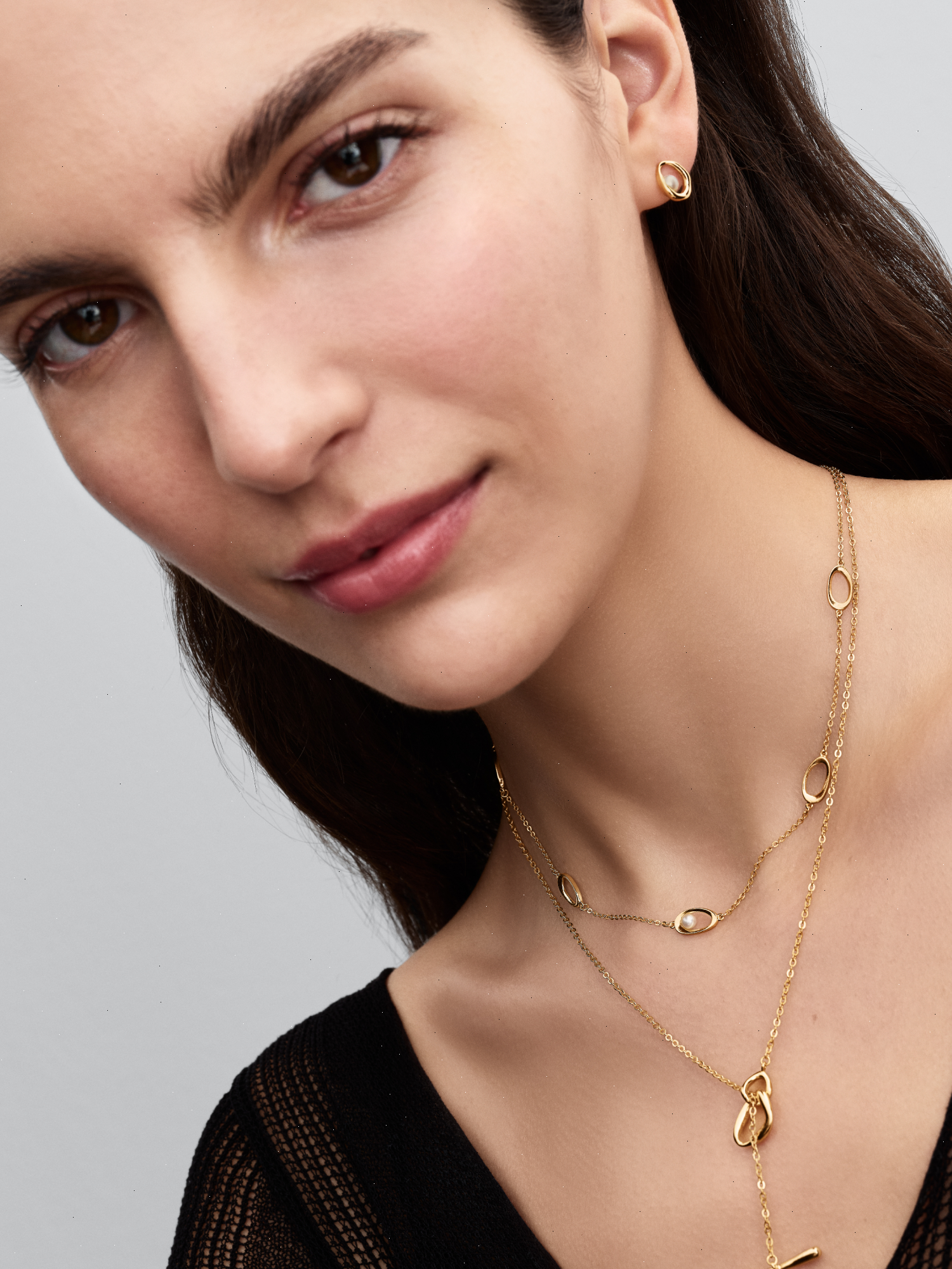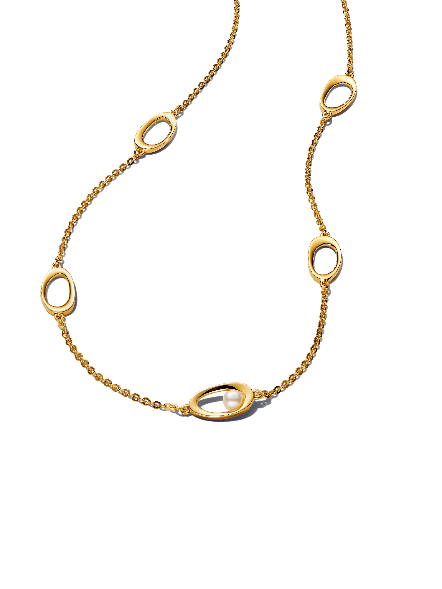 Elevate your style with a delicate necklace that showcases organically shaped ovals and a luminous treated white freshwater cultured pearl. Perfect for everyday wear.