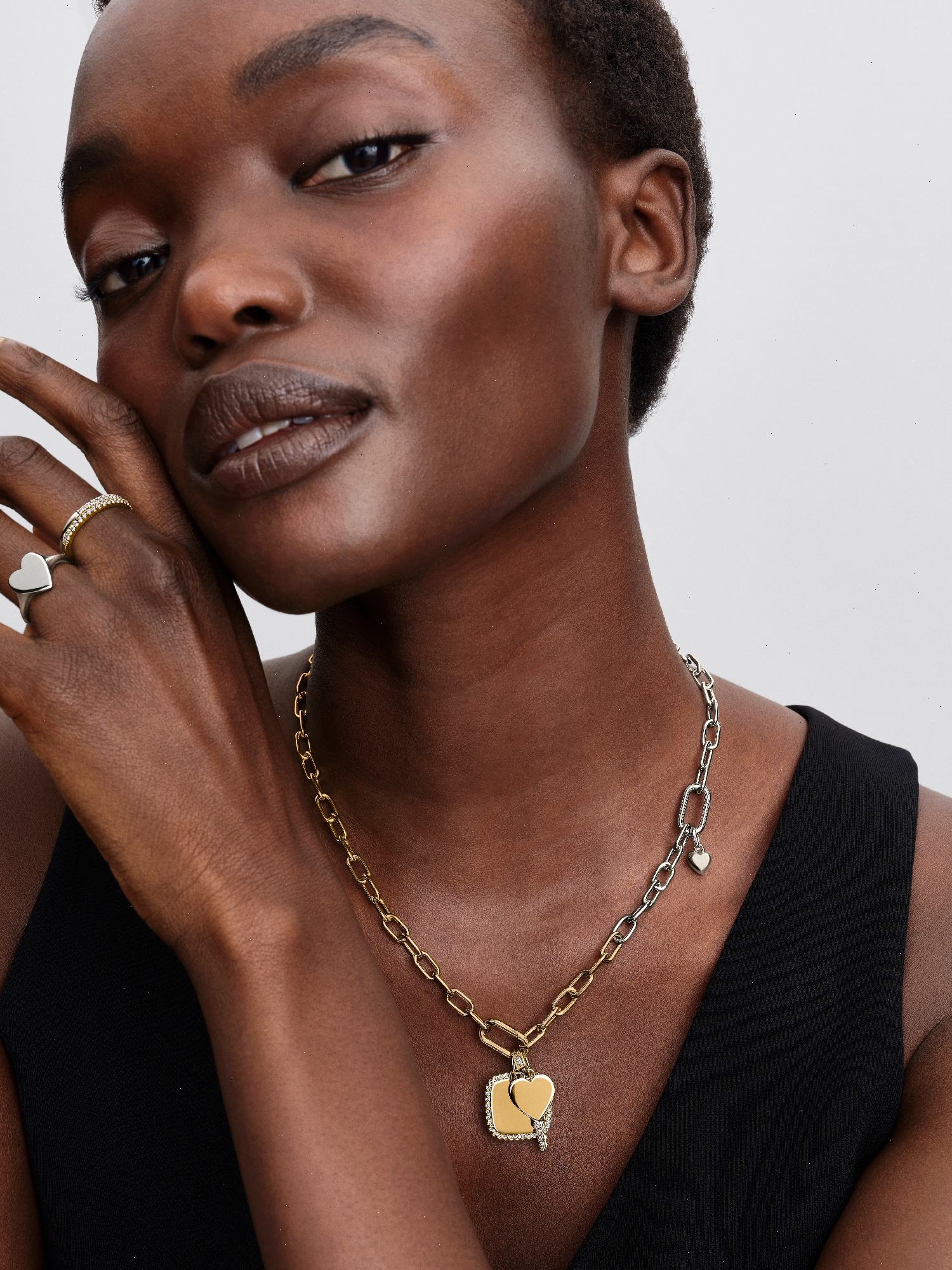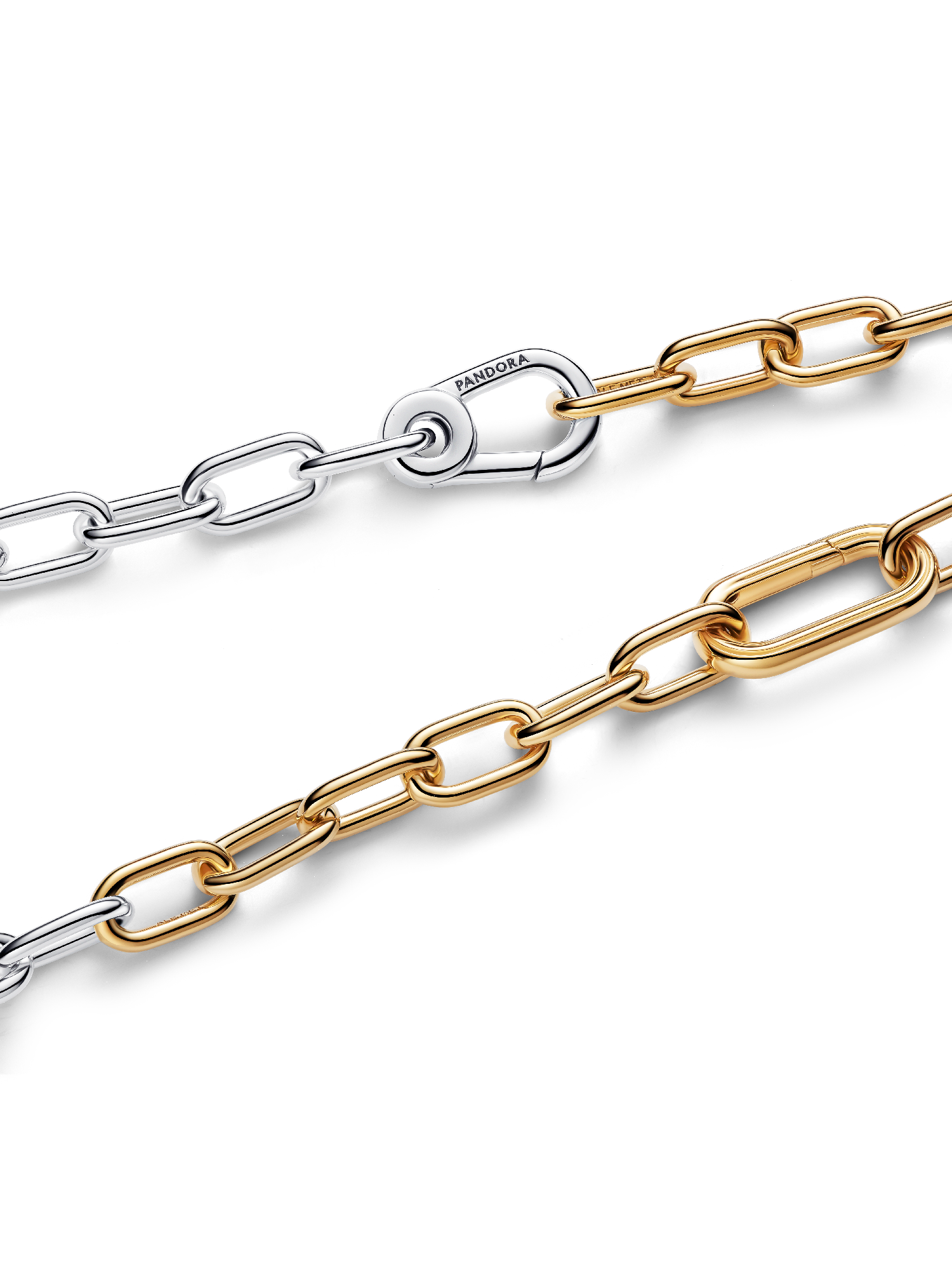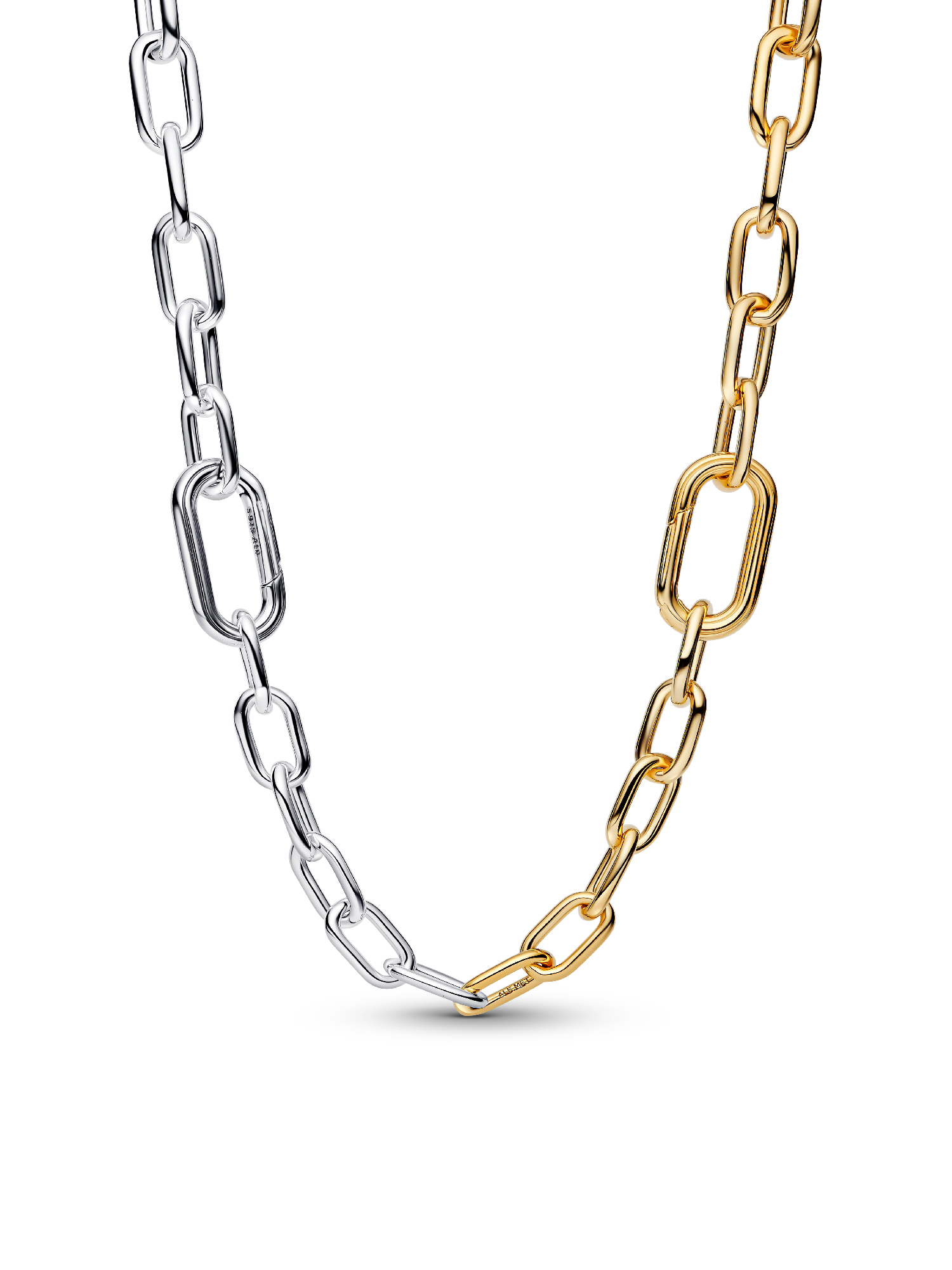 Link it up. Our mixed-metal necklace features two openable links and a carabiner clasp for effortless personalization with up to eight mini or two regular dangles.