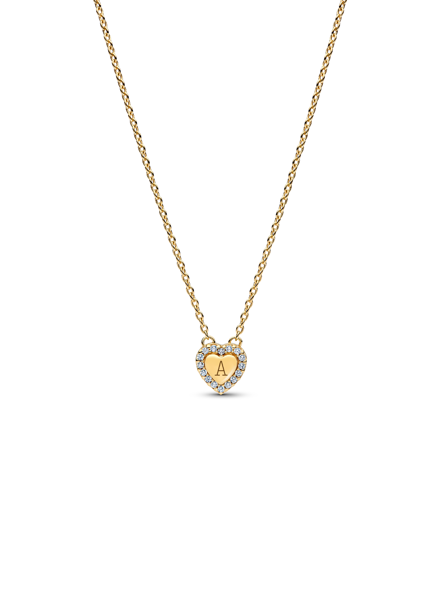 Hold love close. Our 14k gold-plated collier features a centered, engravable heart framed by clear cubic zirconia. Fixed to a delicate cable chain, it’s designed to keep names, dates or sentiments close to your heart.