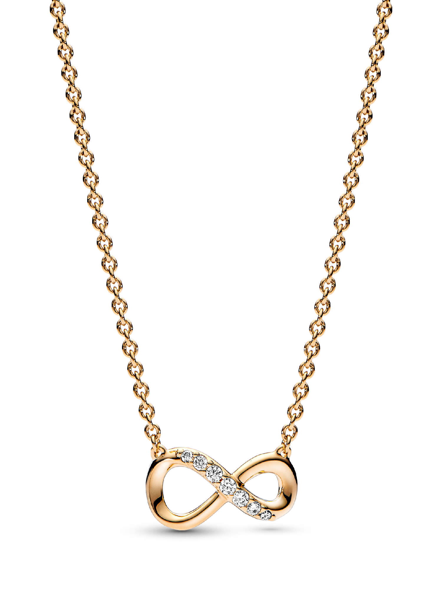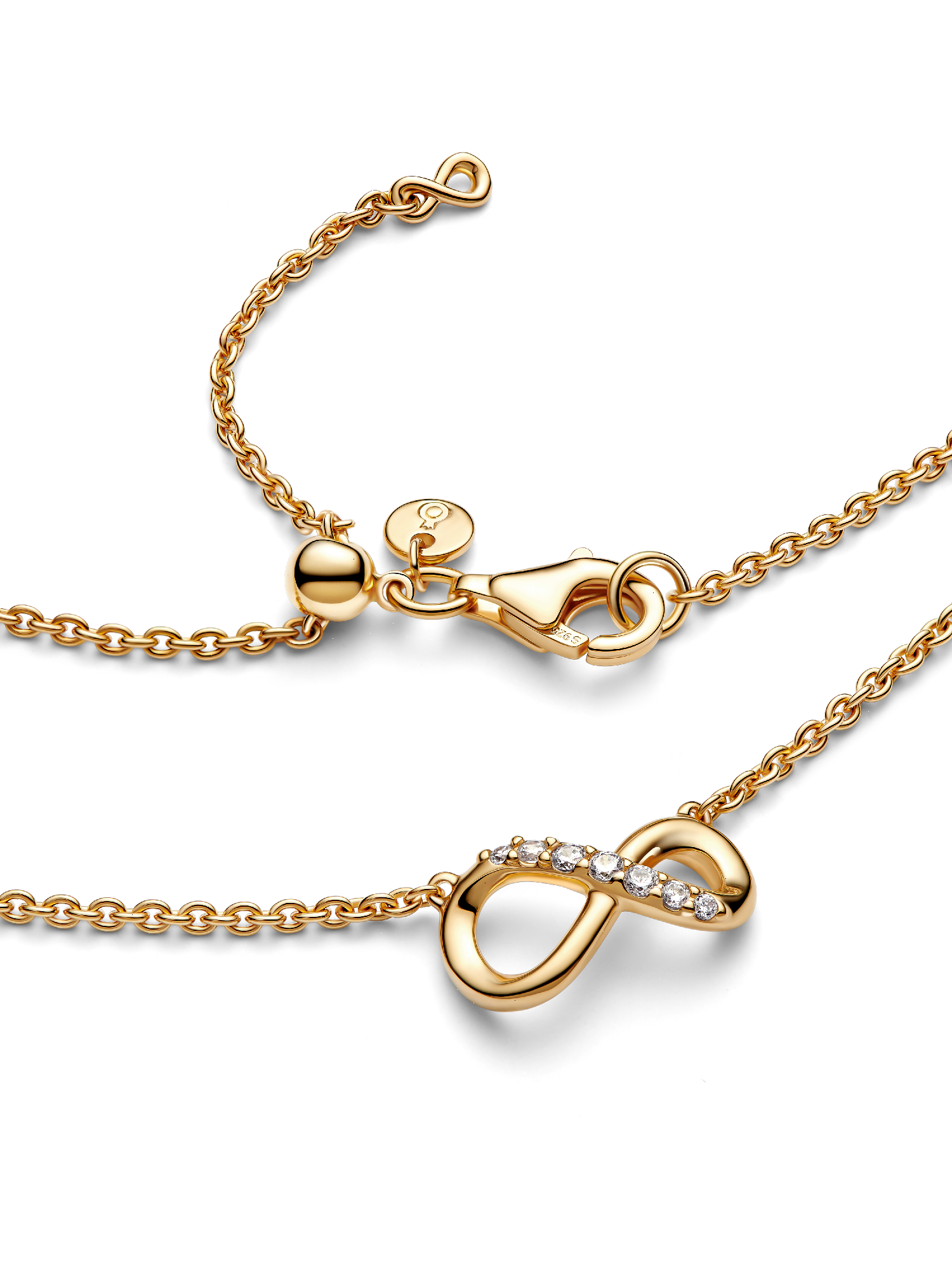 Celebrate your love to infinity and beyond with the Sparkling Infinity Collier necklace. Featuring a fixed infinity symbol pendant, this 14k gold-plated piece symbolises the power of unbreakable bonds and serves as a reminder of the love you share with those that matter most to you. The symbol features stones along the top line of the motif as well as a sliding clasp, so you can adjust your collier necklace's length. Wear it as a way of showing your appreciation for a loved one or gift it to someone close to your heart.