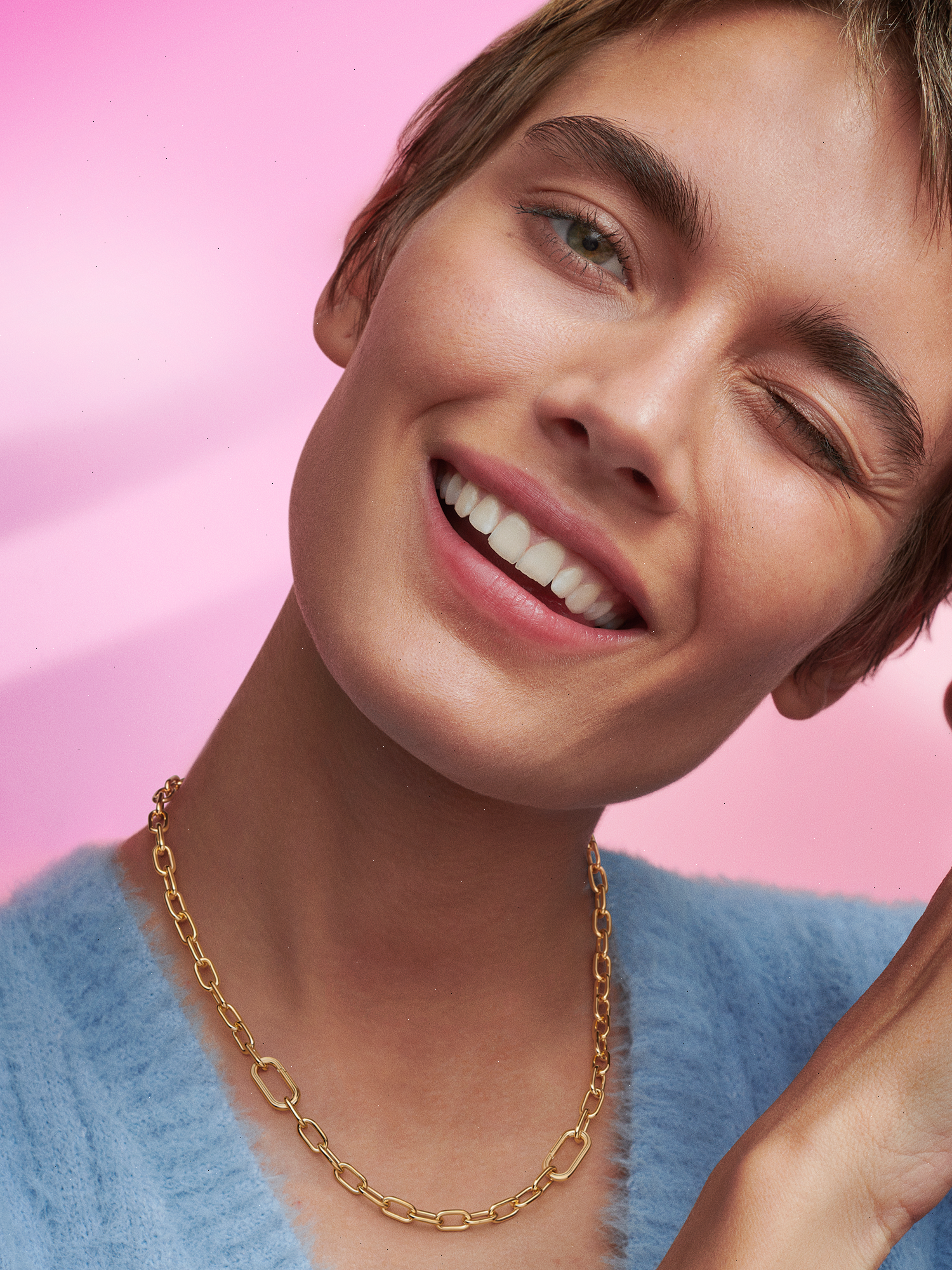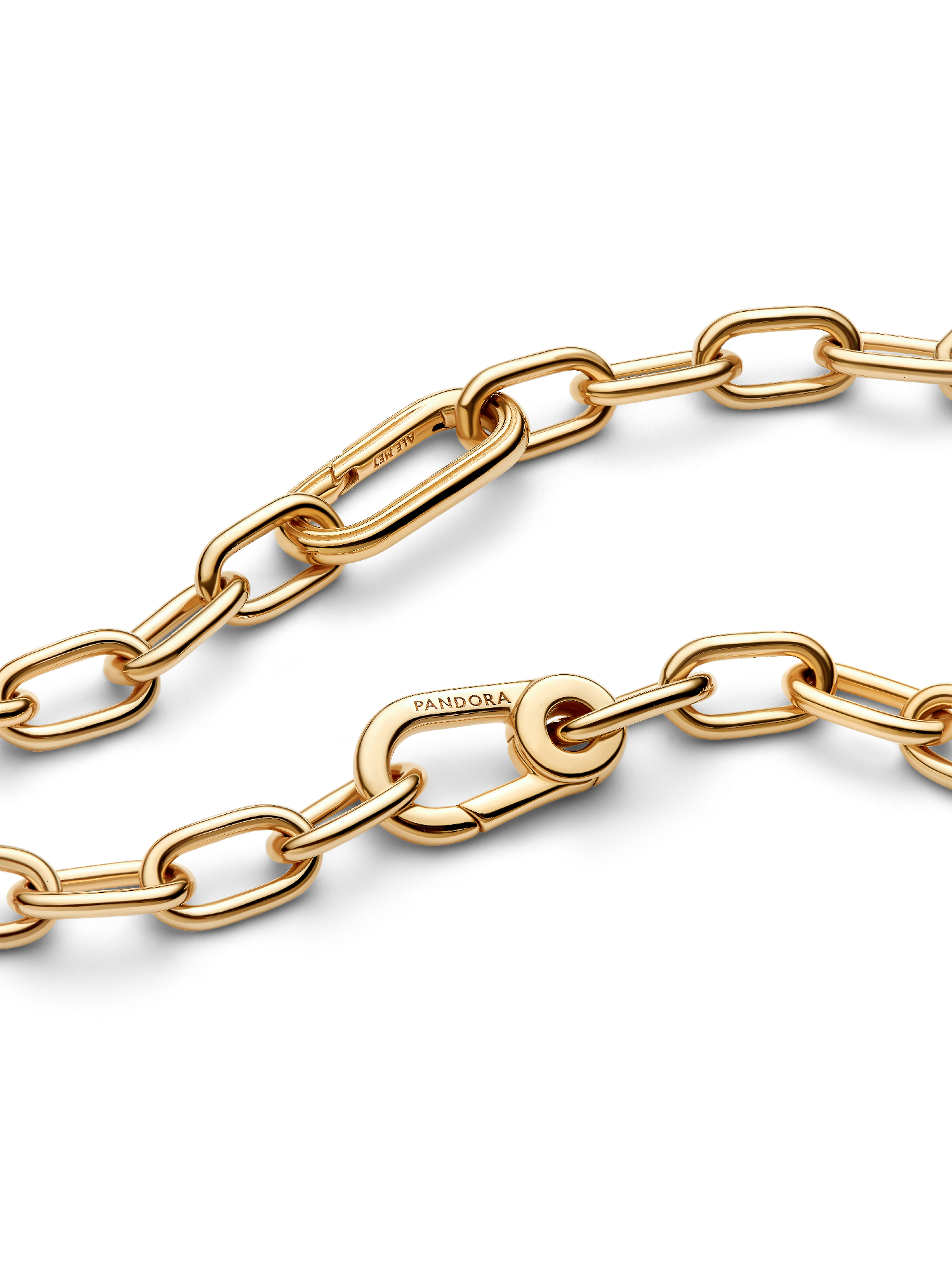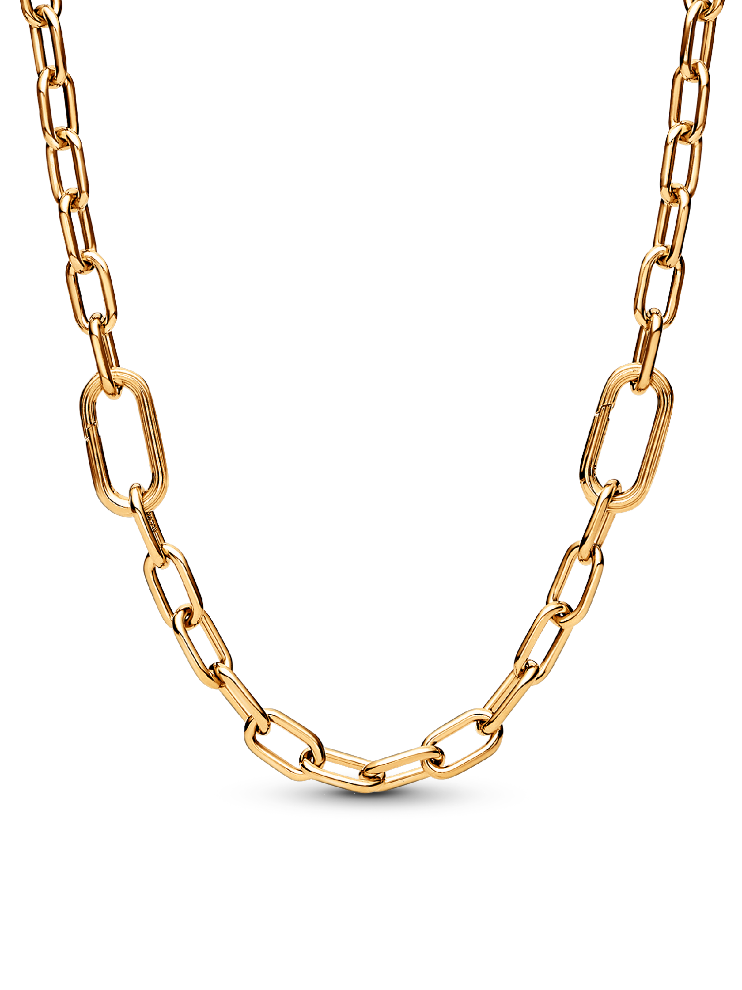 Get high-def shine when you wear the Pandora ME Small-Link Chain Necklace. With 14k gold-plated polished links and two length options, this piece has endless styling potential and will transform to suit your every mood and look. Wear it long or as a choker and pair it with your favorite medallion charms, mini dangle charms and openable links. Whatever vibes you're feeling, this piece will maximize them.