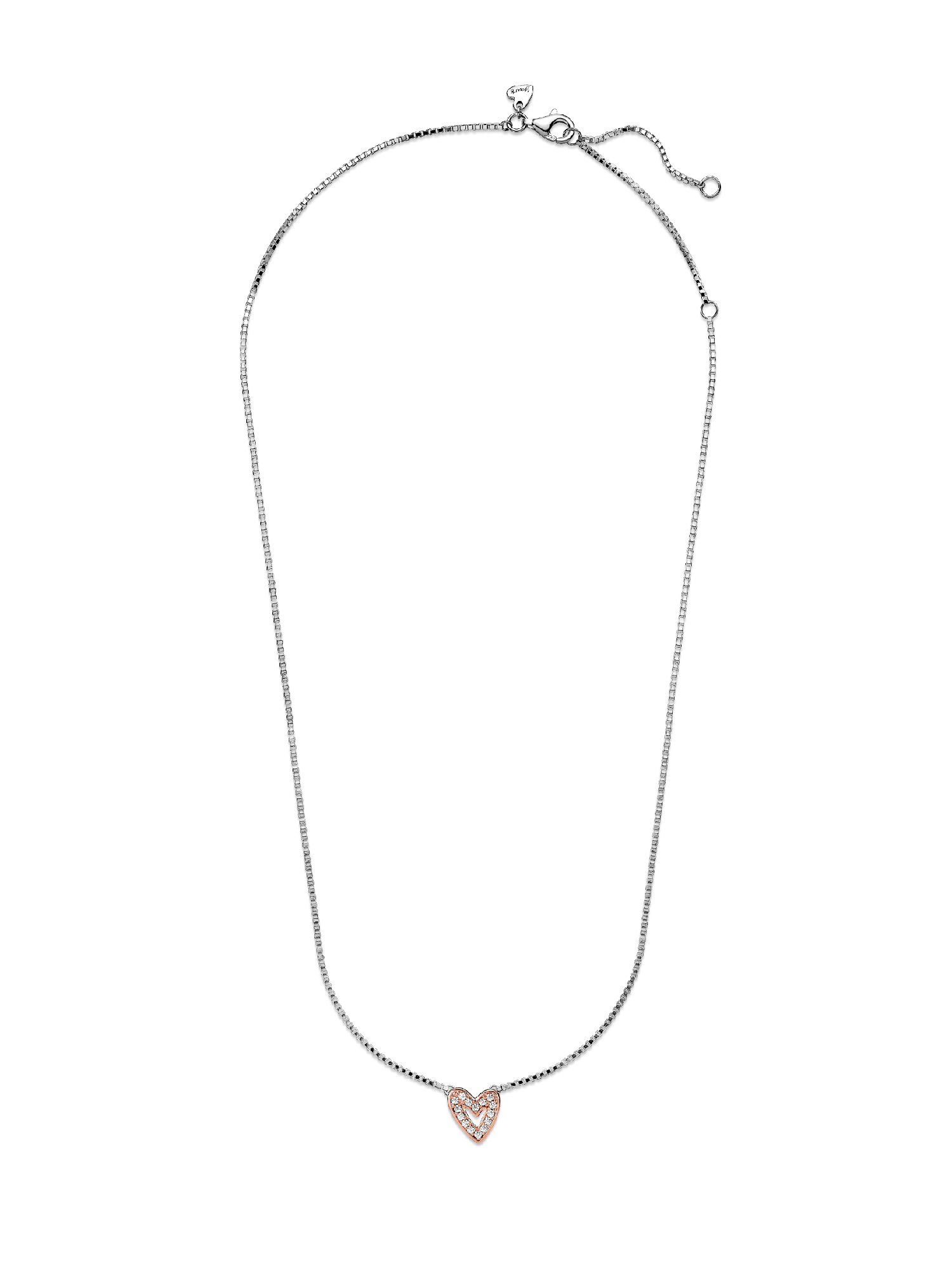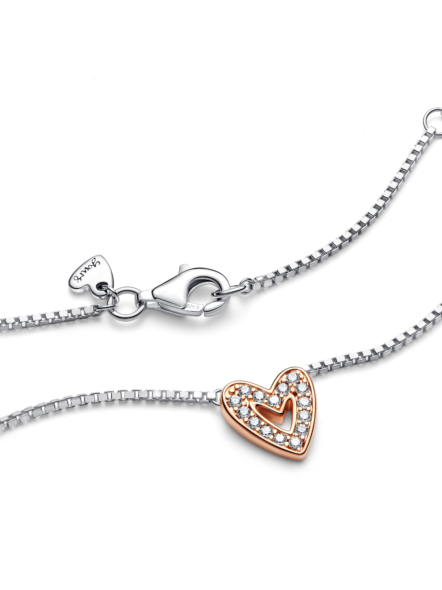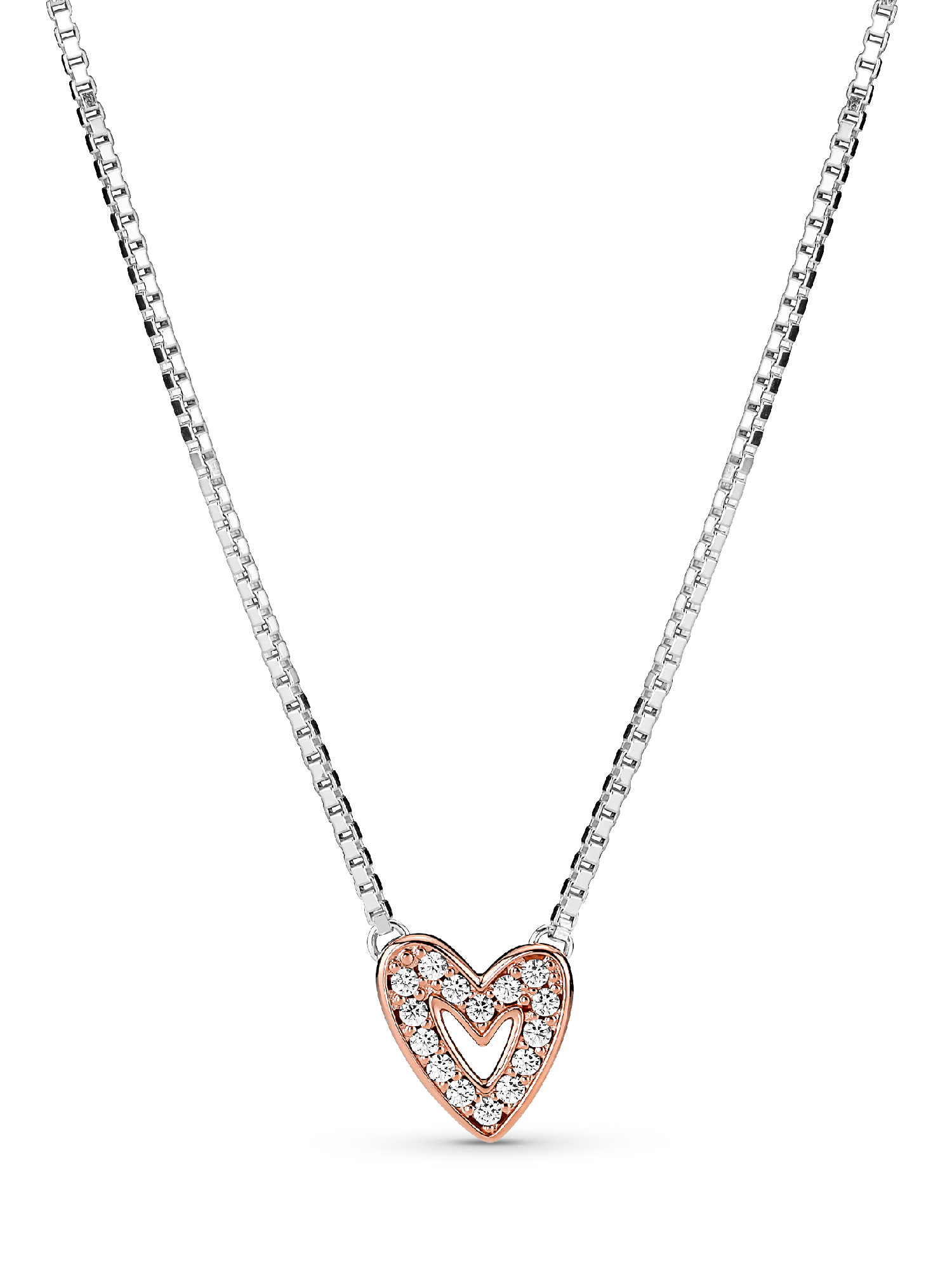 Our freehand heart symbolizes "perfectly imperfect" true love. This necklace with a heart pendant allows you to wear the freehand heart so that it really comes into its own, as a fresh take on the classic heart motif. Hand-finished in sterling silver and 14k rose gold plating, the necklace is adorned with brilliant-cut clear cubic zirconia and perfect for stacking, so wear yours in twos or threes, or mix it with your existing necklaces.