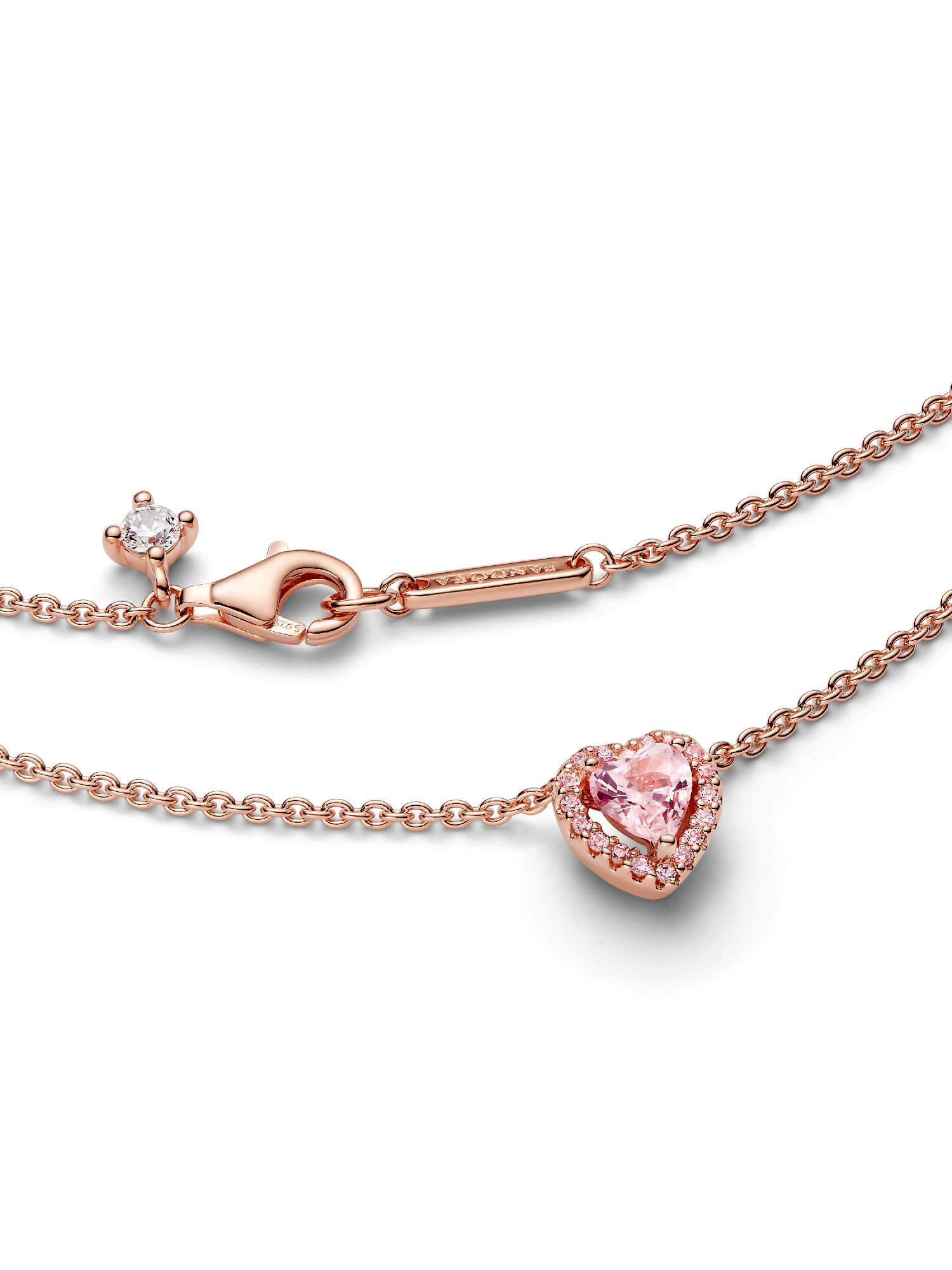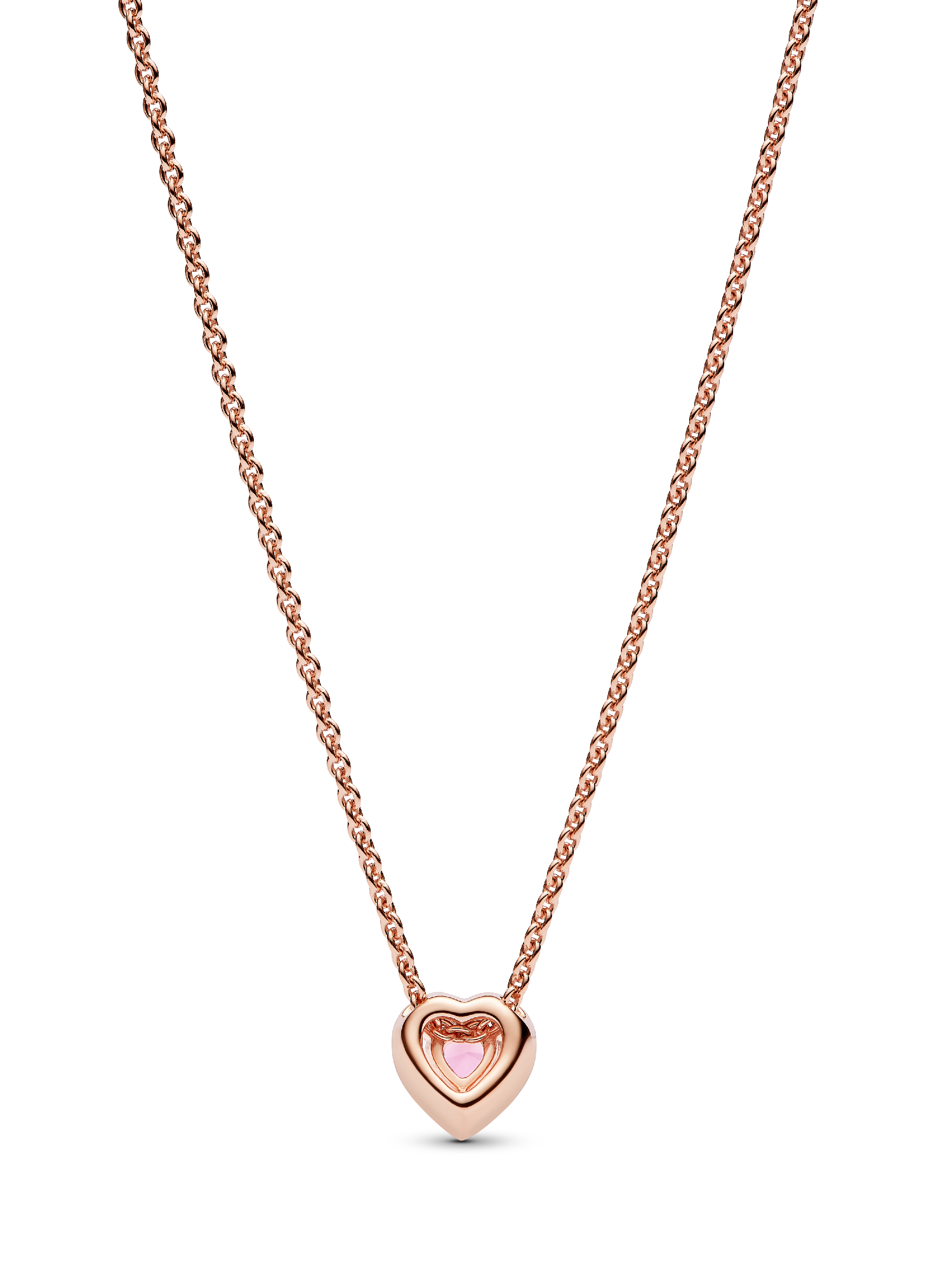 A shimmering pink heart stone, framed by sparkling pavé, sits at the center of this elegant necklace – perfect for adding a romantic and vibrant touch to any look.