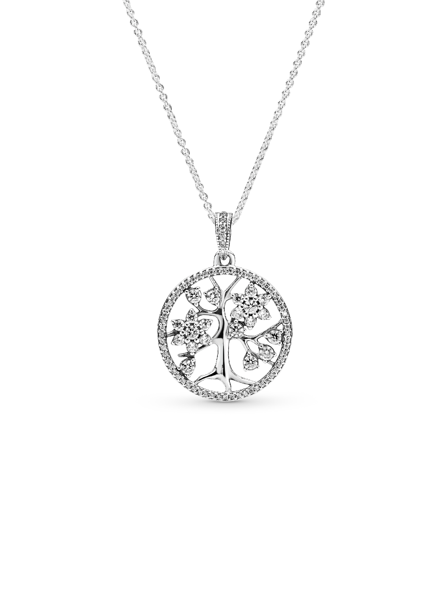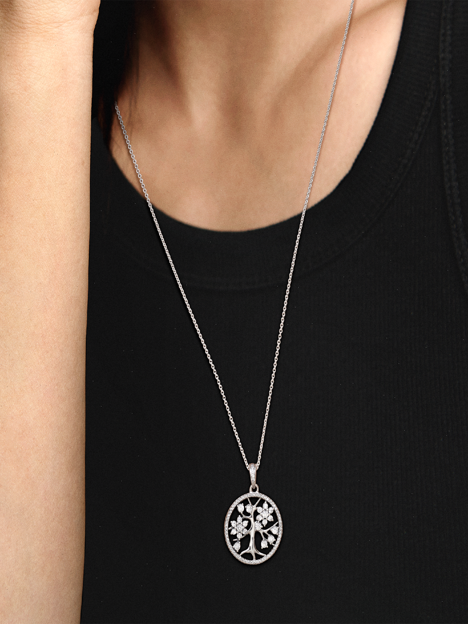 Create a look that's both personal and precious with this family tree necklace, symbolizing who you are, where you come from and the bonds your family shares. Expertly hand-finished in sterling silver, the branches are set with cubic zirconia for subtle sparkle and the slider clasp can be adjusted for the perfect fit and to complement whatever you're wearing. Wear it as a reminder of roots that run deep or gift it to someone you love.