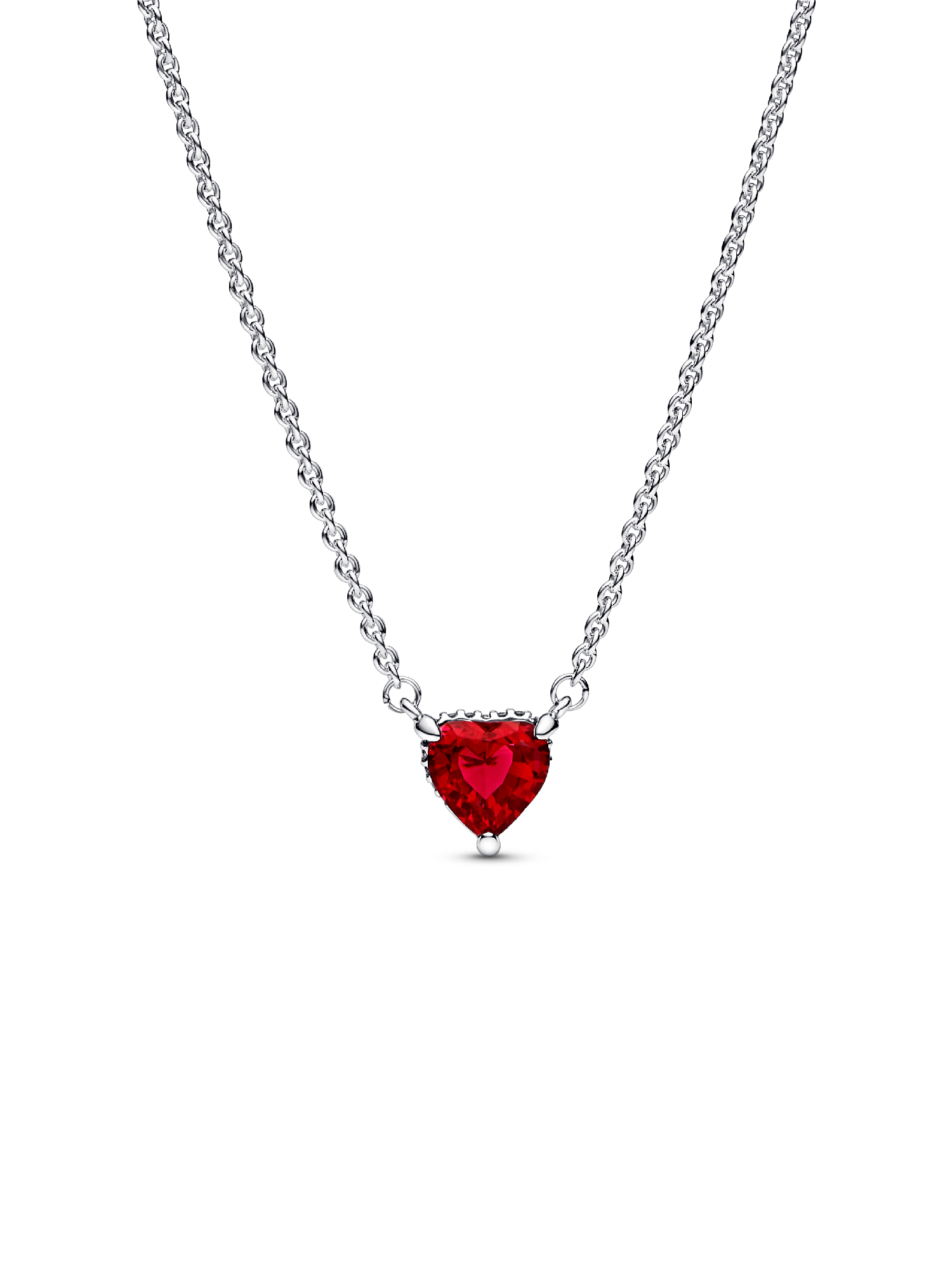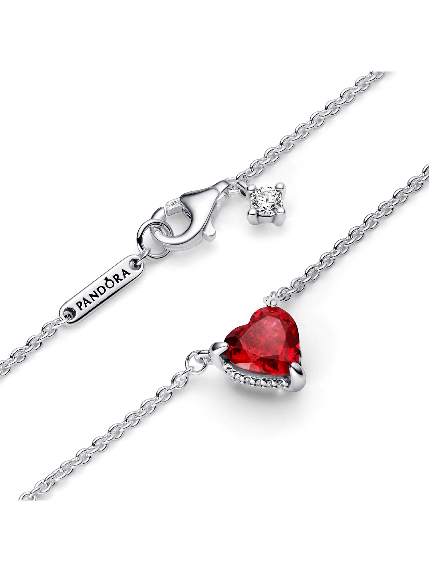 Give a gift from the heart with our Sparkling Heart Halo Pendant Collier Necklace. This necklace features a heart-shaped red man-made crystal pendant that's fixed to a sterling silver chain adjustable to two lengths for versatile styling. The pendant is set in a basket hand-finished with a row of pavé along its sides, radiating love from every angle. A Pandora logo bar and small round cubic zirconia stone add extra sparkle to the closure.