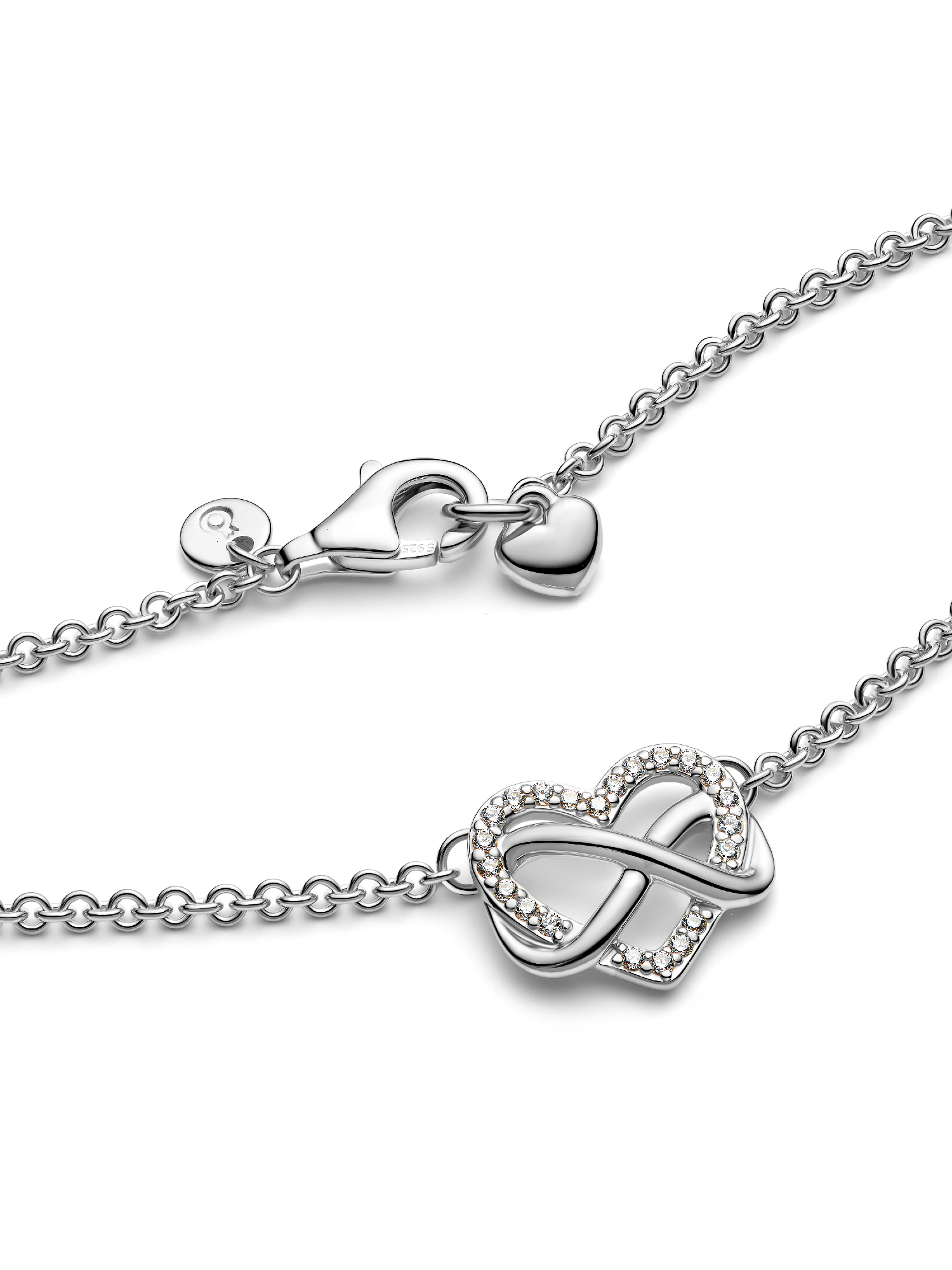 Celebrate your love to infinity and beyond with the Sparkling Infinity Heart Collier Necklace. Featuring a fixed infinity symbol and heart pendant, this piece symbolizes the power of unbreakable bonds and serves as a reminder of the love you share with those that matter most to you. The openwork heart features stones along the edge of the motif and an asymmetrical infinity symbol entwining around the heart, and is adjustable to three different lengths. Wear it to show your appreciation for a loved one or gift it to someone close to your heart.