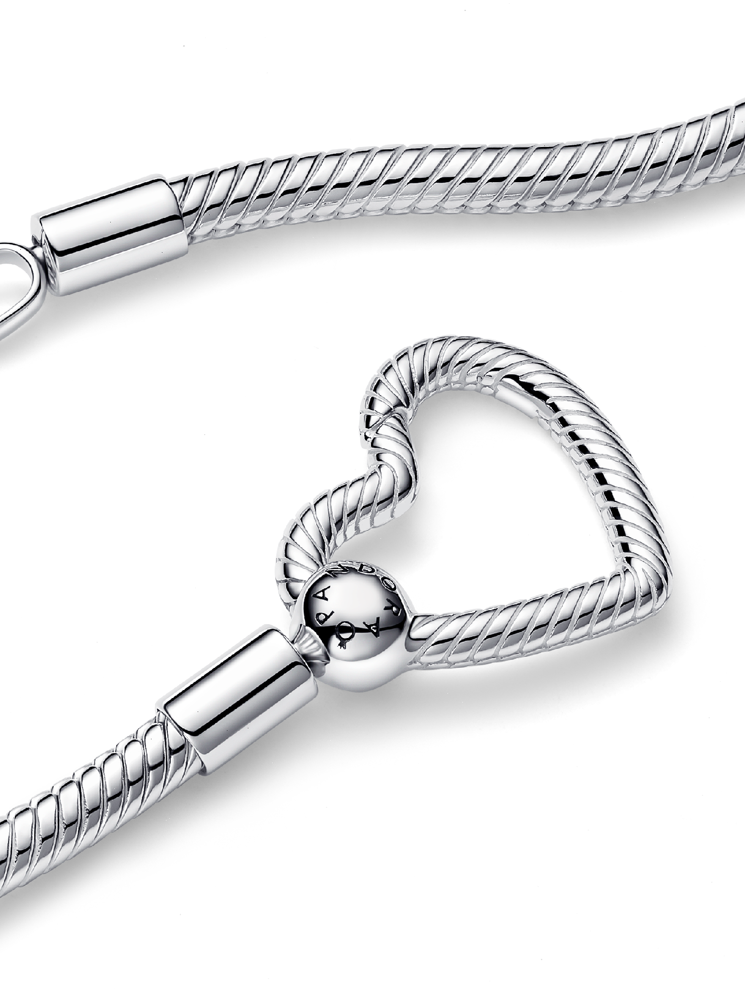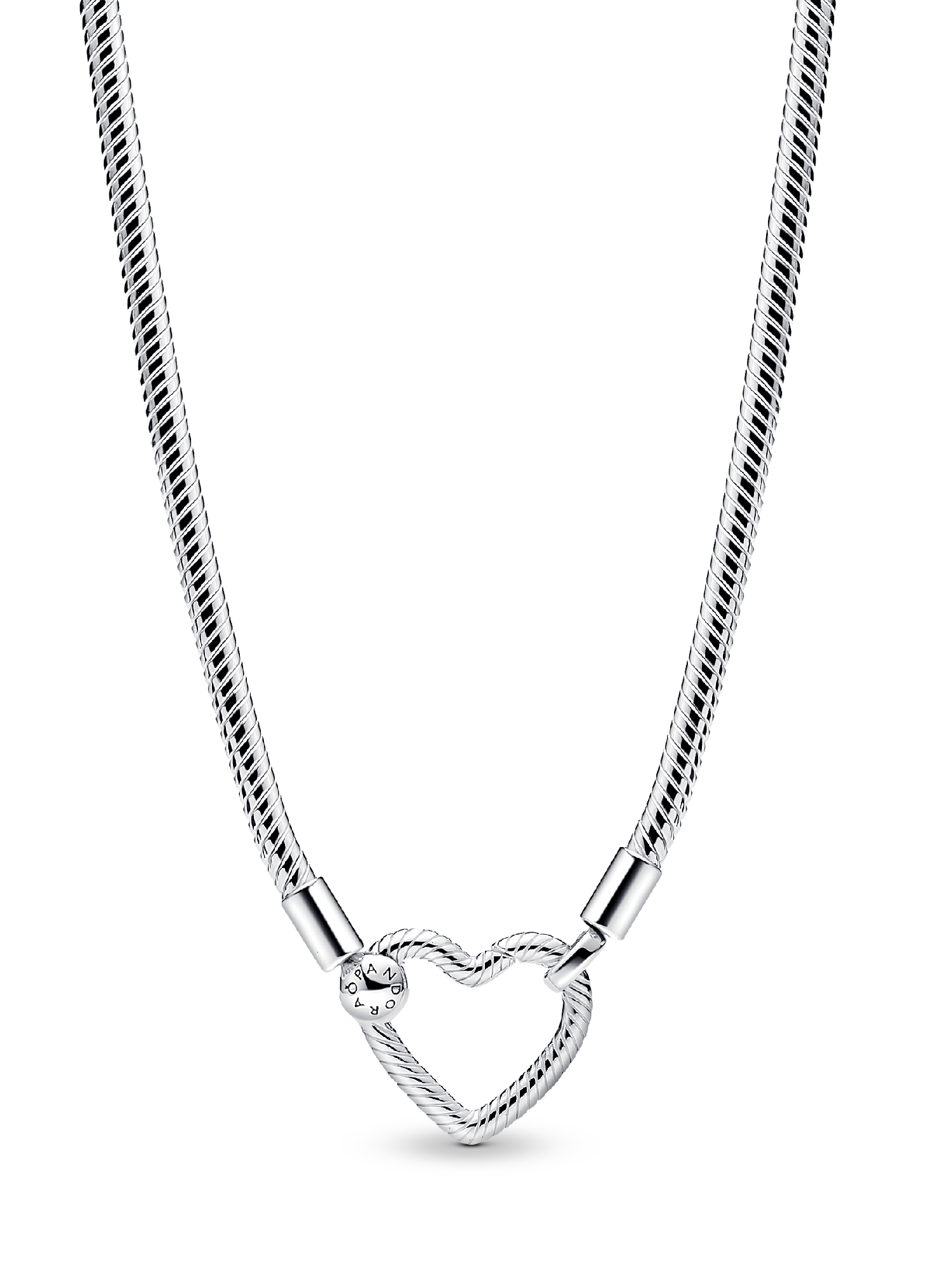 Wear more of what you love with this Heart Closure Snake Chain Necklace. Hand-finished with sterling silver, this fresh take on a much-loved Pandora design features our iconic snake chain and a heart-shaped closure. The closure can hold up to two dangles or pendants and spins for a touch of movement. Style this iconic necklace with your favorite charms and create your own personalized look.