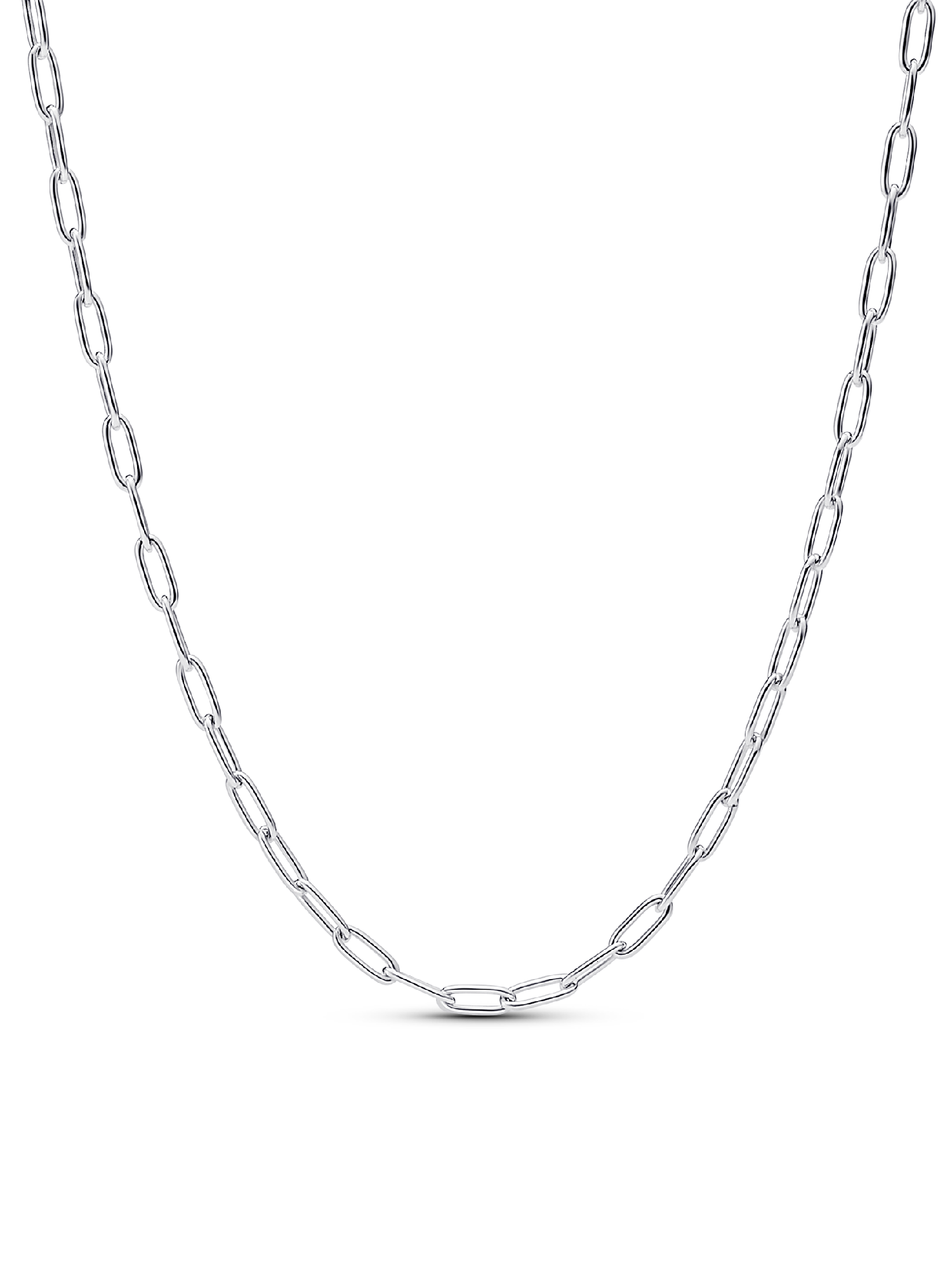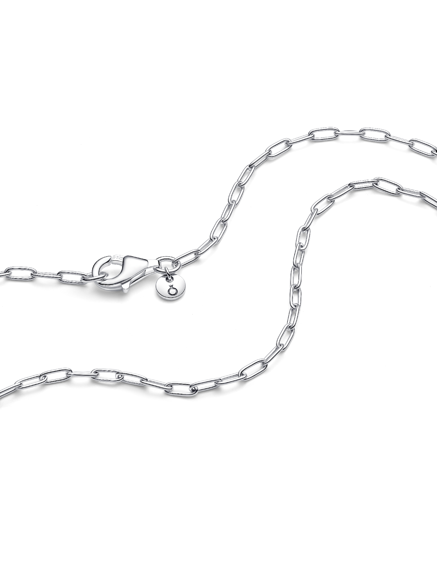 Your customized jewelry look starts here. This versatile chain necklace is designed with elongated links and an extra long length, meaning you have even more space for playful and powerful styling with different combinations of charms. Once you've found a length you like, personalize your chain with Pandora ME medallion charms, mini dangle charms or Pandora Moments charms. The necklace holds 1 to 3 Pandora Moments charms and dangles, or 1 to 3 Pandora ME medallions and dangles.
