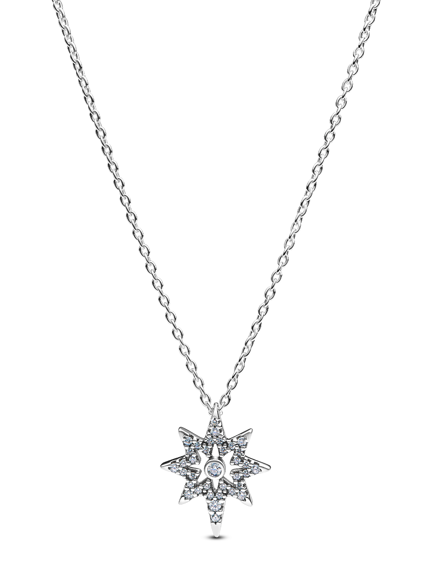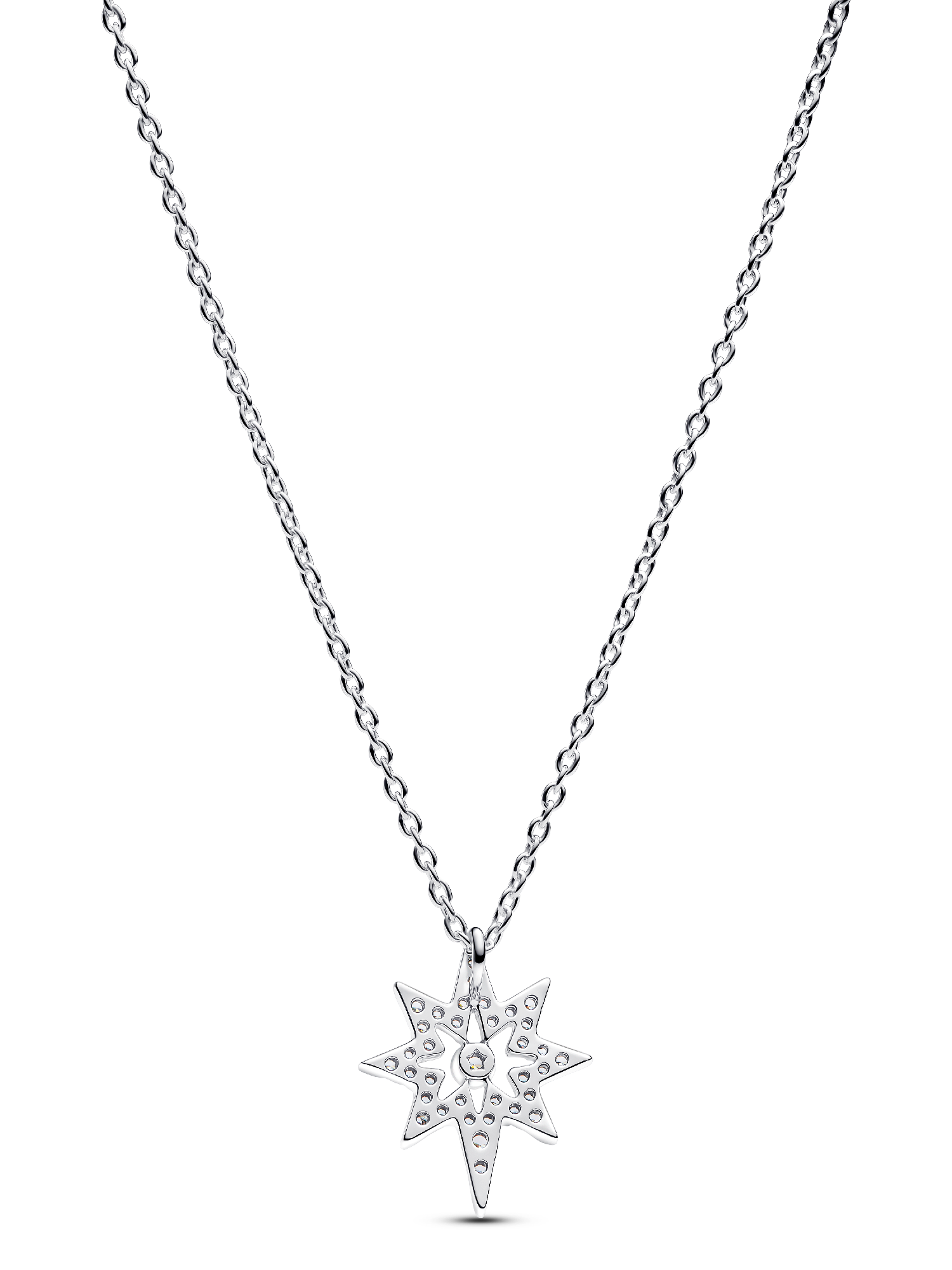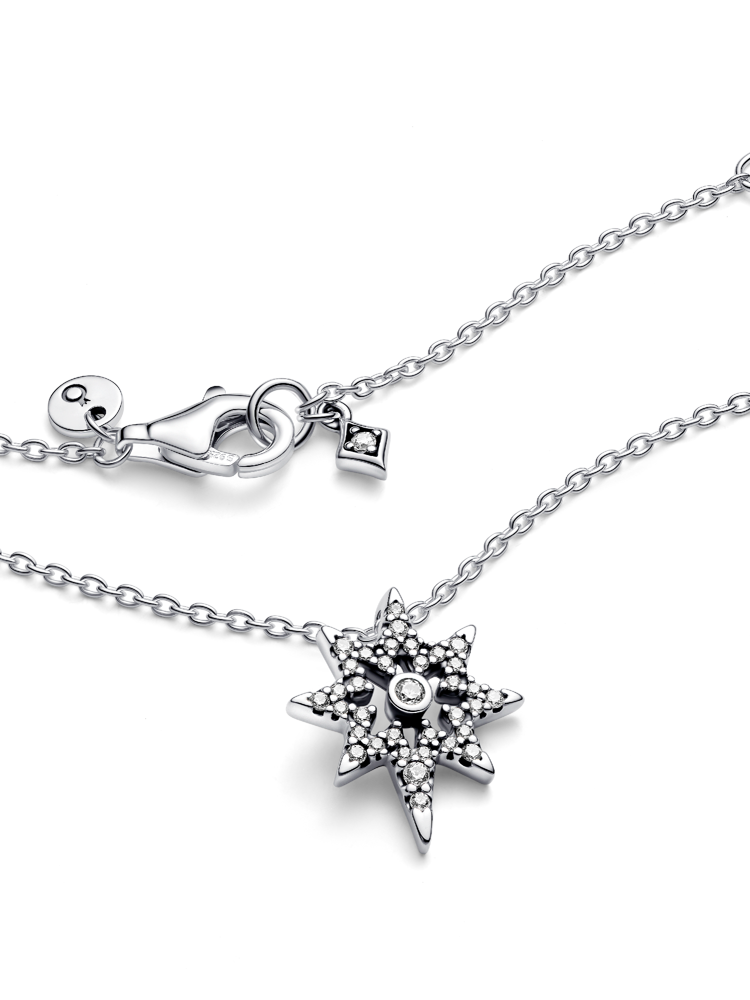 Light up your look with our North Star Pendant Necklace in sterling silver. Featuring the symbolic design of the Polaris shining with clear cubic zirconia from a classic cable chain, this necklace adds a celestial glow to your look with a layer of meaningful symbolism. The chain can be adjusted three different lengths to suit your style. Serving as a compass in uncertain times, the North Star guides us to brighter tomorrows and represents our hopes and dreams. Wear to add sparkle to any festive look or gift it to the shining star of your life.