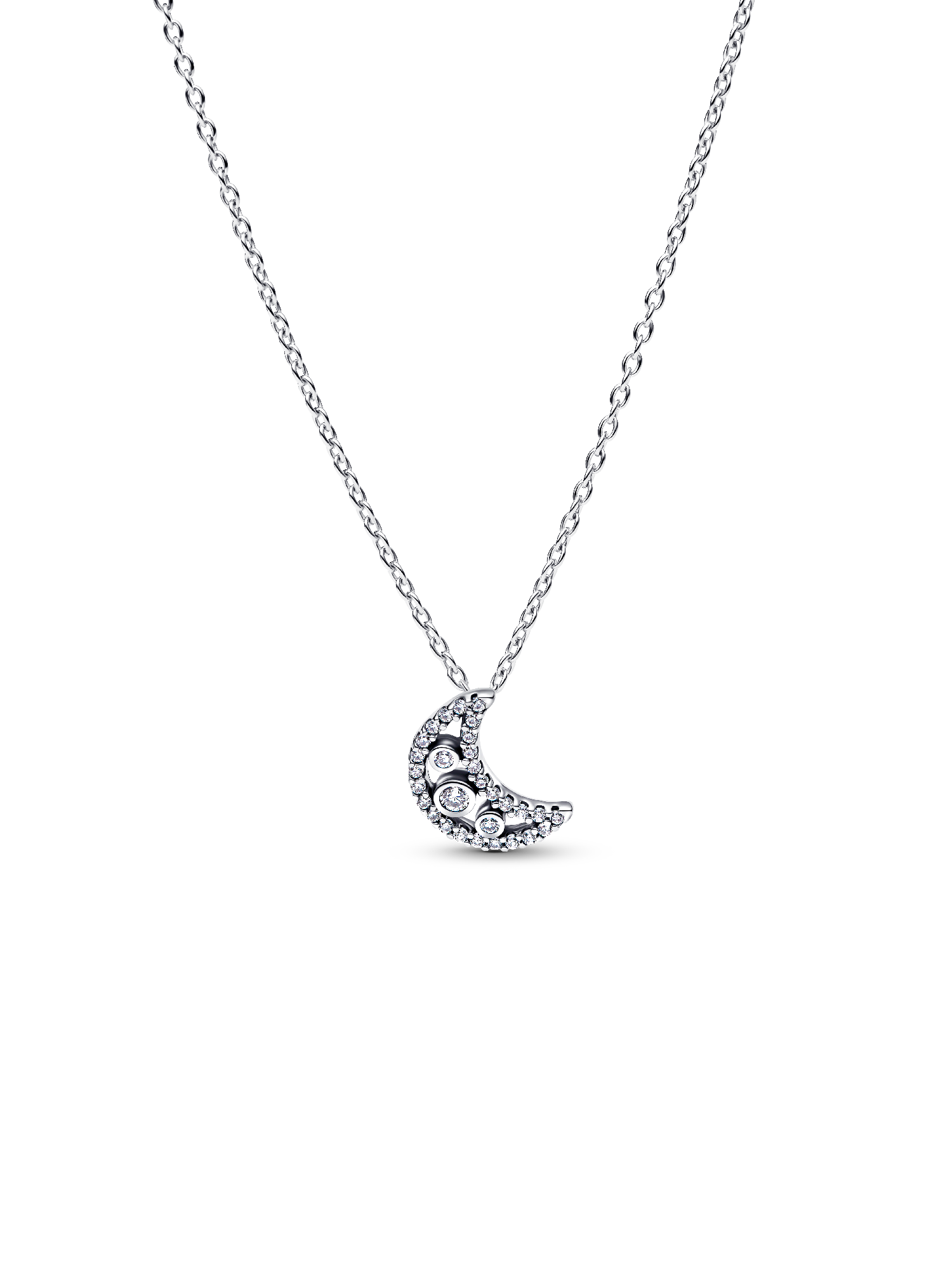 Wear the wonder of the night sky. This sterling silver necklace features an openwork crescent moon, set with twinkling cubic zirconia. Take a closer look and you'll notice a mini version also hangs from the clasp.