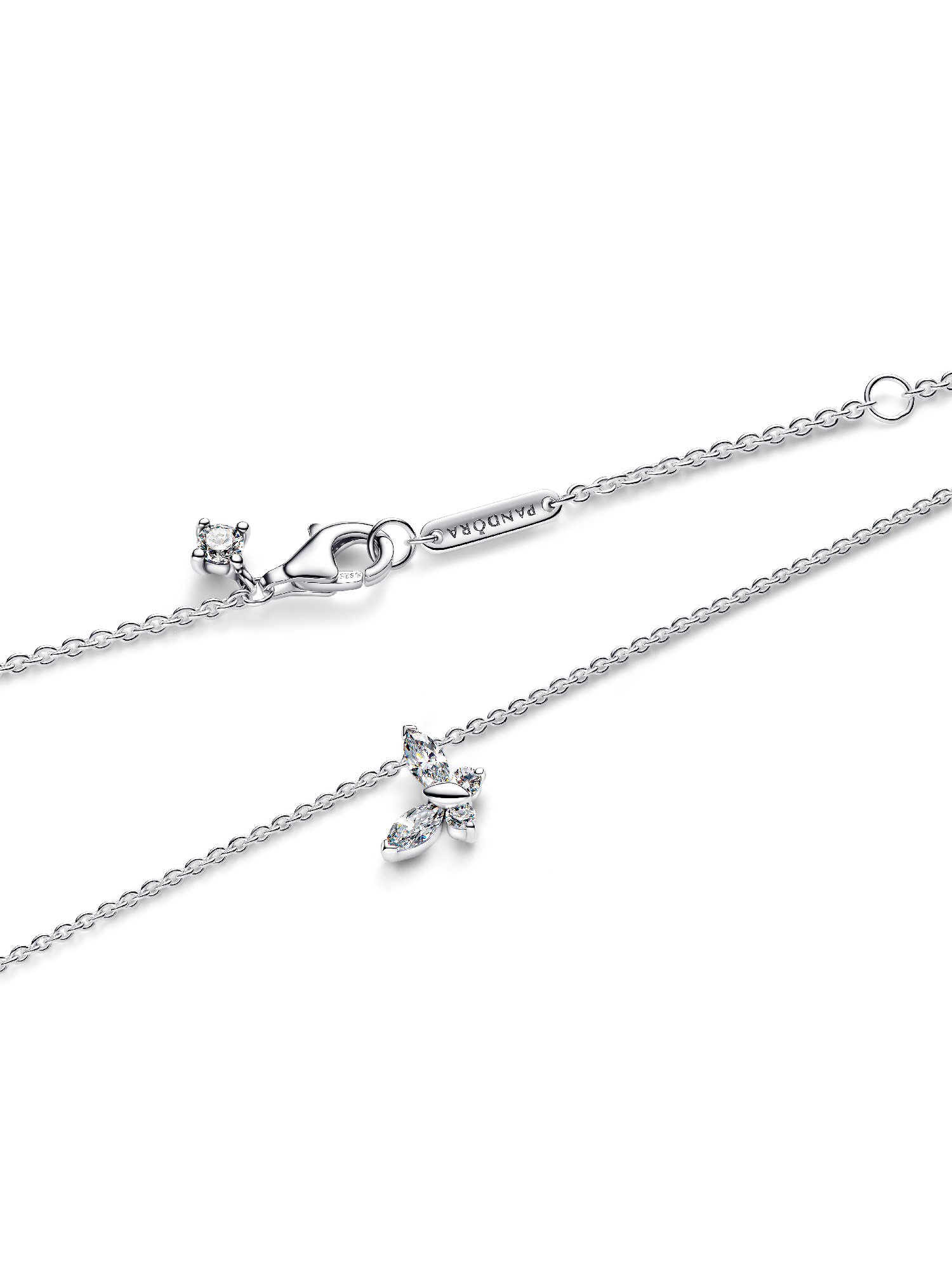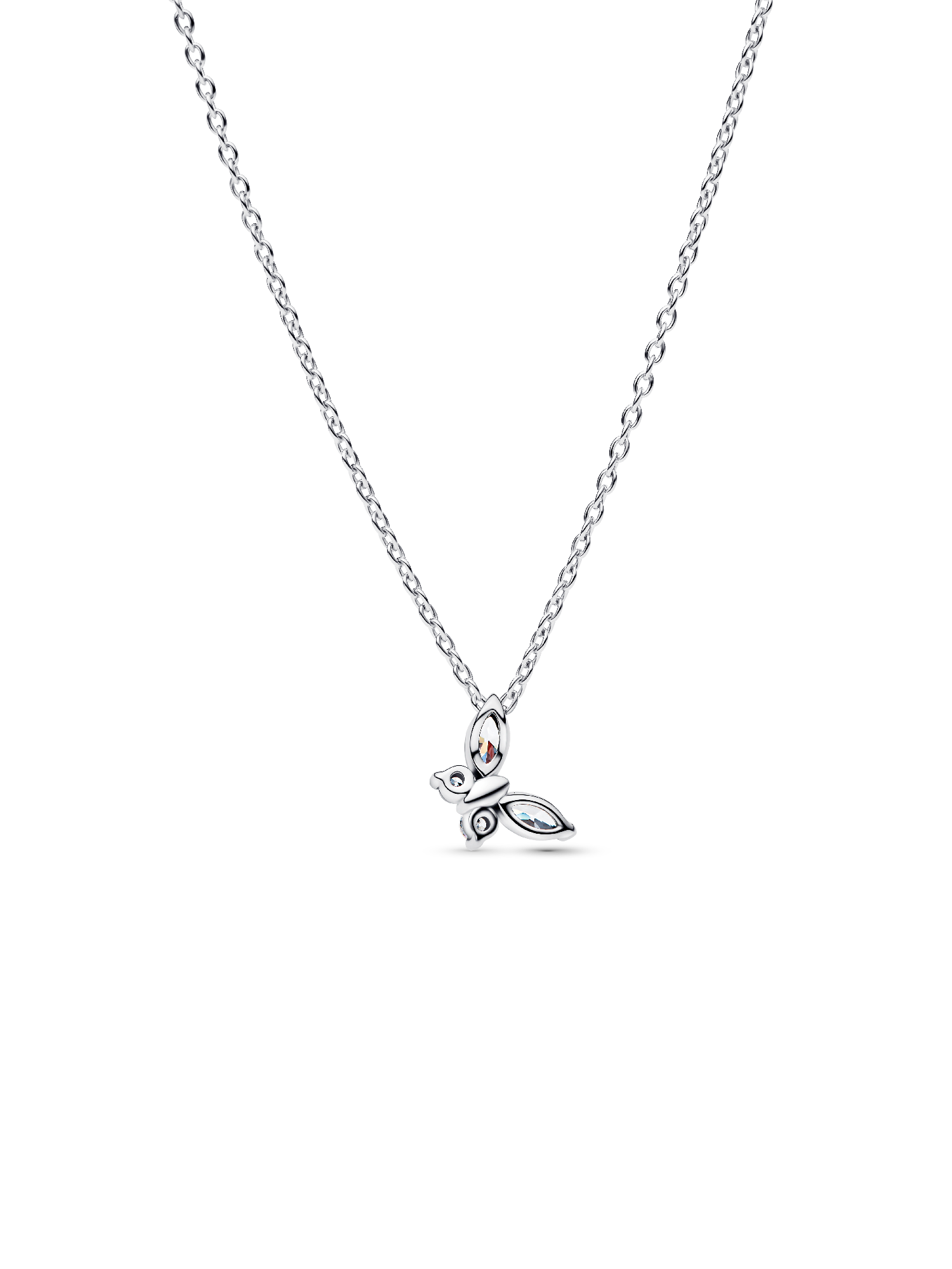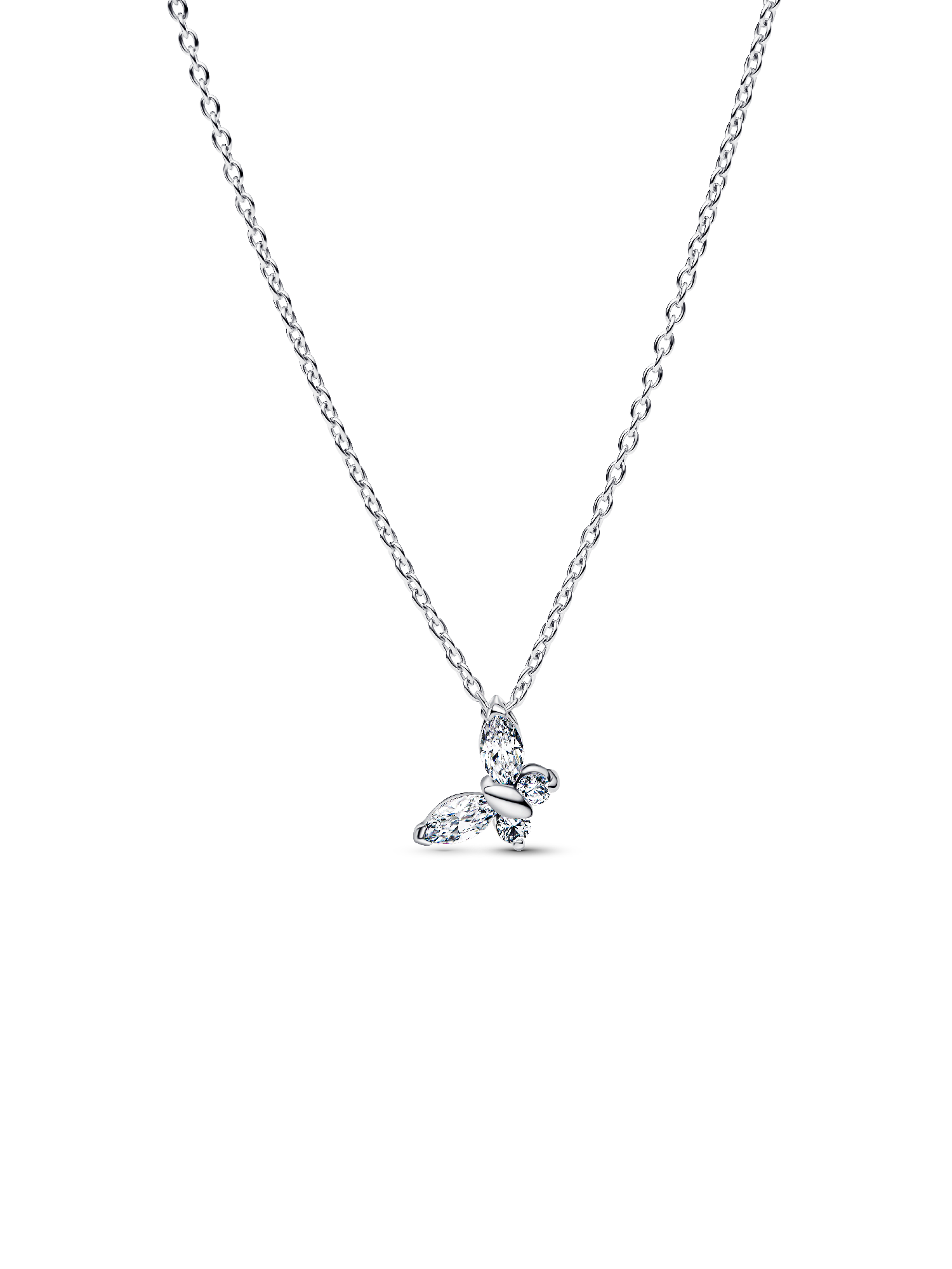 Spread your wings and transform your look with this sterling silver necklace. Set with clear marquise-cut and round brilliant-cut man-made crystals, a butterfly gracefully dangles from its chain.