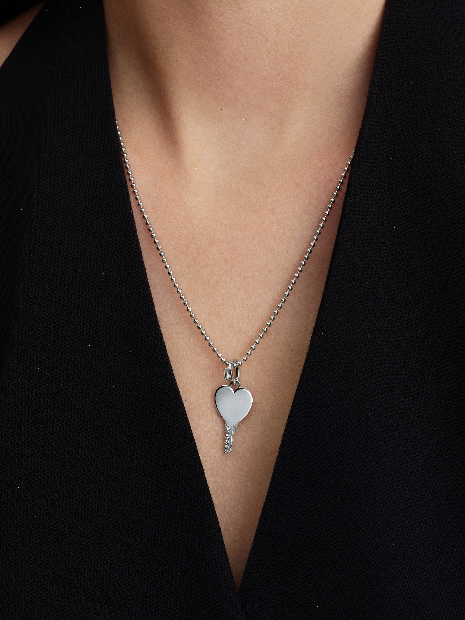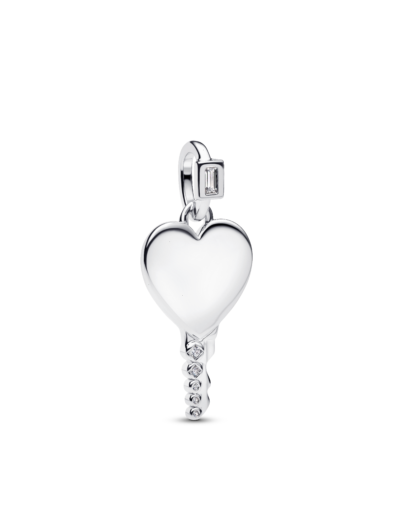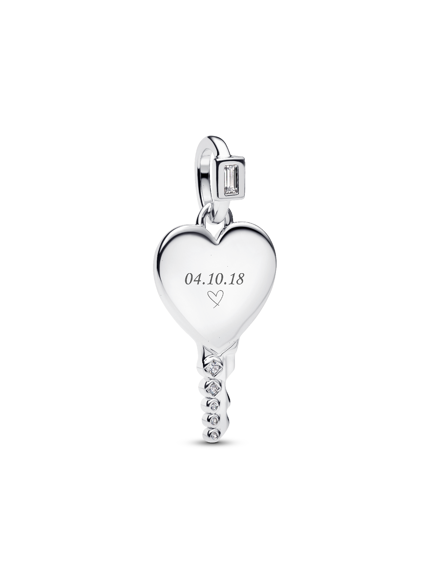 Unlock your story. This sterling silver key pendant features an engravable heart-shaped head, a detailed blade with sparkling cubic zirconia, and a stone-accented bail.
