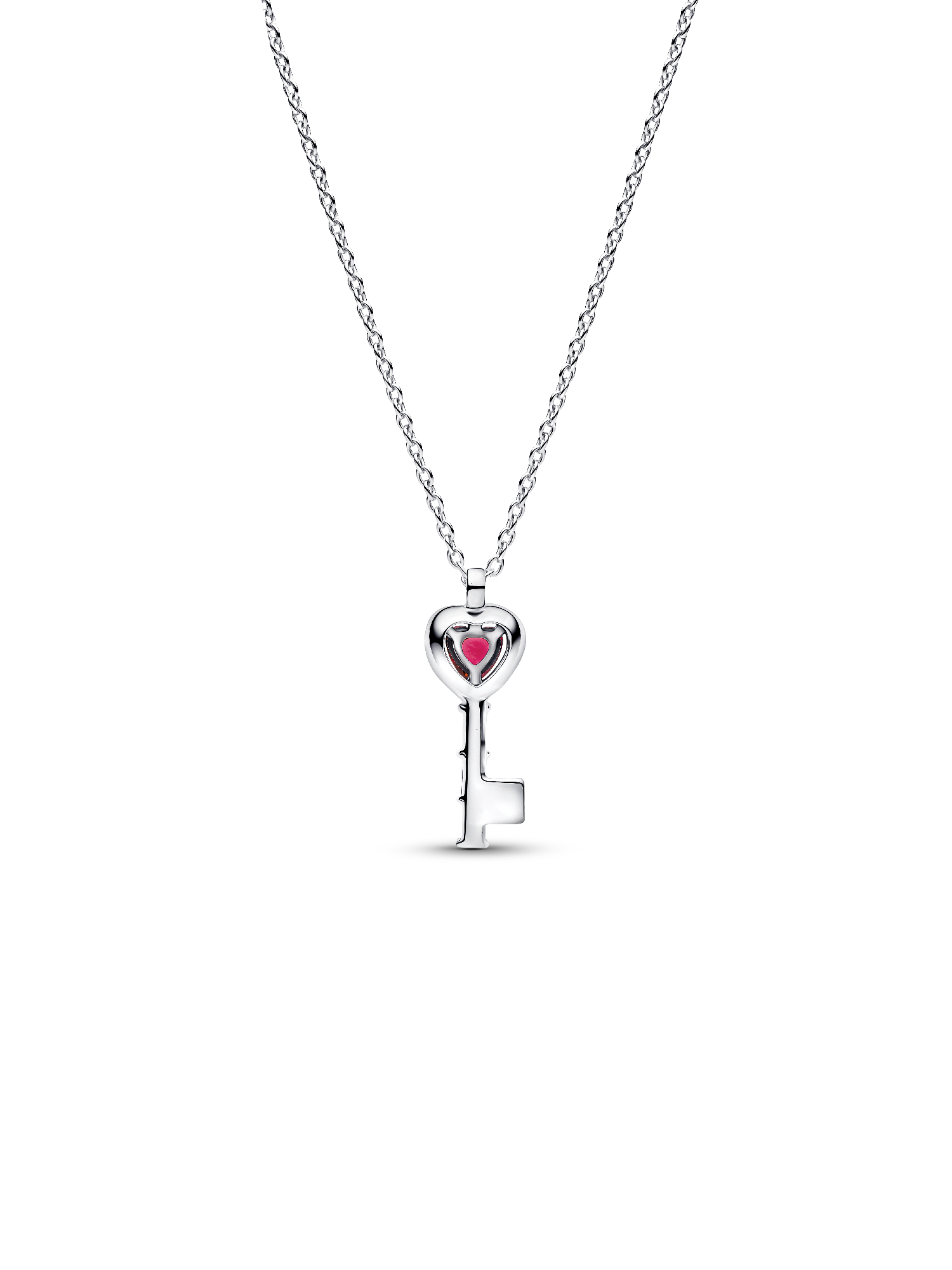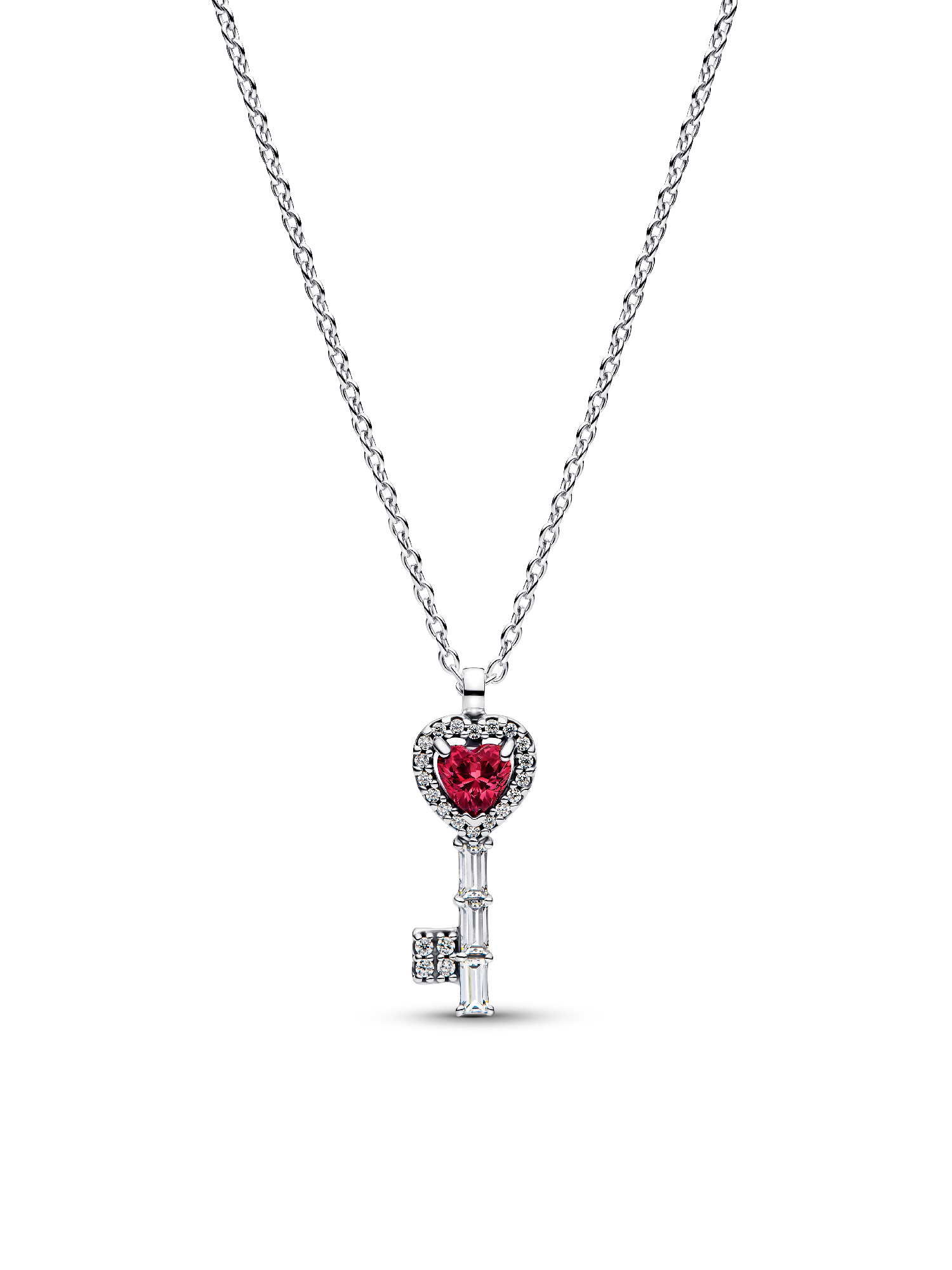 Unlock sparkle. Our sterling silver heart key pendant features a vibrant red crystal surrounded by clear cubic zirconia accents. Wear it at three different lengths to complement any look.