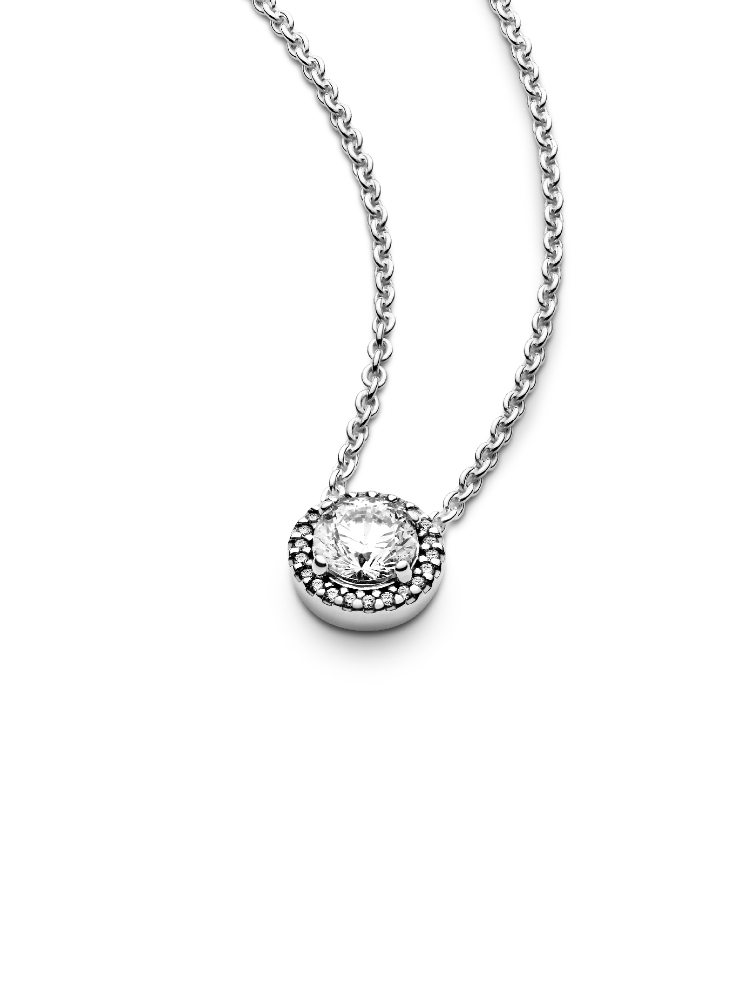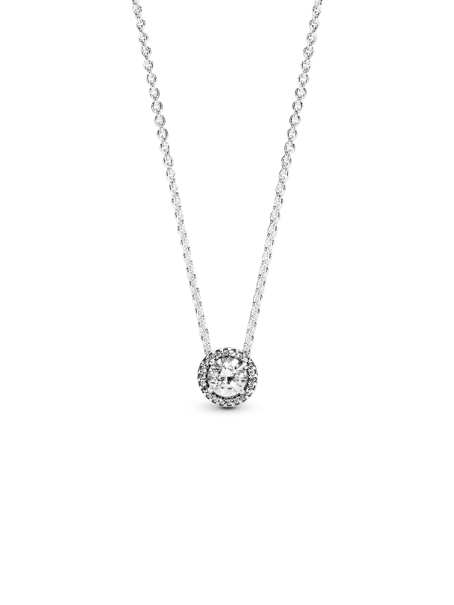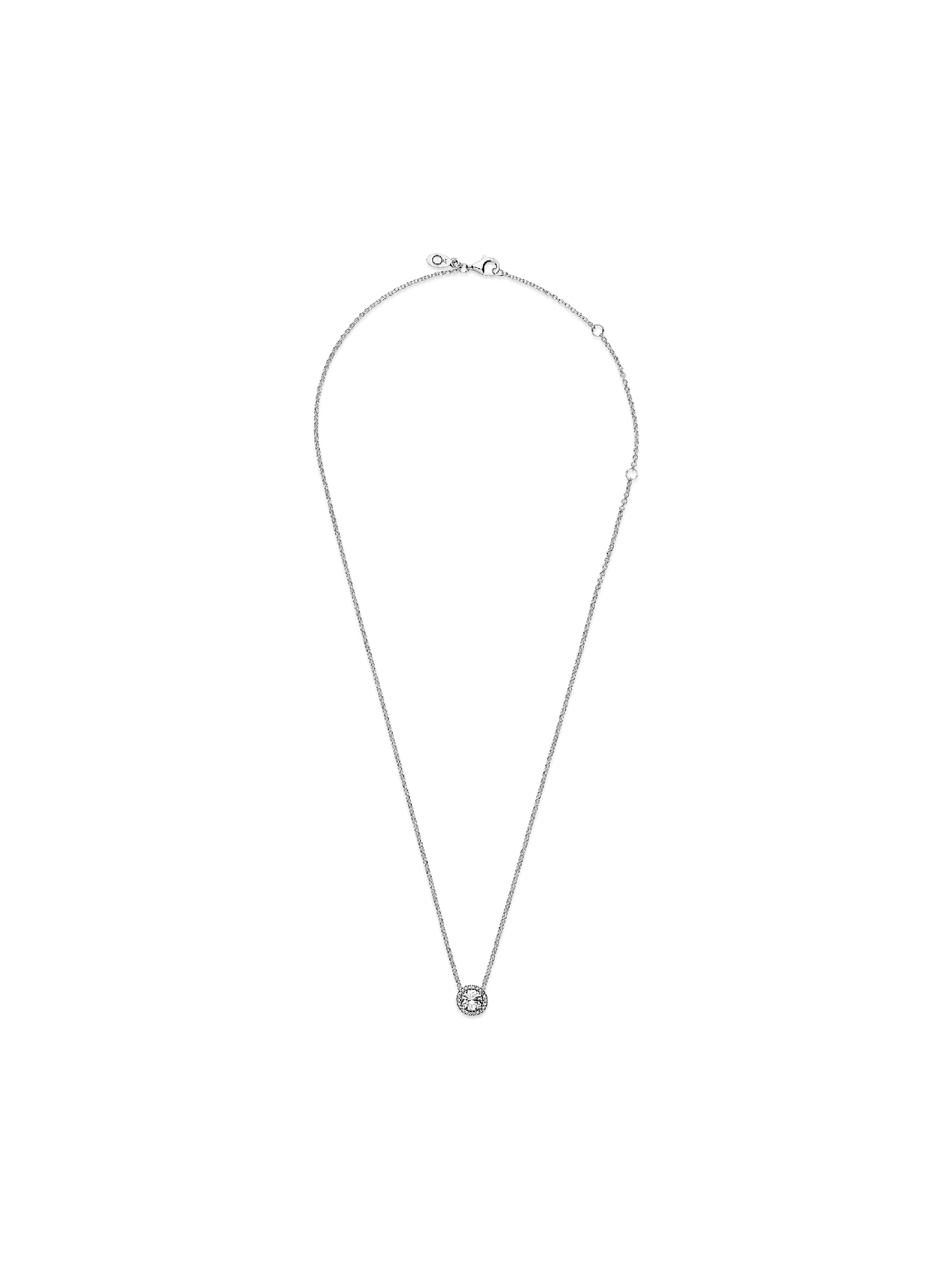 Chic and sophisticated, this sparkling Pandora necklace is inspired by the glamor of bygone eras. This opulent piece is crafted in sterling silver and features a large brilliant-cut cubic zirconia pendant which is framed by shimmering stones. Effortlessly elegant, it adjusts to three different lengths and pairs beautifully with day and evening ensembles. Combined with the matching Pandora stud earrings, it makes the perfect jewelry gift.