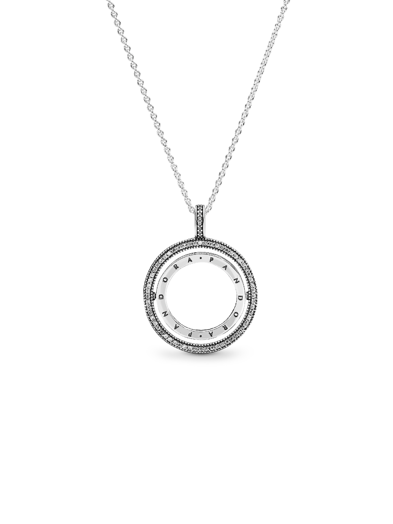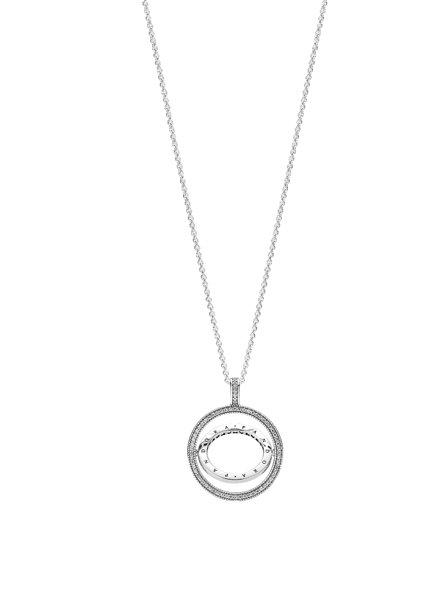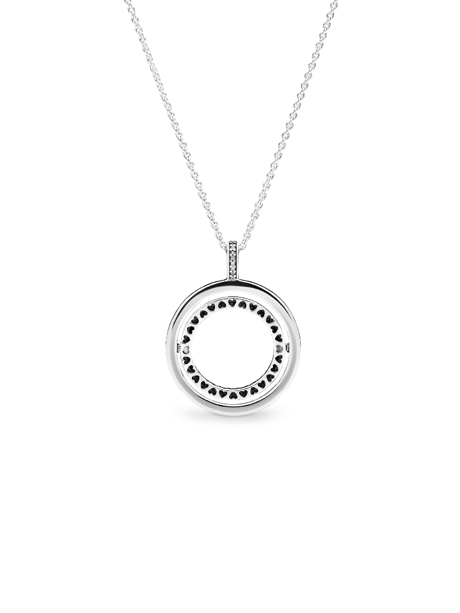 Get playful with our reversible sterling silver pendant necklace. Detailed with our logo on one side and cut-out hearts on the other, it's designed with a spinning center that lets you switch from one look to another in an instant. Adjust the slider clasp for the perfect fit and try pairing with other styles to create a layered look that's uniquely you.