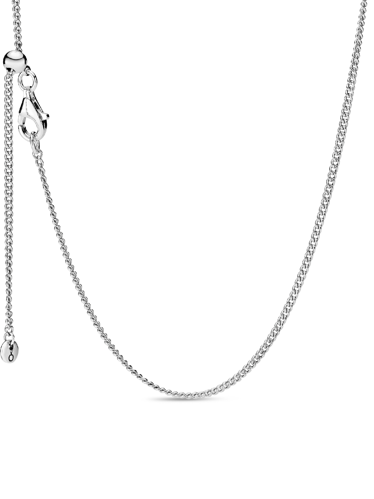 No jewelry collection is complete without a simple versatile necklace that can be worn by itself or accessorized with your favorite pendants. One of the most essential pieces for any wardrobe, our sterling silver necklace features a sliding clasp, flat interlocking chain links and a dangling curb chain. Wear the slider necklace on its own or layer it for a fashion forward look and adjust to suit your desired length.