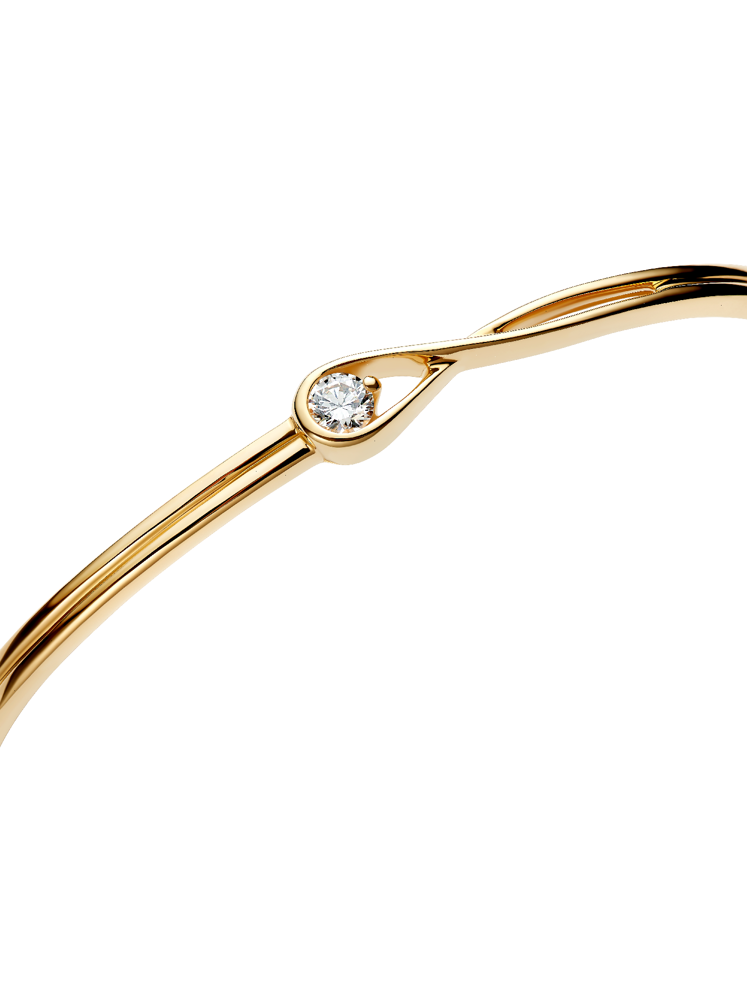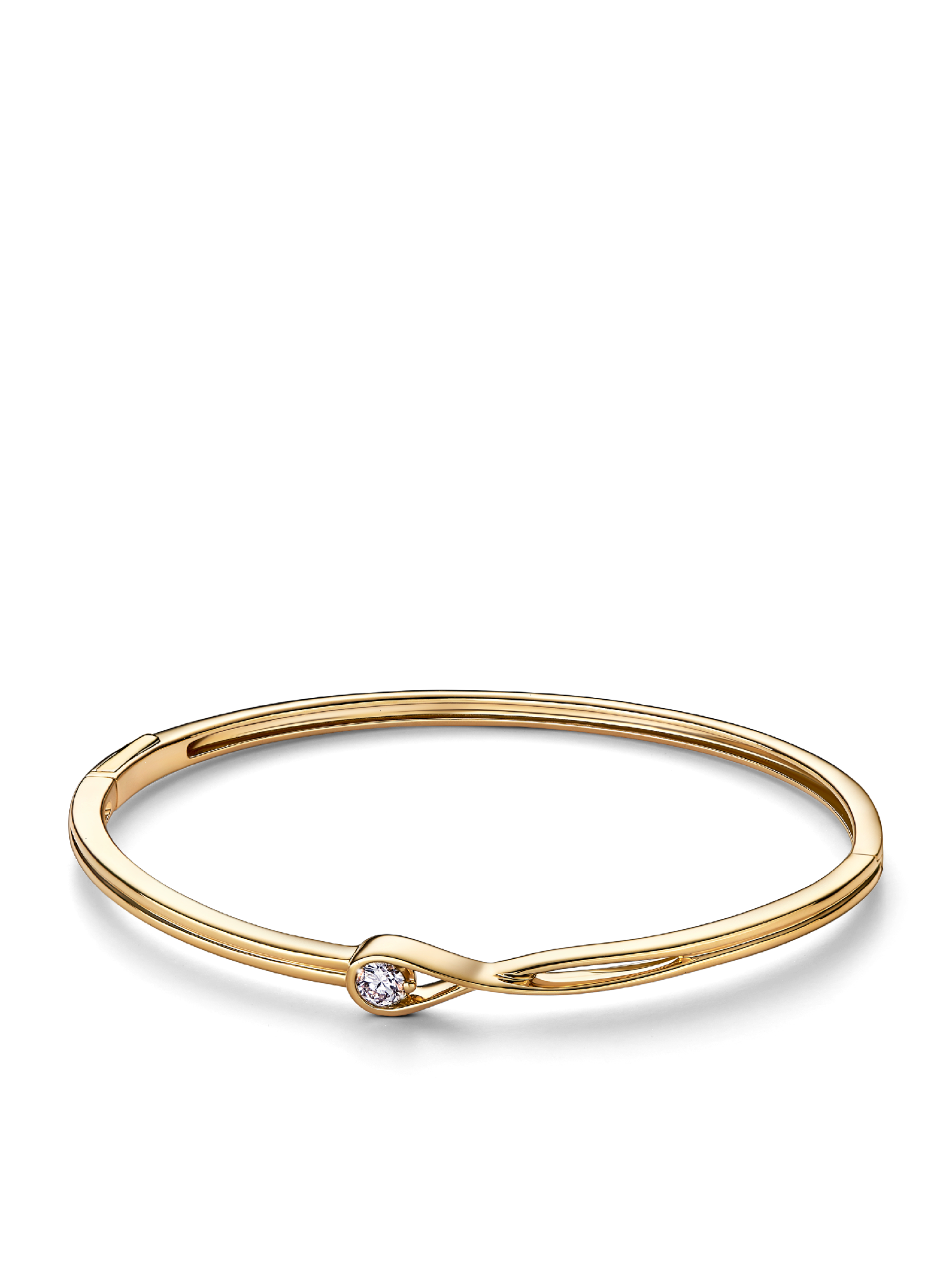 Celebrate your power to shine with this 14k gold bangle, hand-set with a radiant 0.25 carat lab-grown diamond. The round brilliant excellent cut lab-grown diamond floats inside our unique infinity motif, which flows around the stone as if it's ethereally suspended in mid-air. Our closed bangle design features a slender profile and functional hinge and clasp mechanisms, promising security and comfort. We recommend handling it with extra care to ensure optimal functionality and longevity. Let yours shine alone or inspire an elevated everyday stack. Each Pandora Lab-grown diamond is treated with a post-growth color enhancement called annealing.