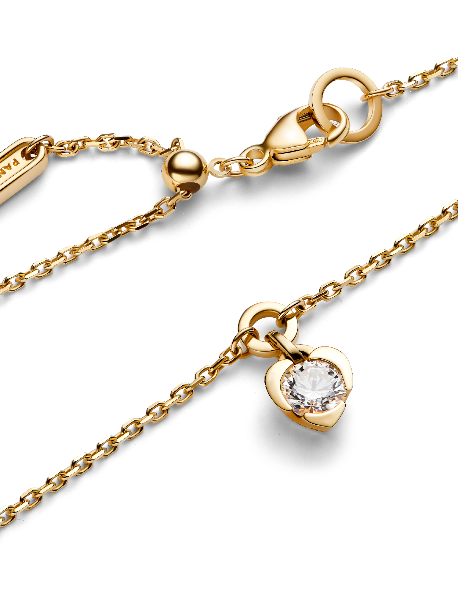 Feel the love with the Pandora Talisman 14k Gold Lab-grown Diamond Heart Chain Bracelet. This 14k gold bracelet features a fixed pendant in the center, with a unique setting that creates a heart motif embracing a 0.25 carat lab-grown diamond. On the back of the stone, a heart-shaped cut-out echoes the shape of the setting and lets the light shine through to maximize sparkle. A slider with silicone inside allows you to adjust the bracelet for the perfect fit. A universal symbol of love, the heart shape makes this lab-grown diamond bracelet the perfect gift to represent a special connection - or an affirmation of the love you have for yourself.