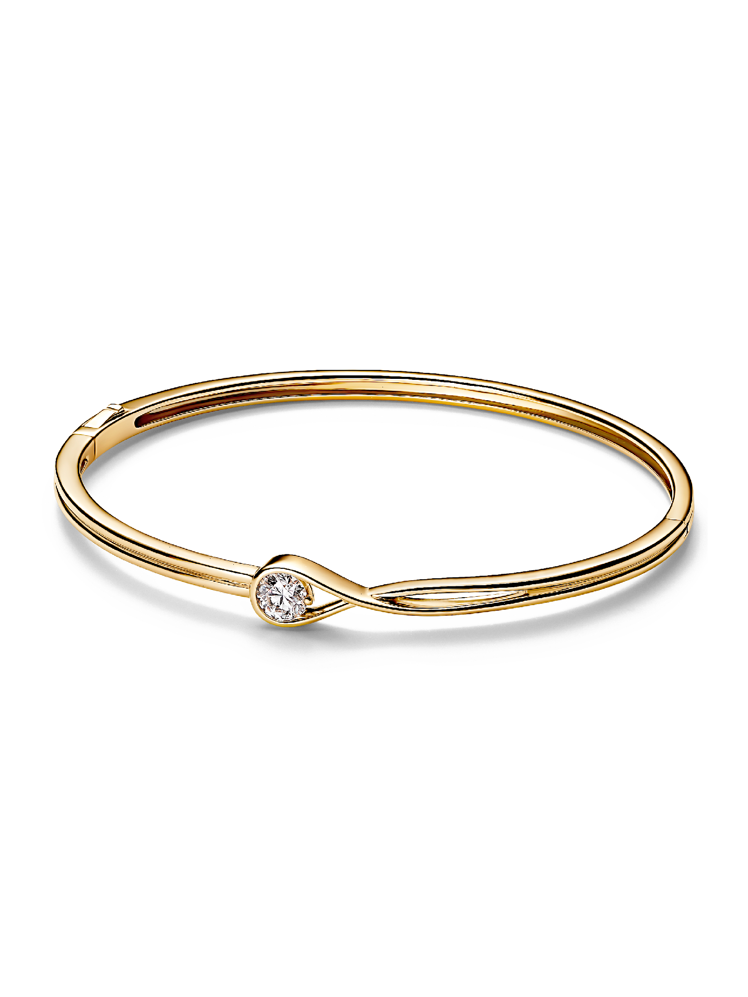 Celebrate your power to shine with this Pandora Infinite 14k Gold Lab-Grown Diamond Bangle, hand-set with a radiant 0.50 carat lab-grown diamond. The round, excellent cut lab-grown diamond floats inside our unique infinity motif, which flows around the stone as if it's ethereally suspended in mid-air. Our closed bangle design features a slender profile and functional hinge and clasp mechanisms, promising security and comfort. We recommend handling it with extra care to ensure optimal functionality and longevity. Let yours shine alone or inspire an elevated everyday stack. Each Pandora Lab-grown diamond is treated with a post-growth color enhancement called annealing.