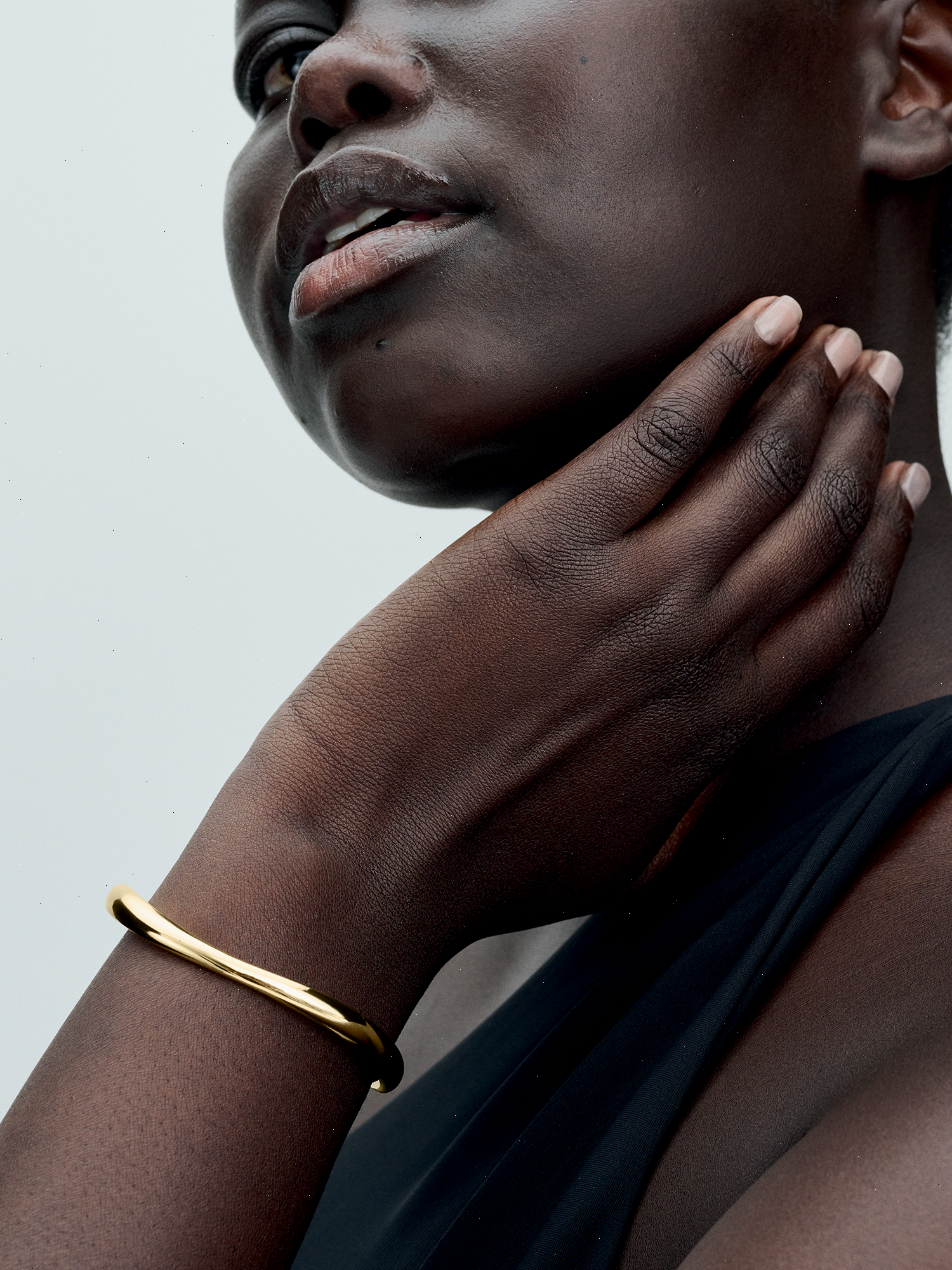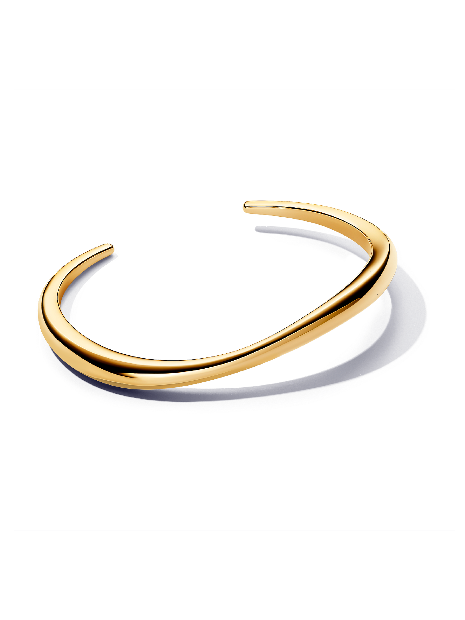 The Organically Shaped Open Bangle is a modern style essential. This 14k gold-plated bangle features a wavy profile that varies in thickness. Inspired by the natural lines and curves found in nature, this modern piece is effortlessly elegant. Stack this bangle with your other favorite styles to create drama, or let it stand alone as a statement piece. Styled for optimal wear and fit; not designed to be flexed or twisted.