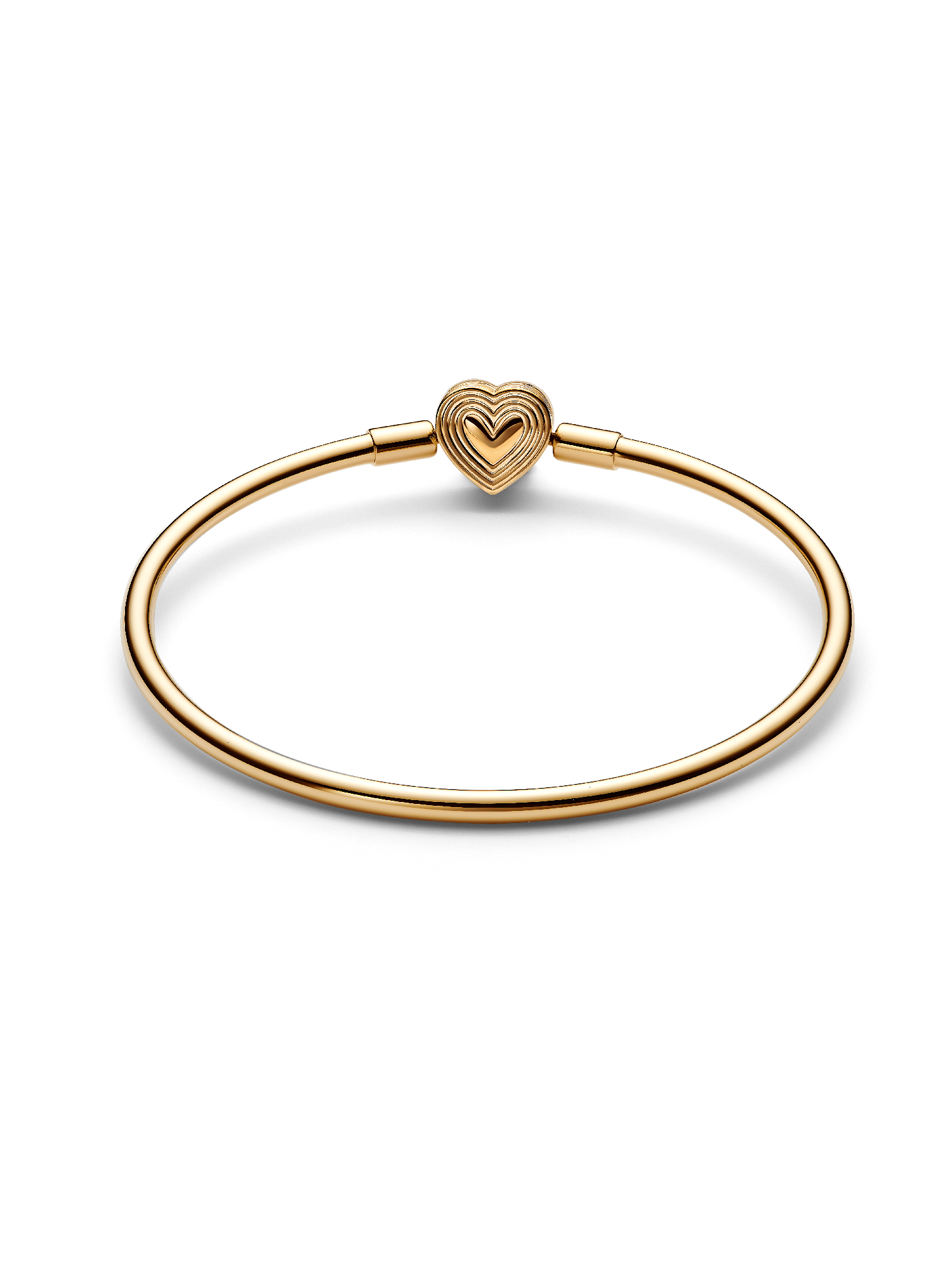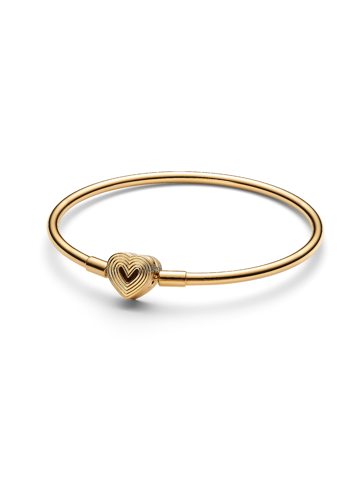 Go for sleek simplicity with the Radiating Heart Clasp Bangle. This 14k gold-plated bangle has a heart-shaped clasp with a cut-out heart on one side –a design that pays tribute to the power of love. Made to be styled with a maximum of 16 to 18 charms or dangle charms, this bangle will become a staple in any collection.