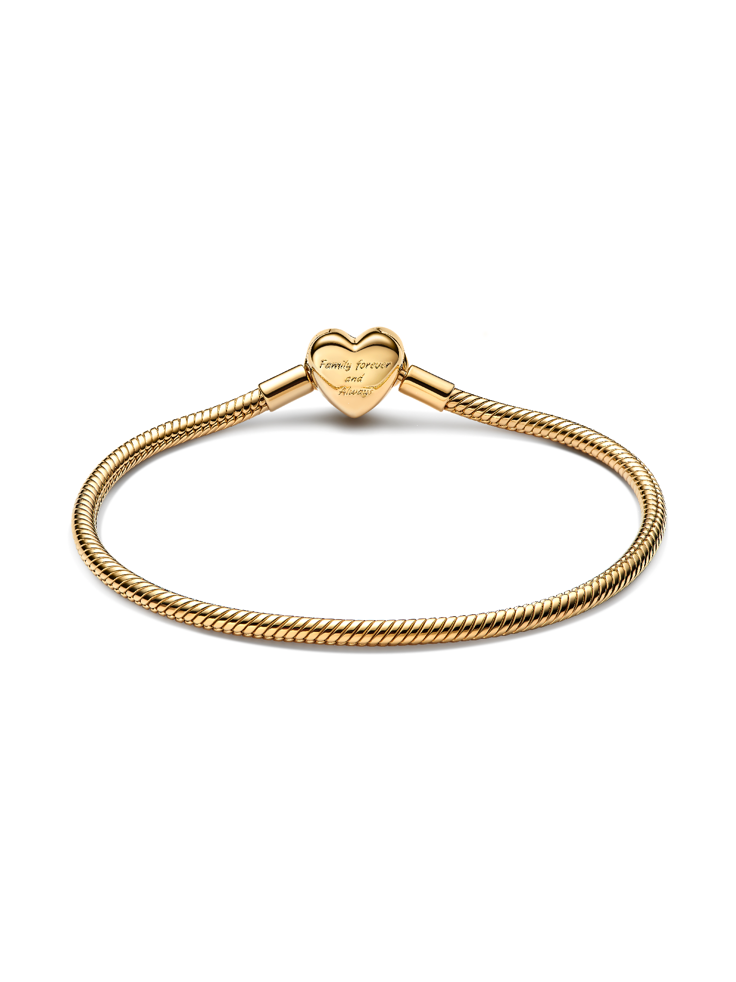Never feel far from family when you wear the Sparkling Infinity Heart Clasp Snake Chain Bracelet. This 14k gold-plated piece features our iconic snake chain design along with a heart-shaped clasp set with sparkling stones. "Family forever and always" is engraved on one side of the clasp, while the other side has an intricate infinity symbol weaving through the open heart shape. Add up to 18 charms as a reminder of your family roots.