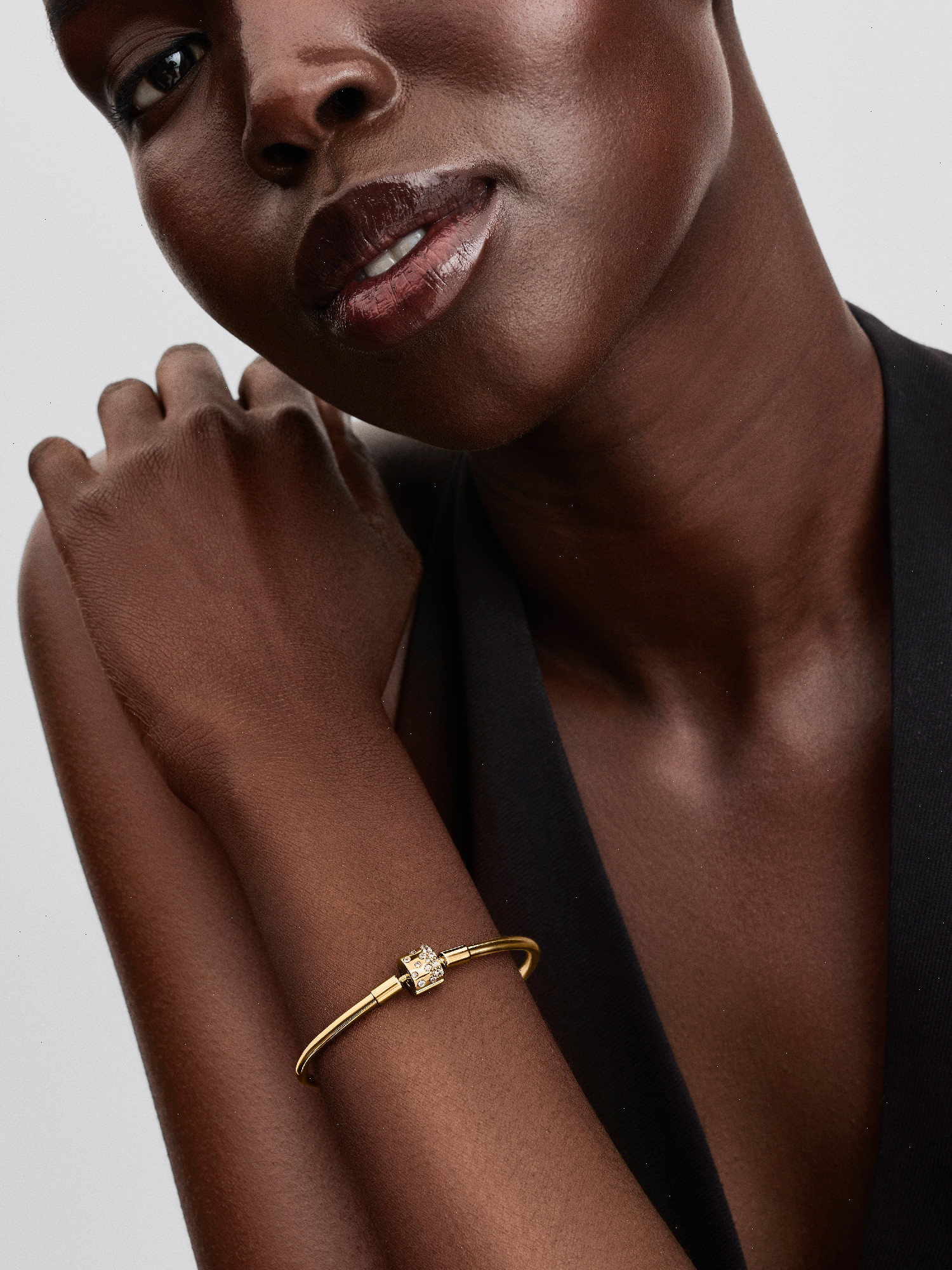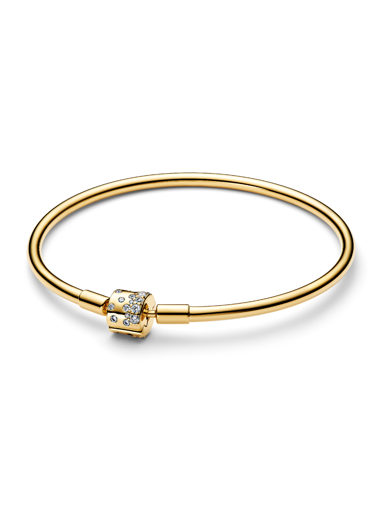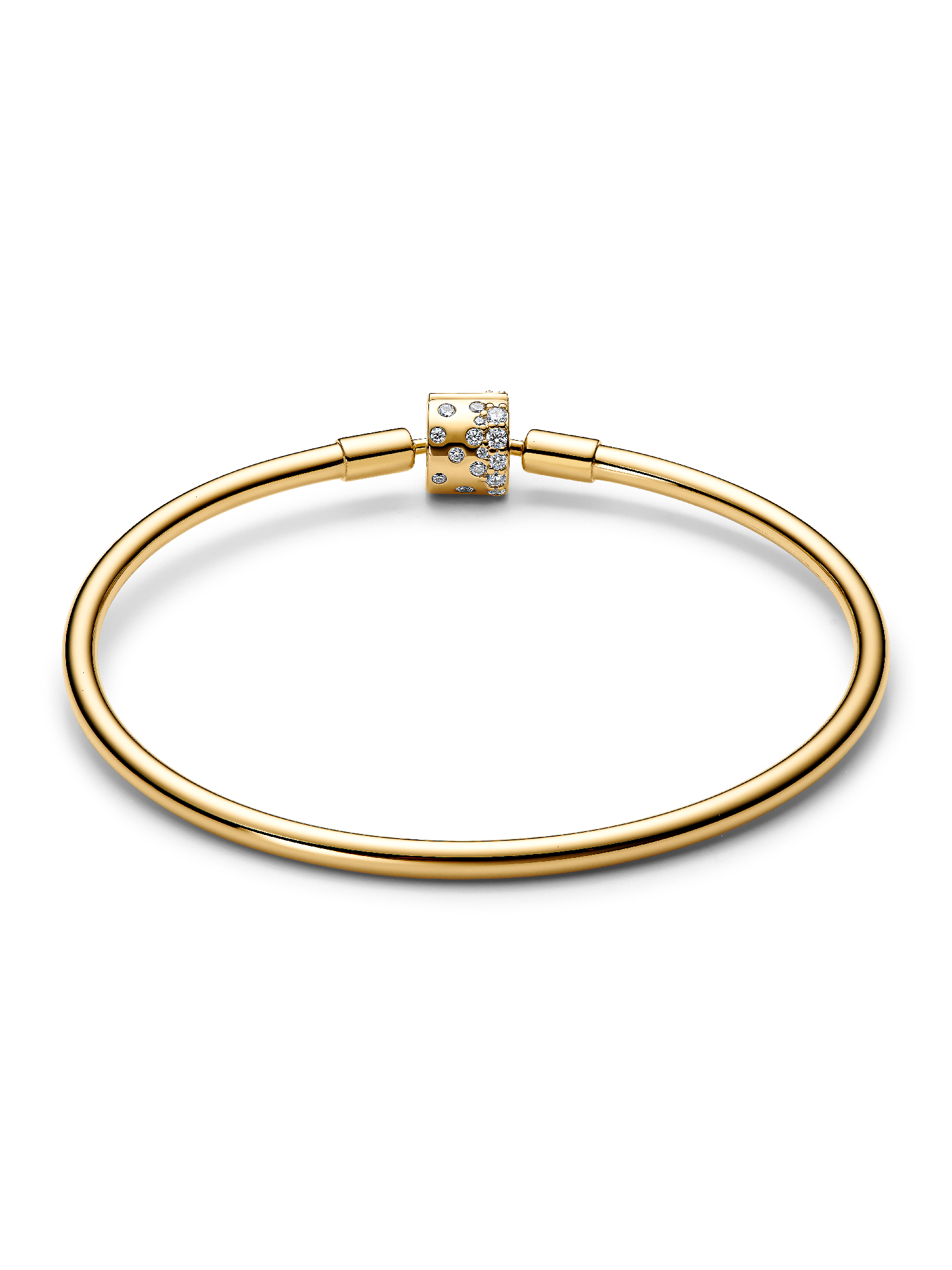 Have your moment. Our 14k gold-plated bangle is set with 30 clear cubic zirconia up into the clasp. An elegant piece you’ll reach for over and over again.