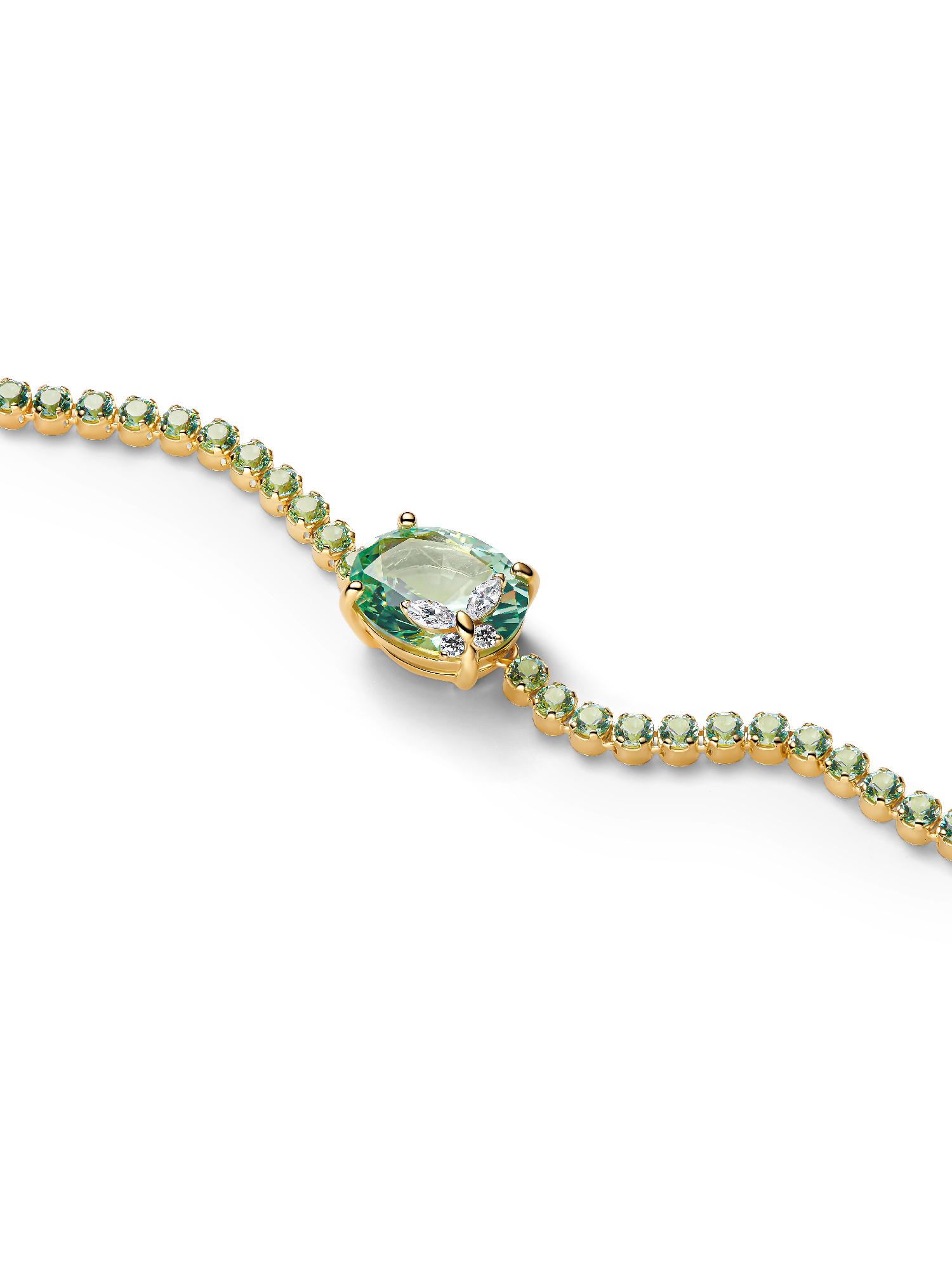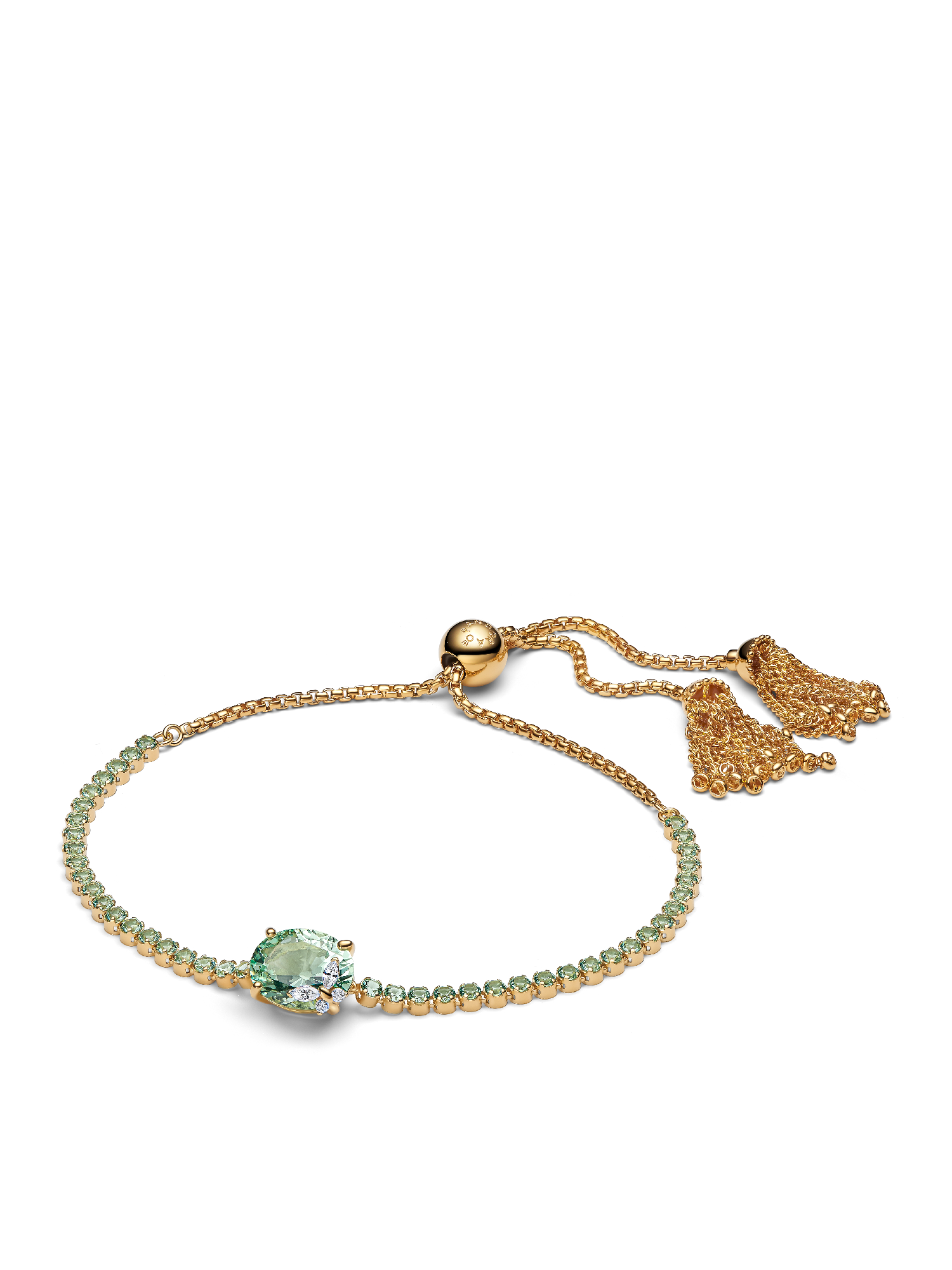 The best of eveything for the best of friends. Inspired by Bridgerton, this 14k gold-plated bracelet is set with green man-made crystals. It features a butterfly on its centre stone and fringes at the end of its clasp.