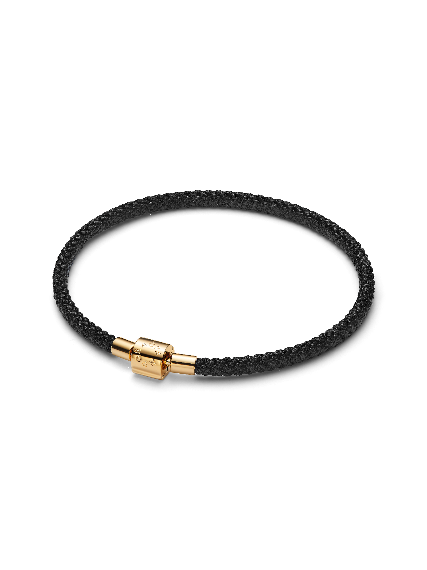 Cool, casual and endlessly wearable. This bracelet features a shimmering black cord, which secures with a 14k gold-plated clasp. Style it with or without charms – the choice is yours.