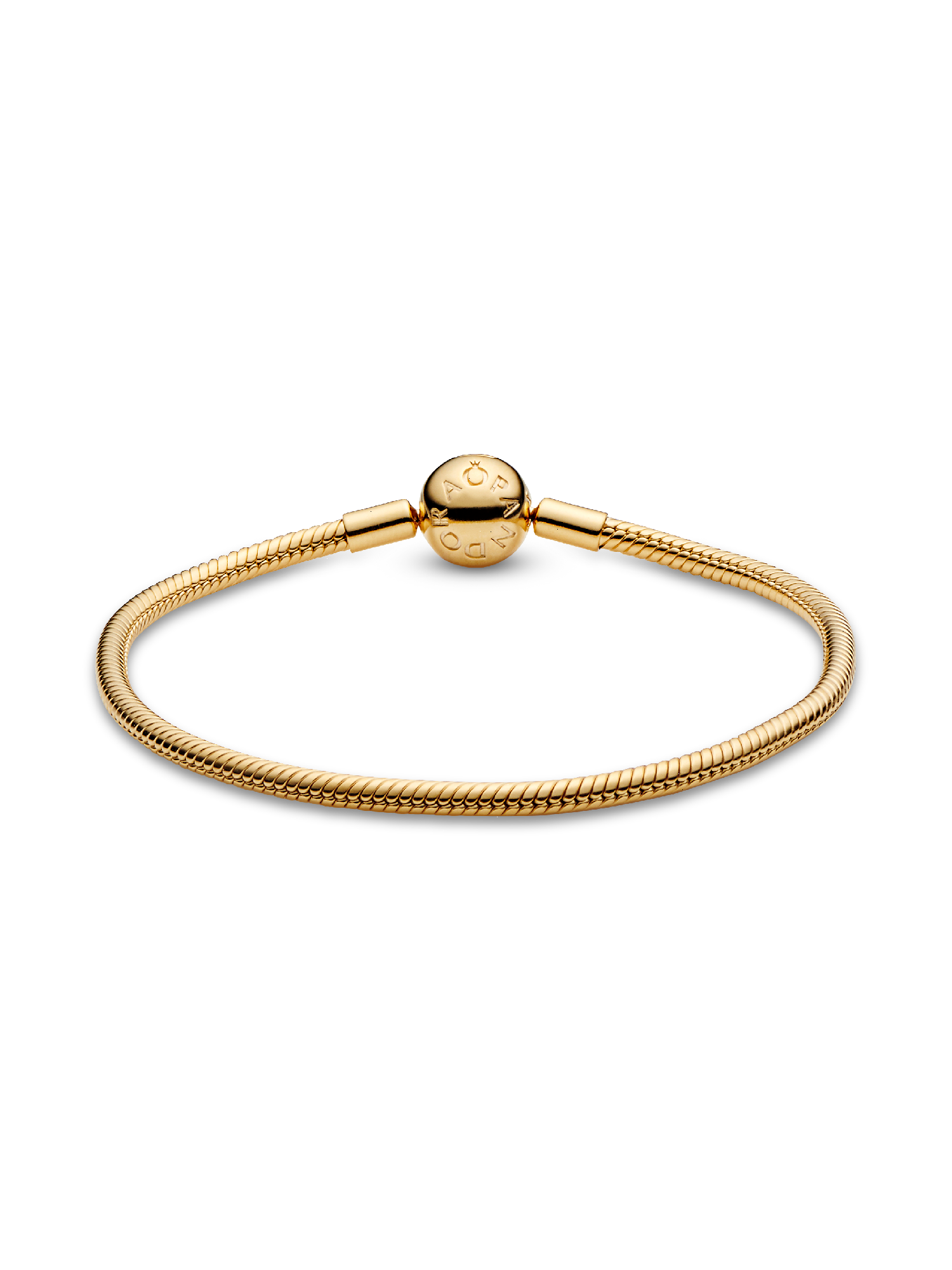 Start your very own Pandora story with this sleek 14k gold-plated Snake Chain Bracelet. The perfect canvas for your creativity, this hand-finished bracelet can be styled in countless ways. Fill it with your desired charms and clips, wear it on its own for a simple, understated look, or stack it with contrasting bracelets for a fun play on textures.