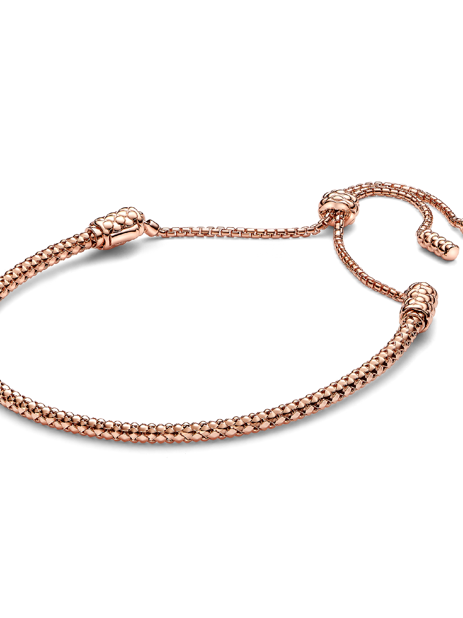 Our Studded Chain Slider Bracelet is the ultimate versatile carrier, adjustable to any length thanks to its slider clasp. Crafted in 14k rose gold plating, one size fits all. The bracelet has a flexible core for easy movement, while its sliding silicone ball on the slimmer chain allows for size adjustment, so you can find your perfect fit every time. Customize yours with up to 10 charms or dangle charms of your choice to make it extra personal.