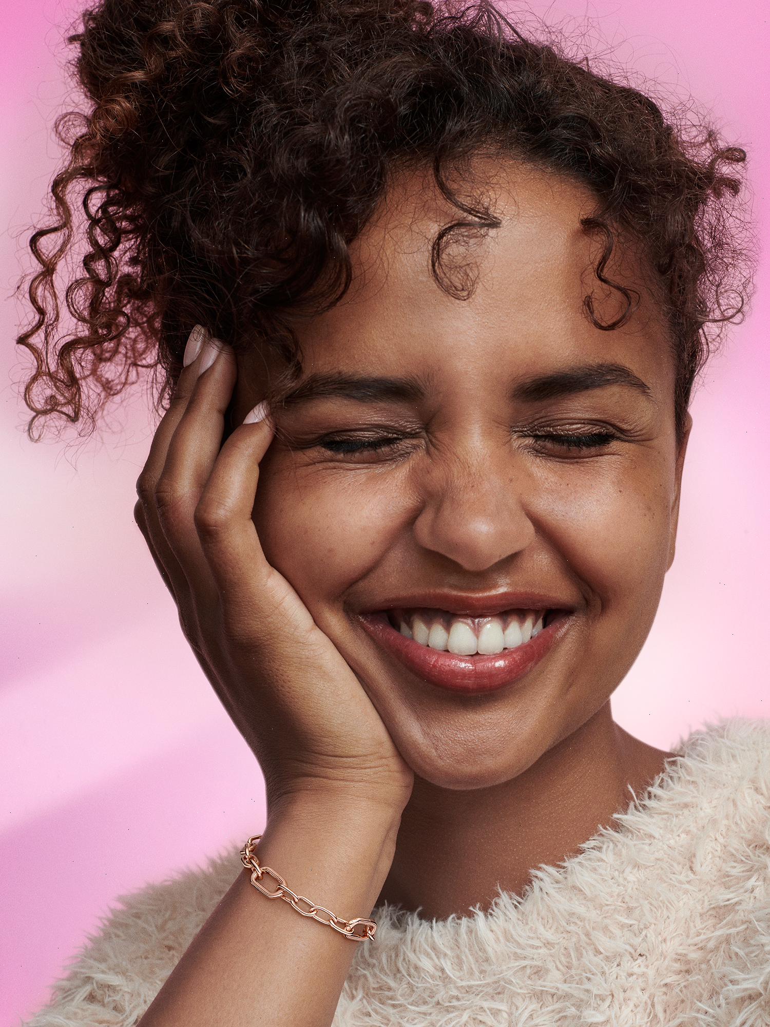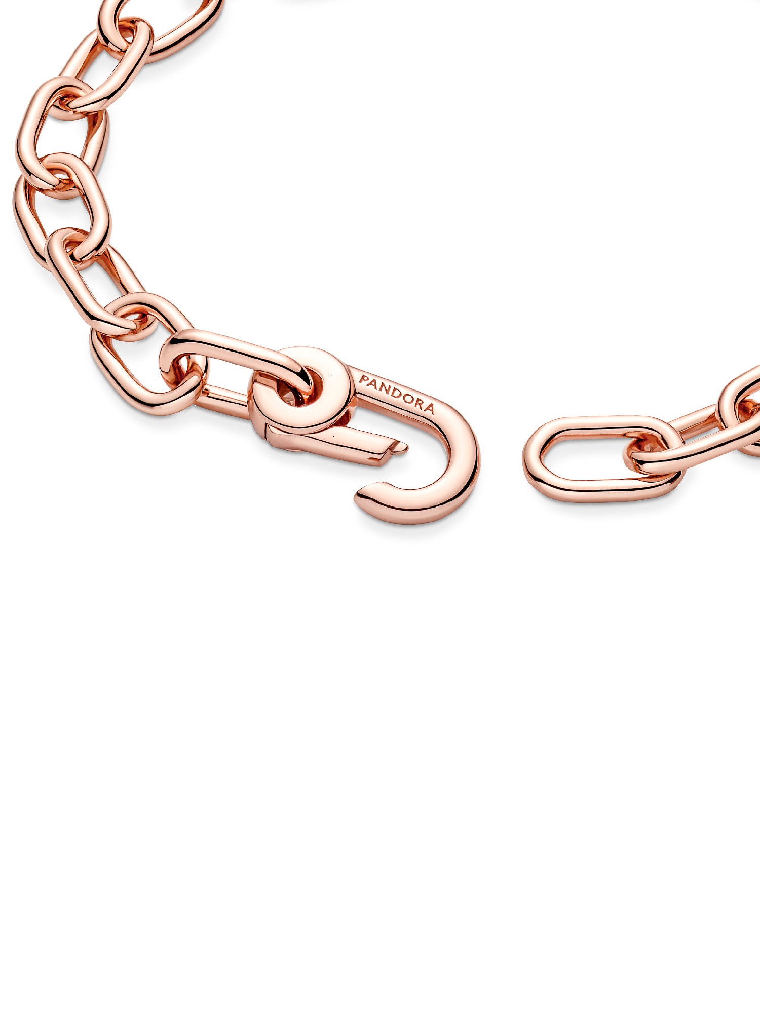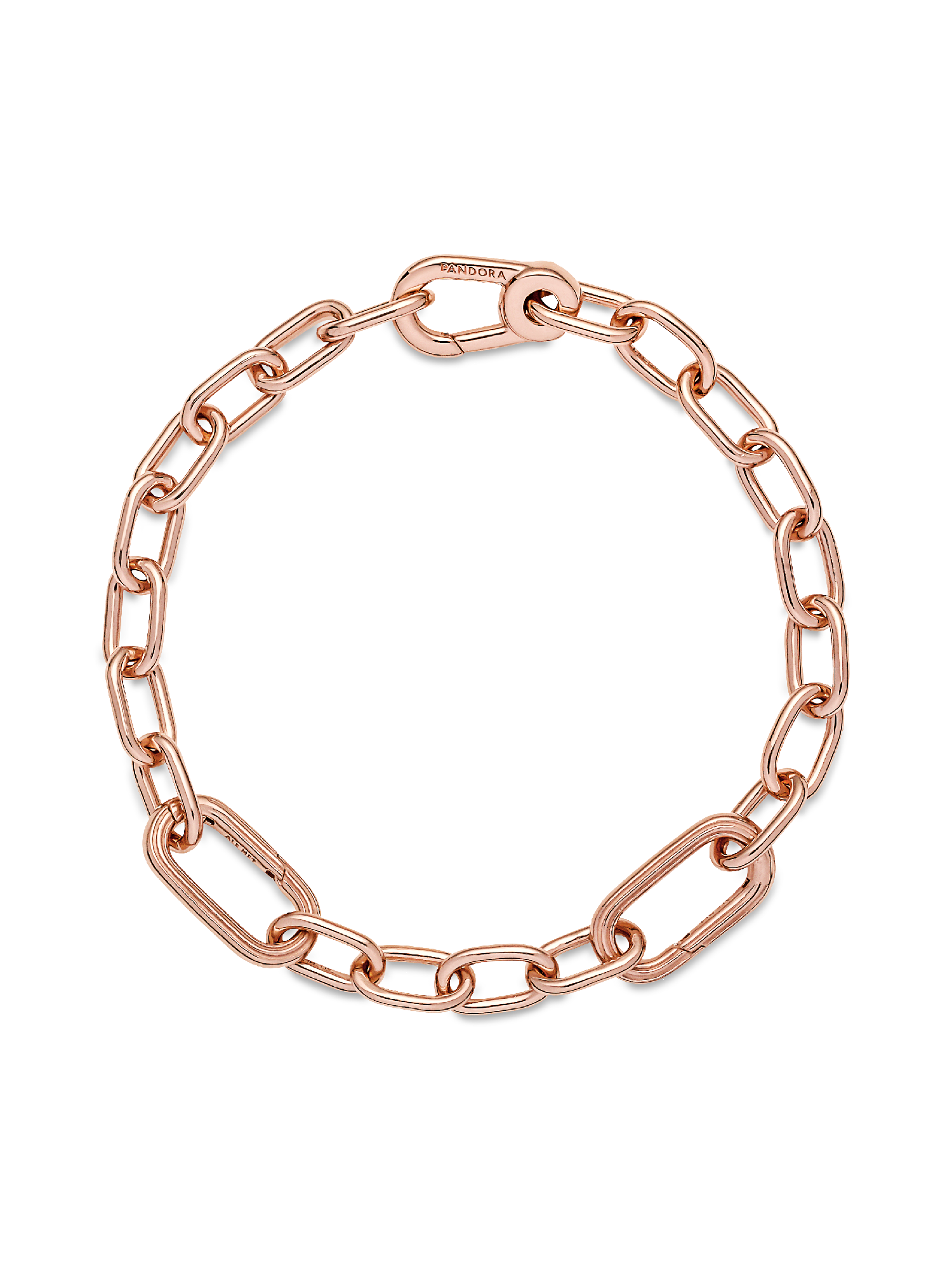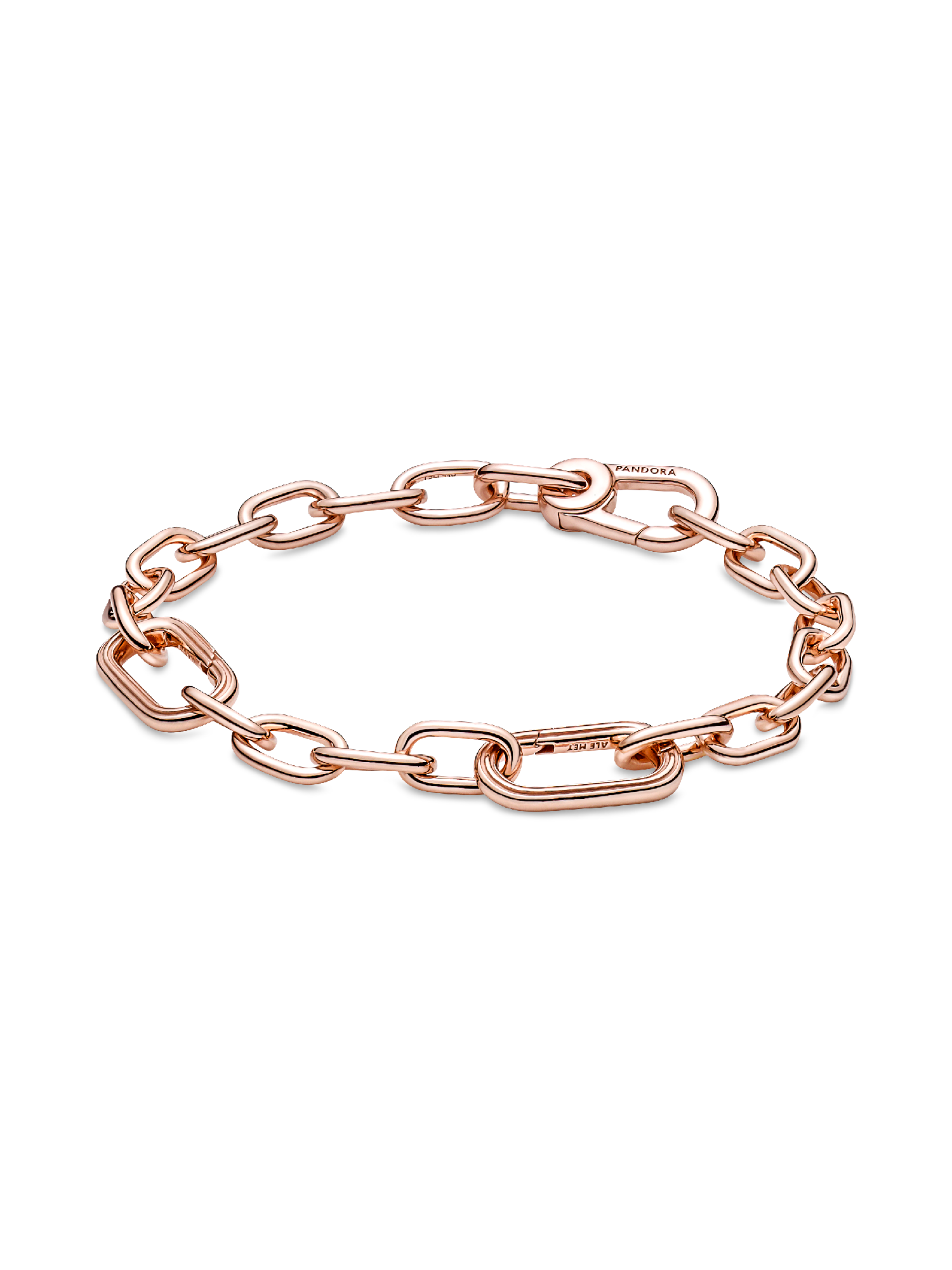 Link what you love like never before. Our 14k rose gold-plated Pandora ME Small-Link Chain Bracelet holds endless styling possibilities. The design features two openable links - designed with grooved surfaces to set them apart - a group of four links between each openable link and a carabiner clasp closure. First customise your link chain: four links can be swapped out for one styling double link or one styling link - keep the original length or adjust it to suit you. Once you’ve curated your link chain, style up to one medallion charm per link, two meaningful medallion charms or up to eight mini dangle charms on each openable link to show the world who you are. Please note this item is only compatible with Pandora ME jewelry and will not fit our other collections.Discover how to mix and re-mix your Pandora ME look here.
